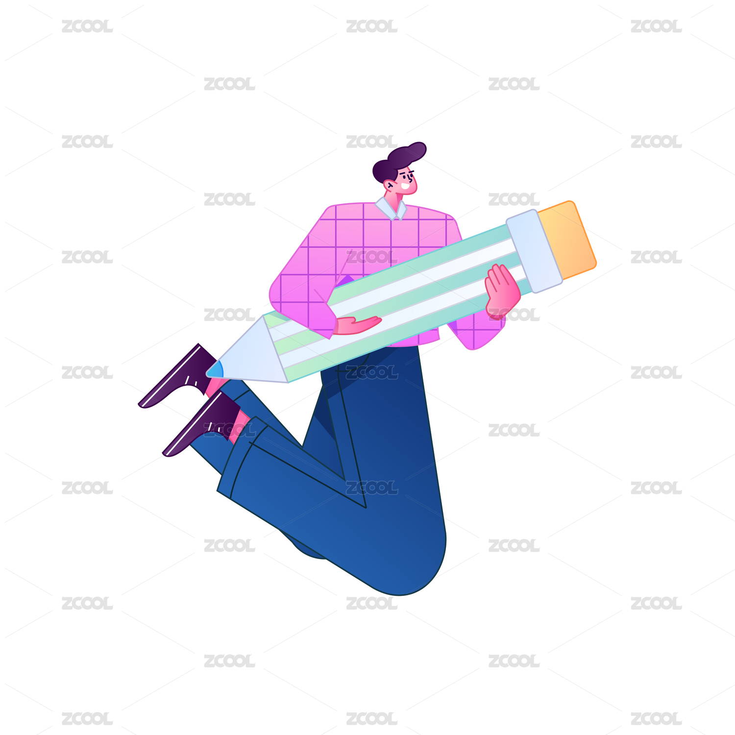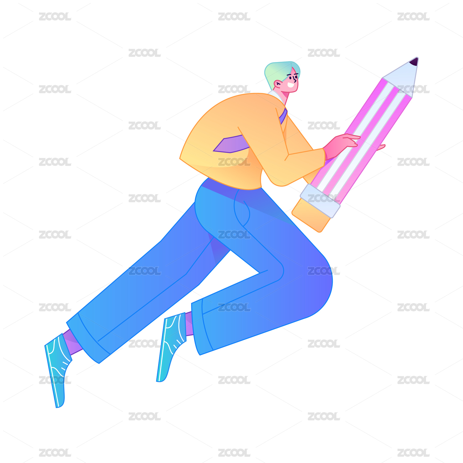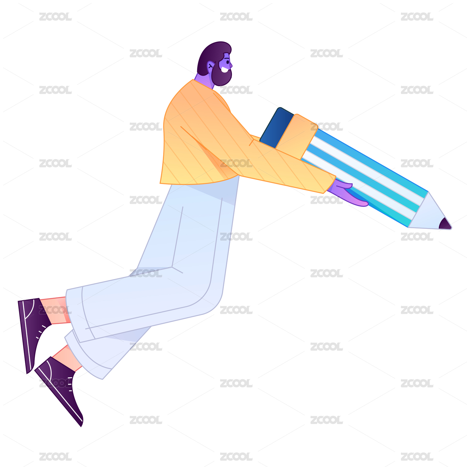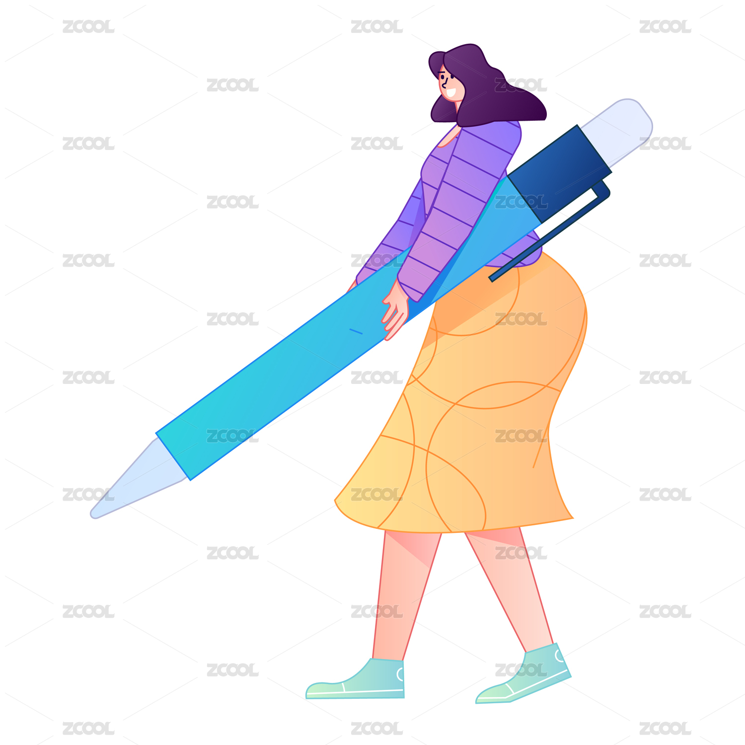 人物手持筆書寫記錄繪畫造型矢量扁平漸變插