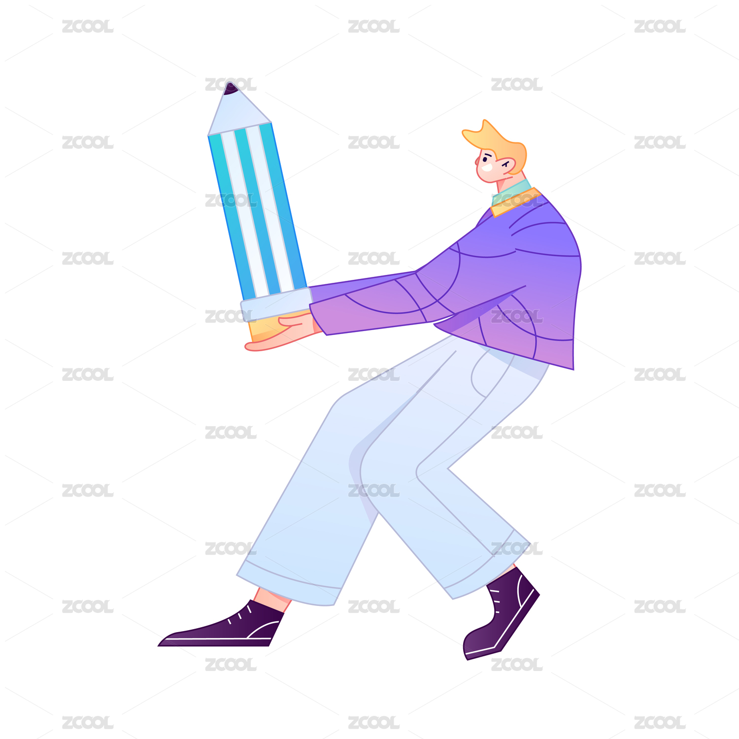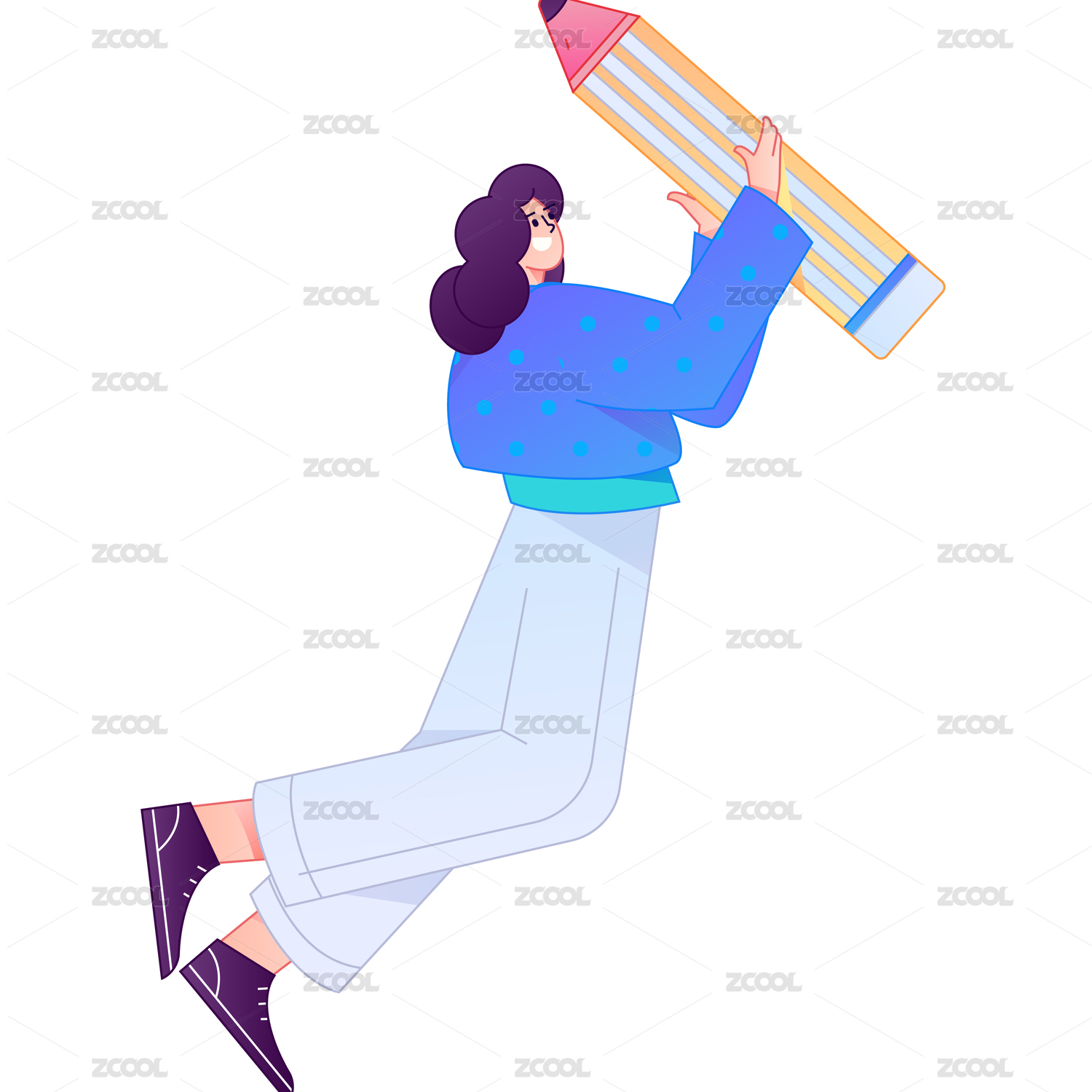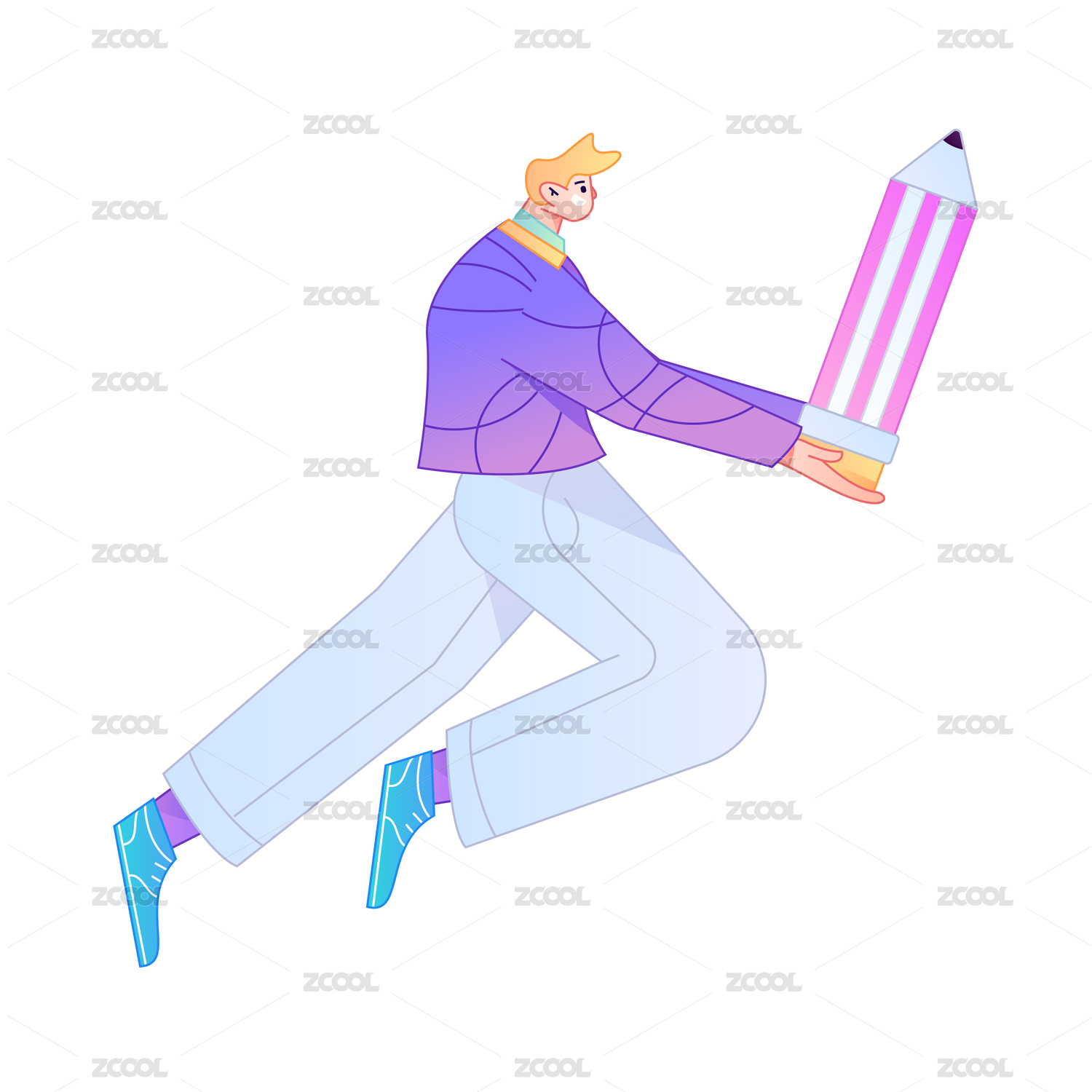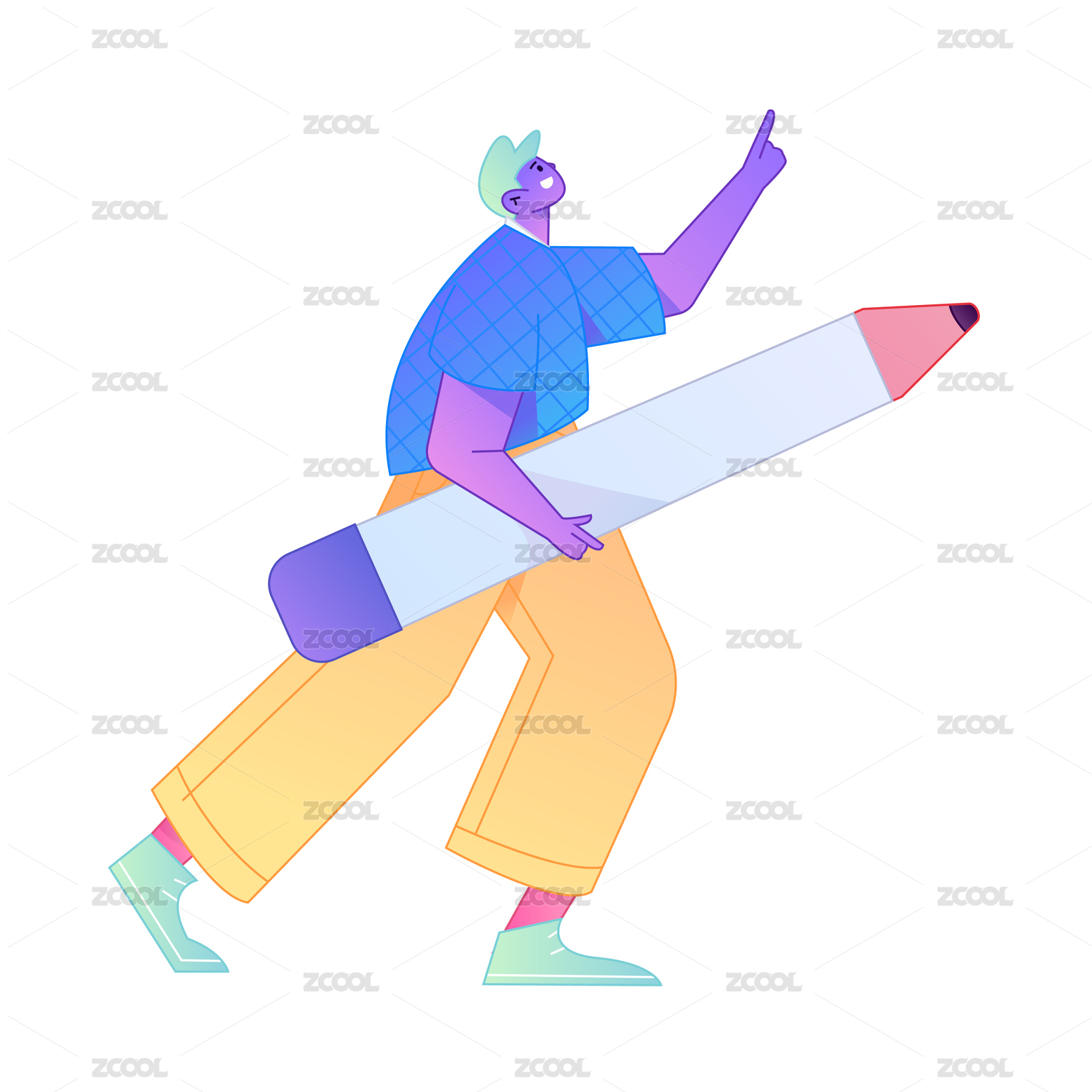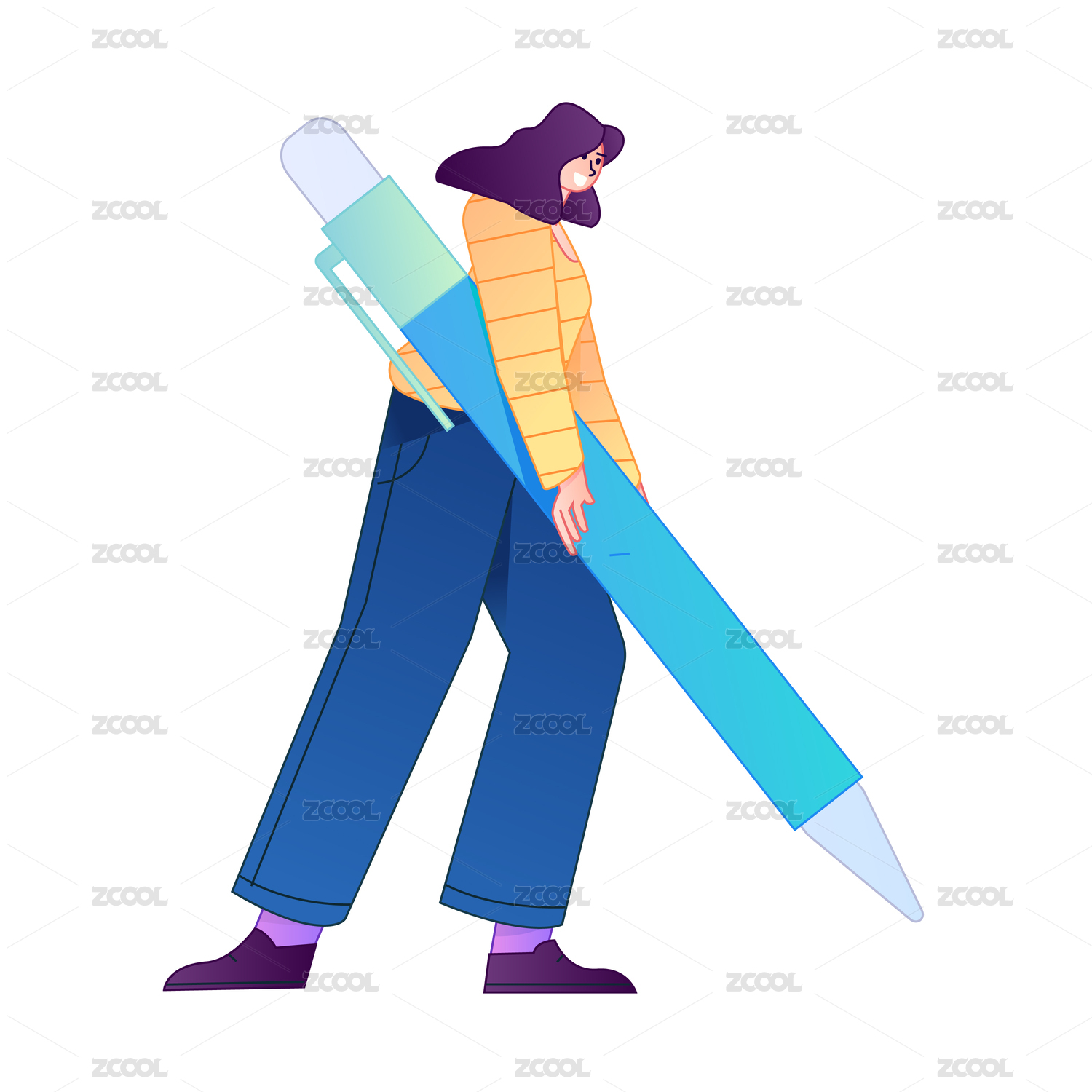人物手持筆書寫記錄繪畫造型矢量扁平漸變插