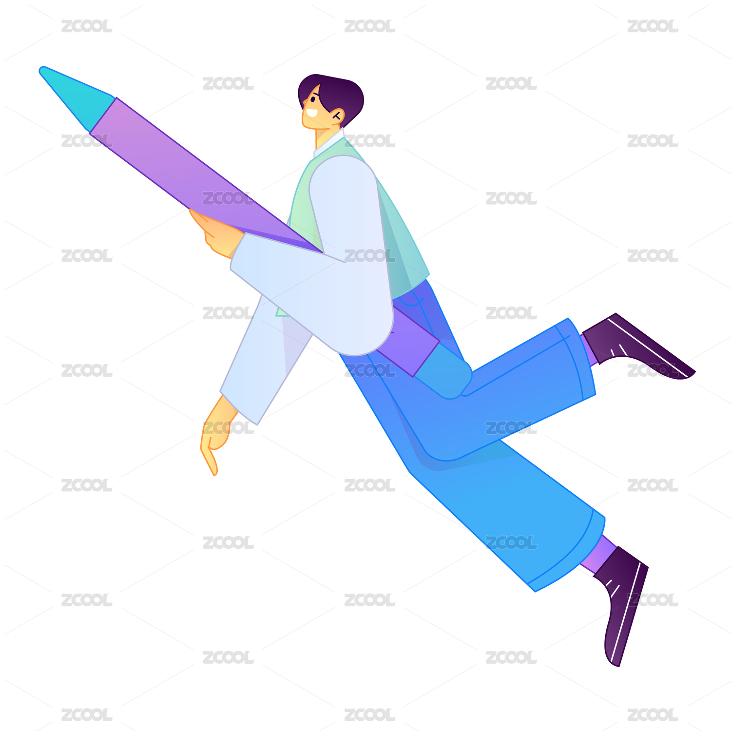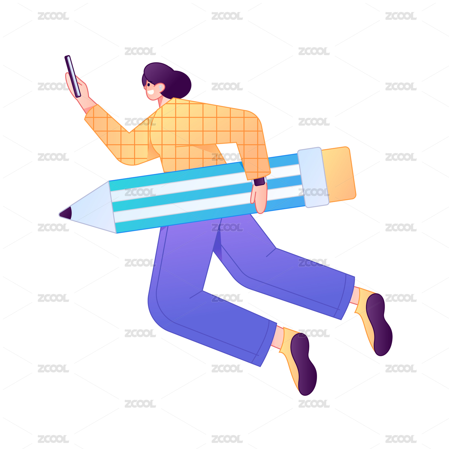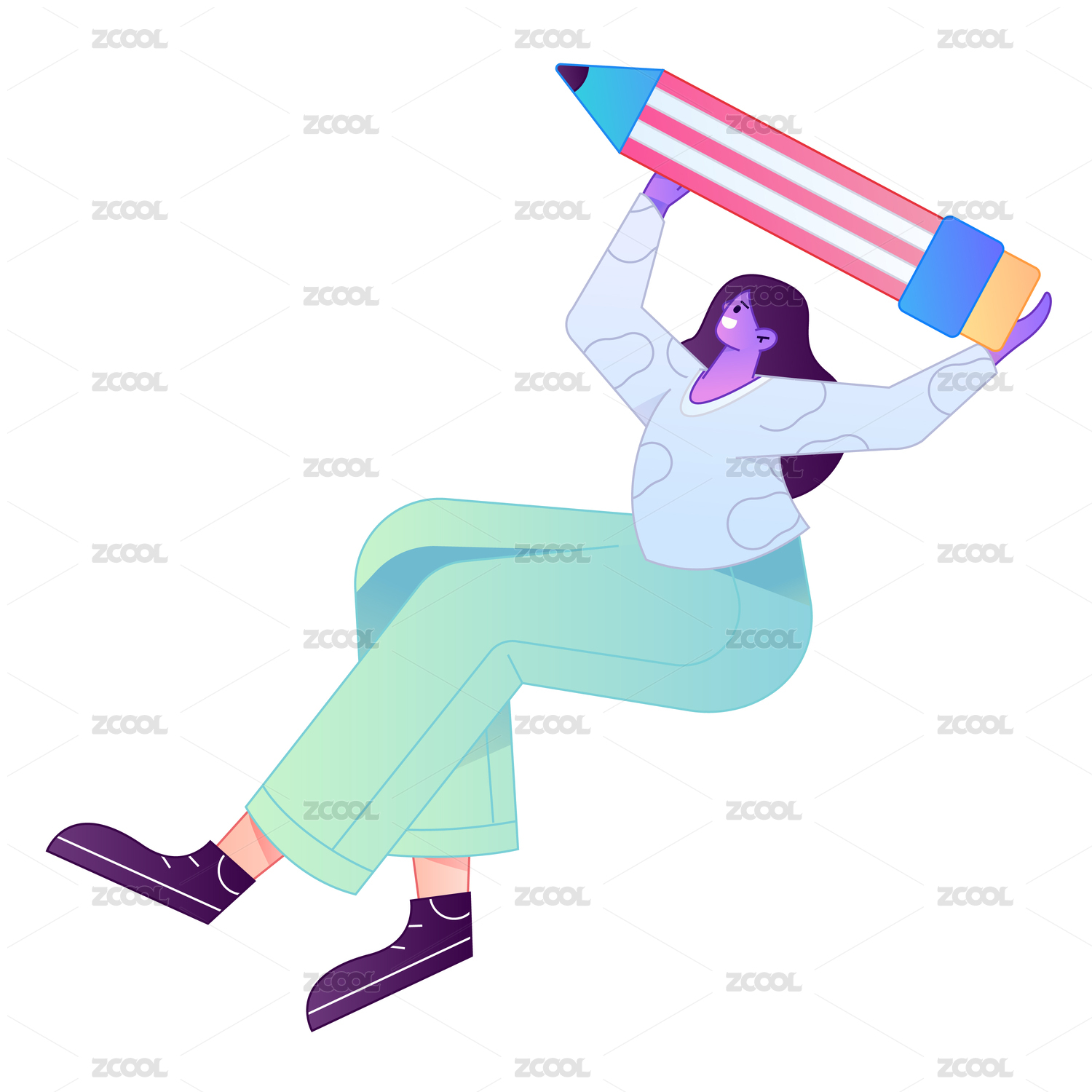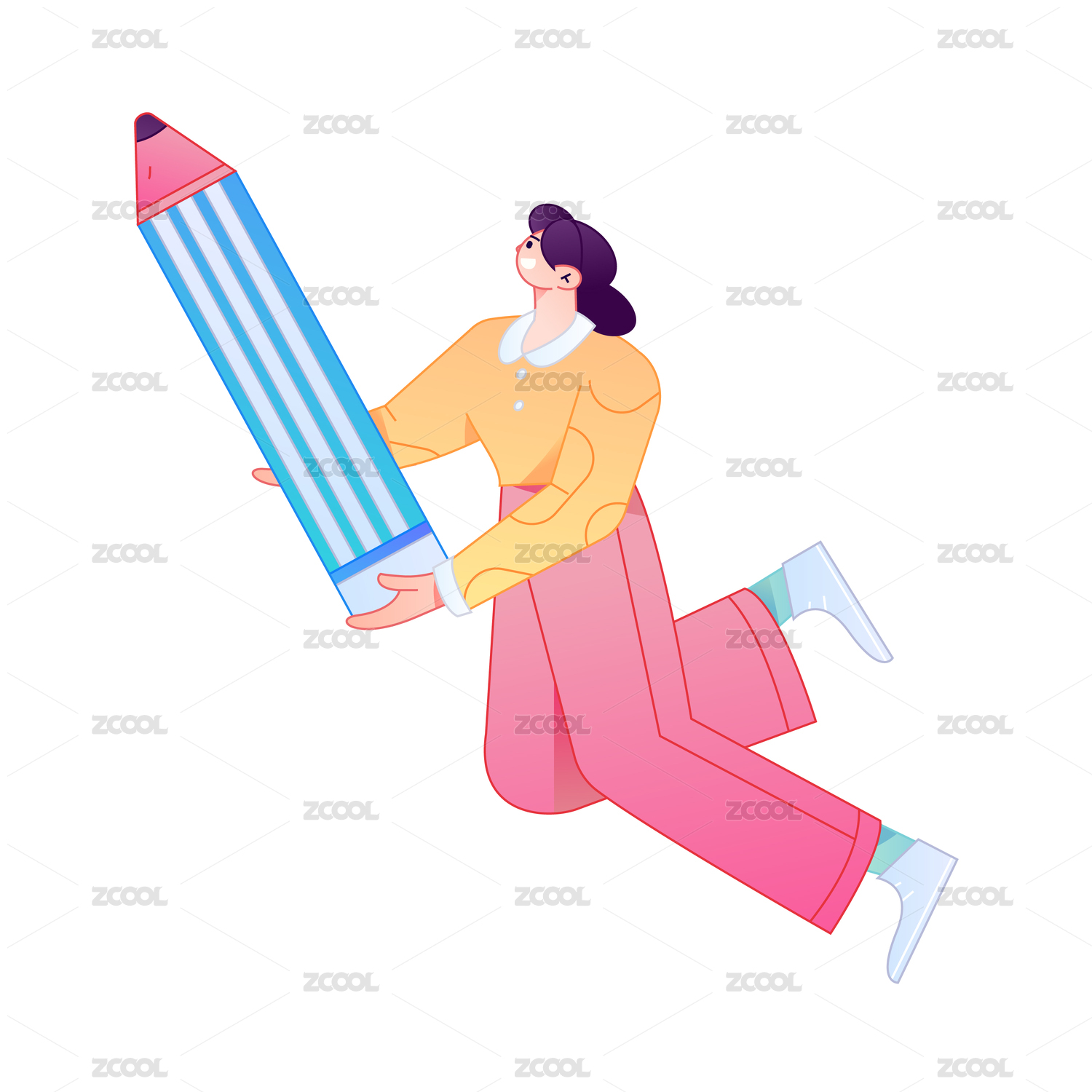 人物手持筆書寫記錄繪畫造型矢量扁平漸變插