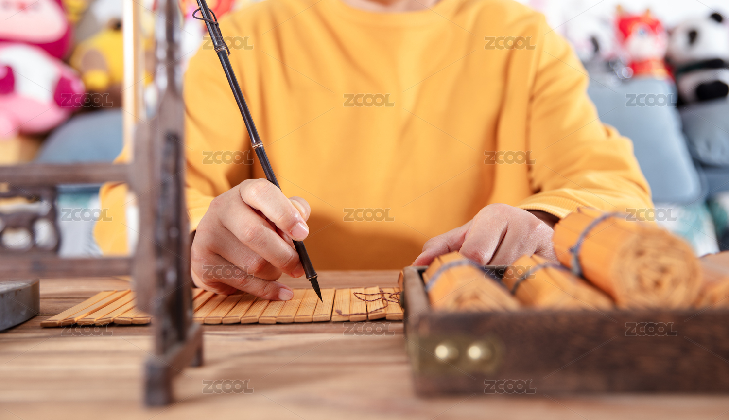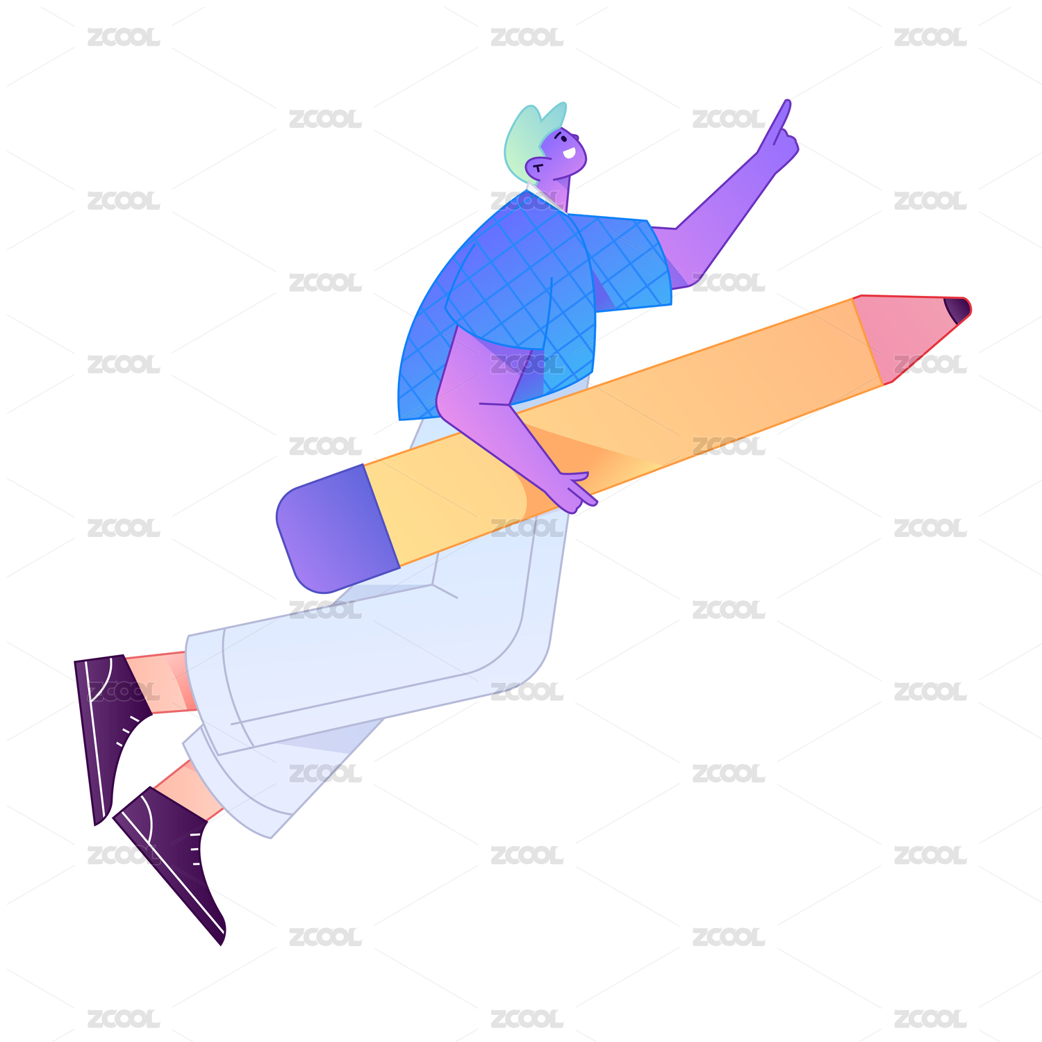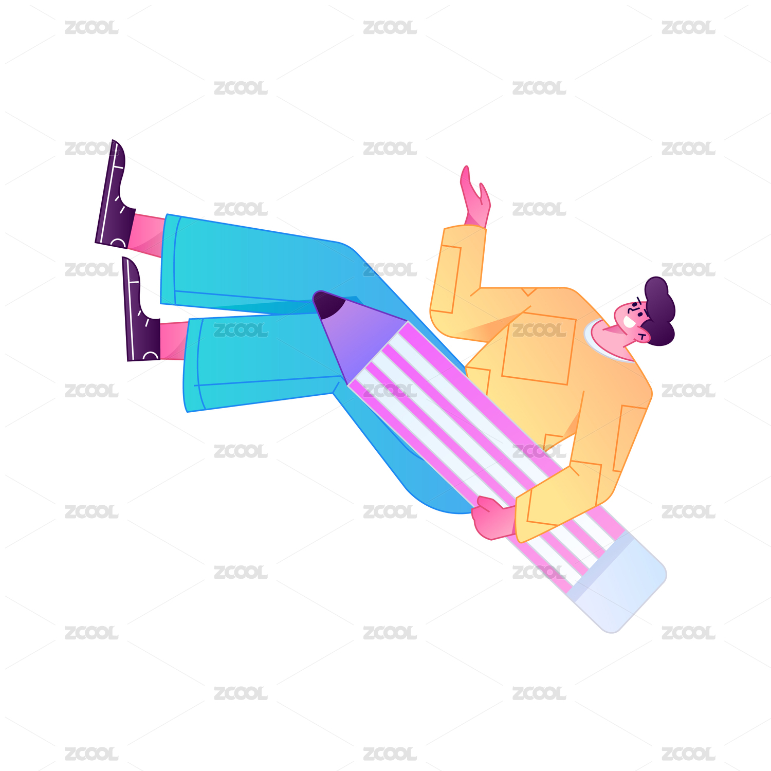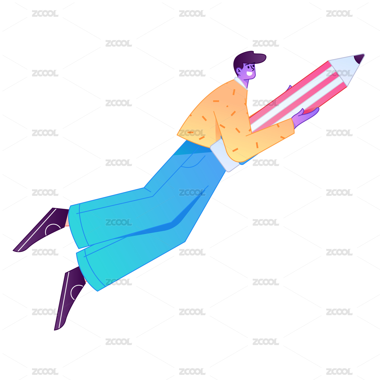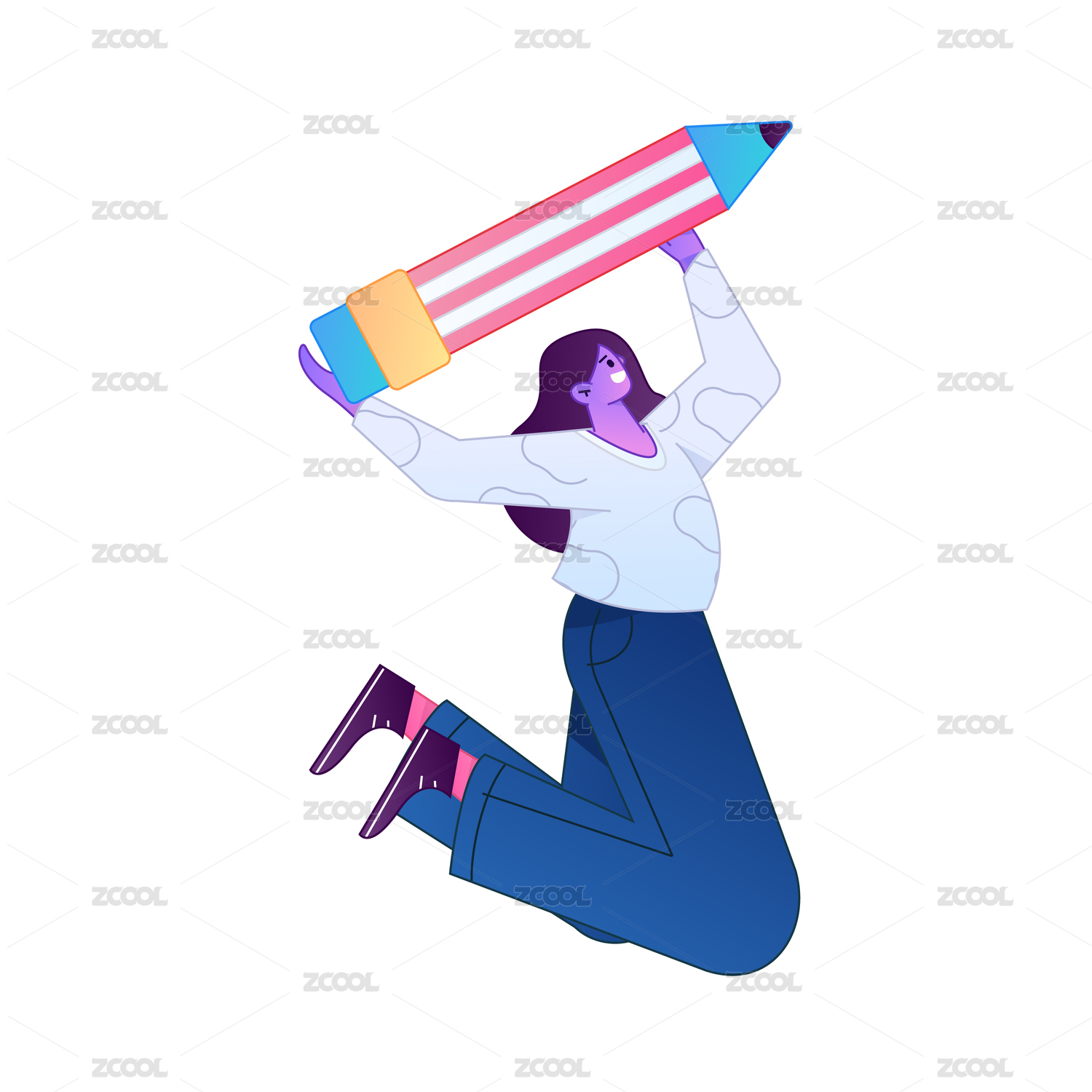 人物手持筆書寫記錄繪畫造型矢量扁平漸變插