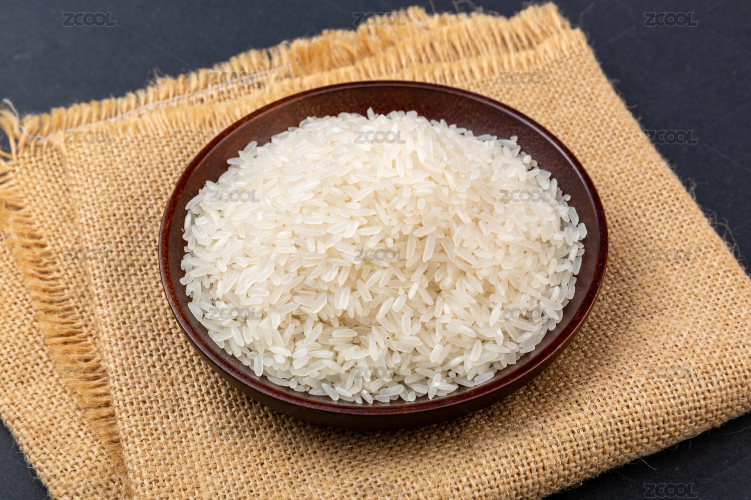 中式復(fù)古場(chǎng)景中裝在木碗里的長(zhǎng)粒貓牙米
