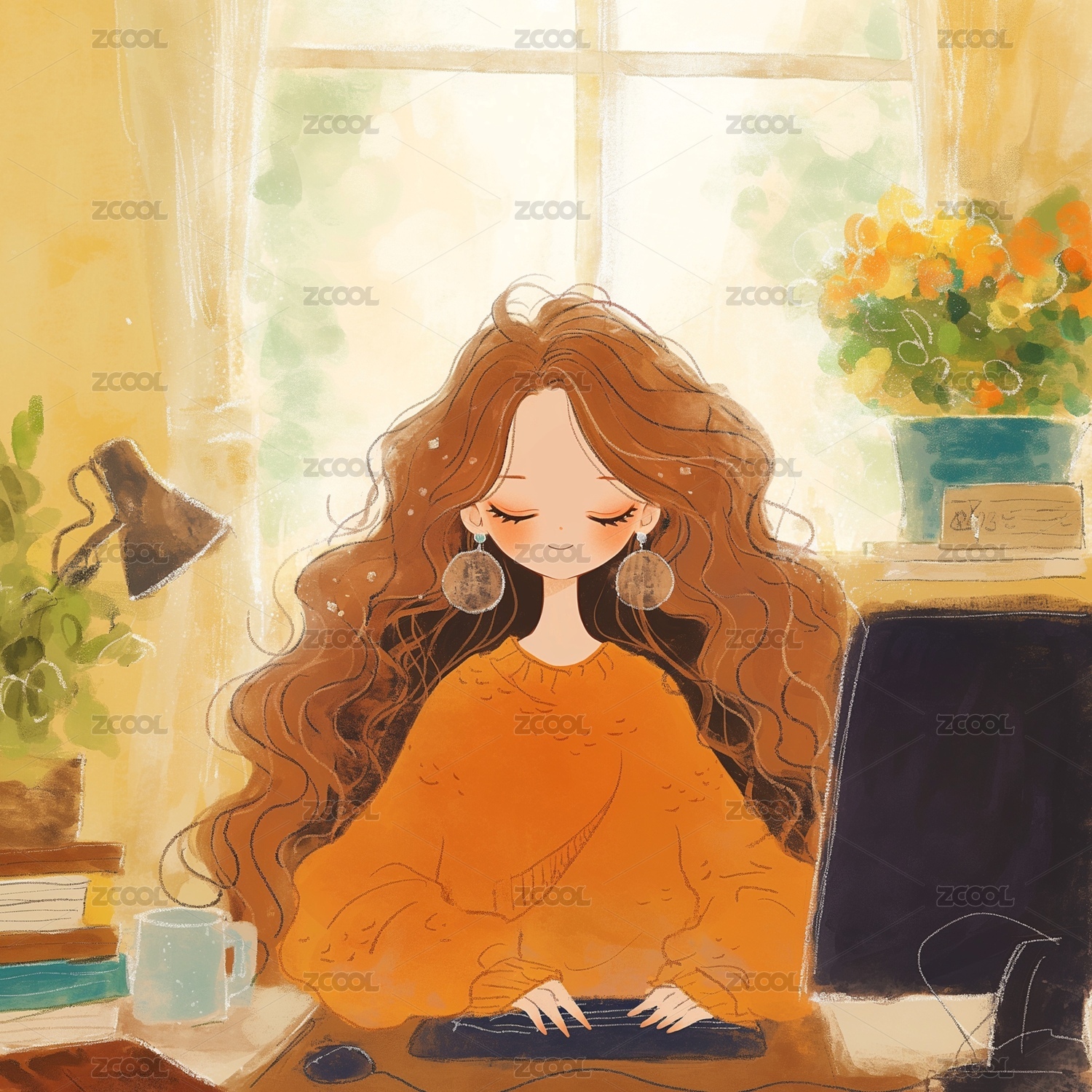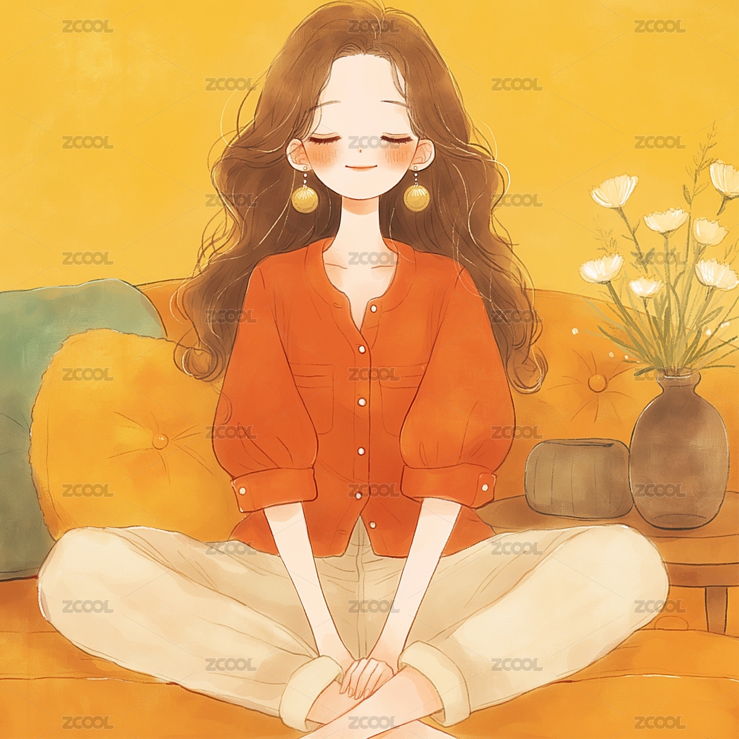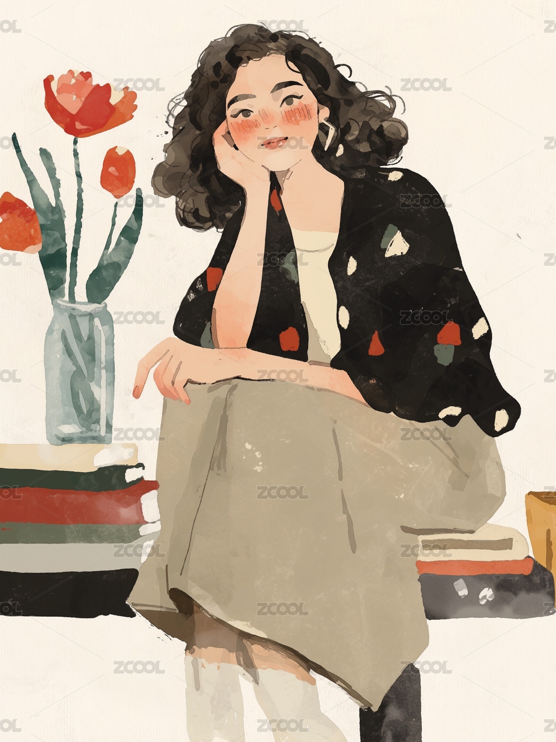 松弛感女孩的插畫