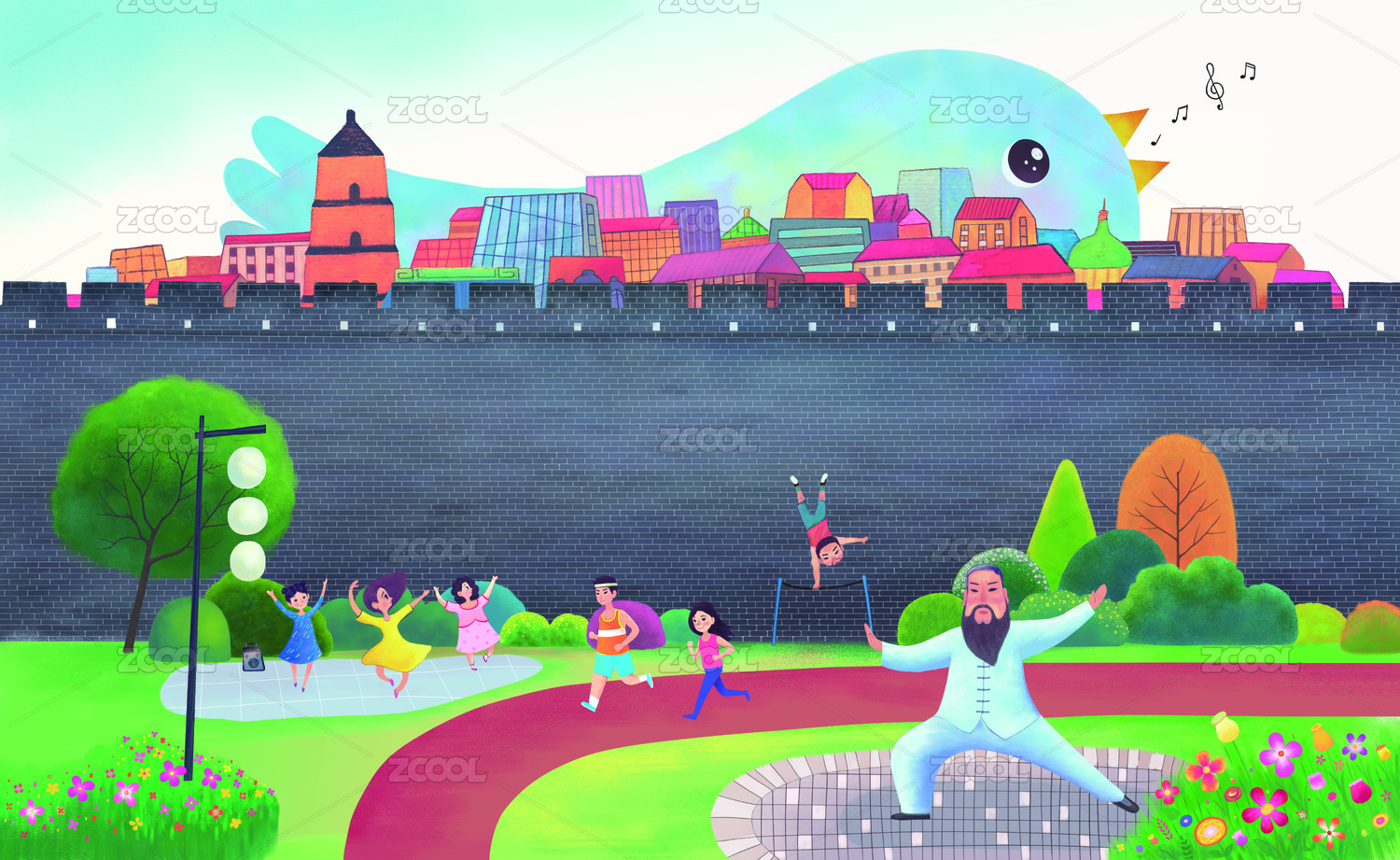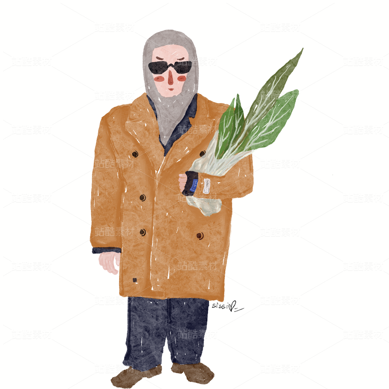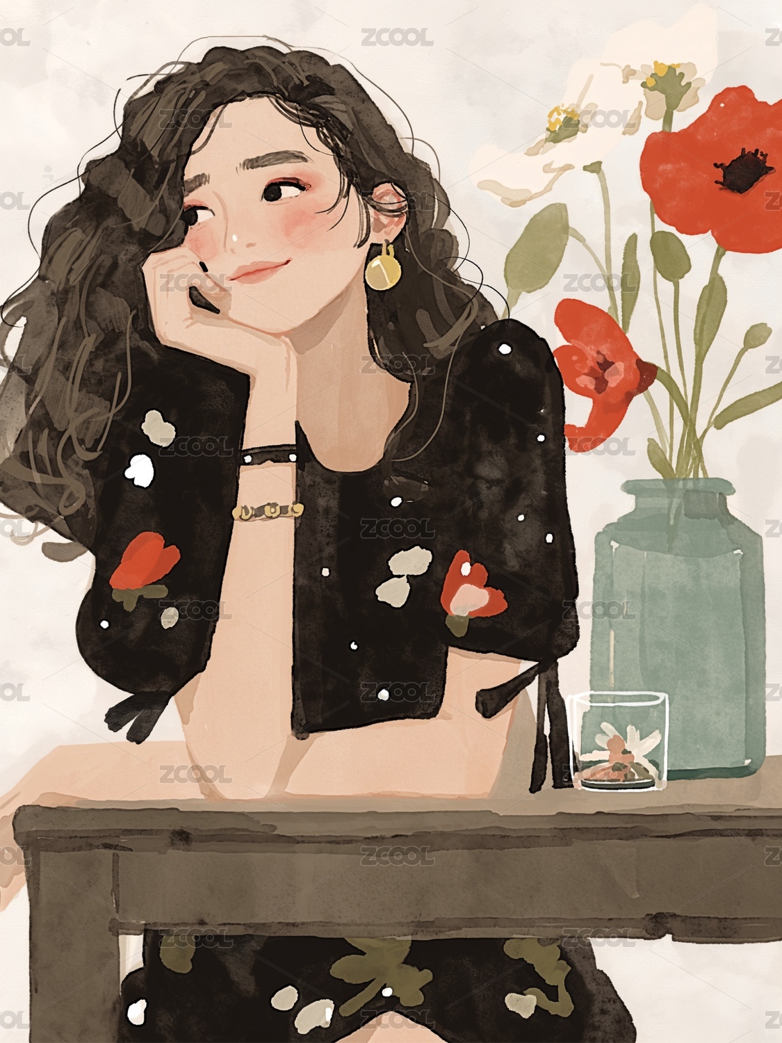 松弛感女孩的插畫