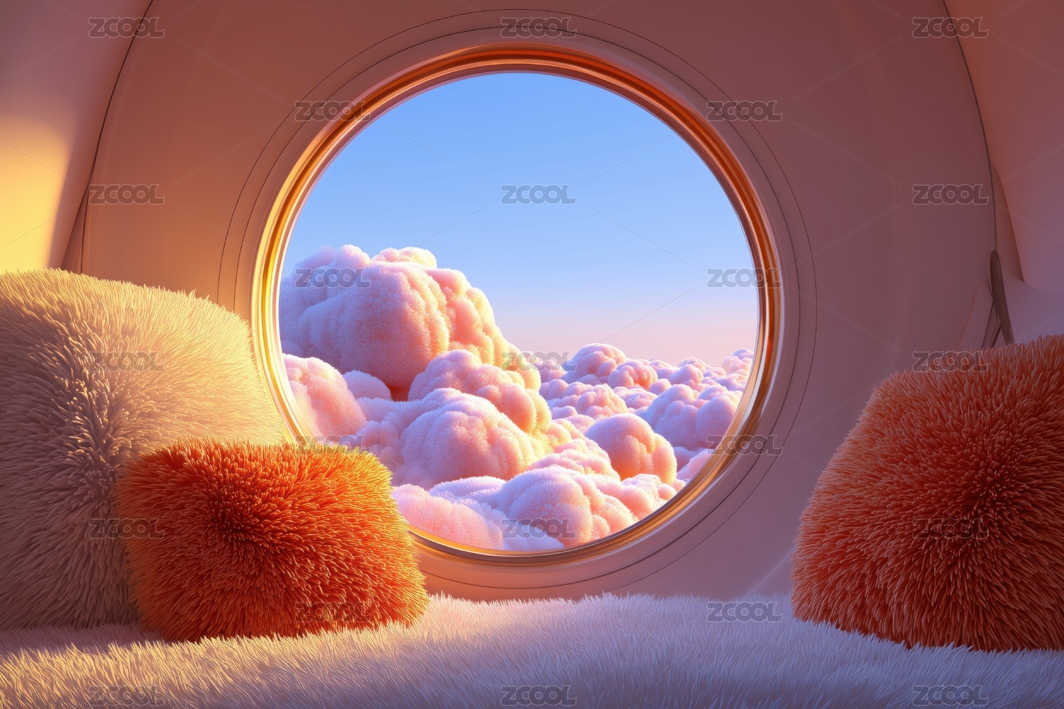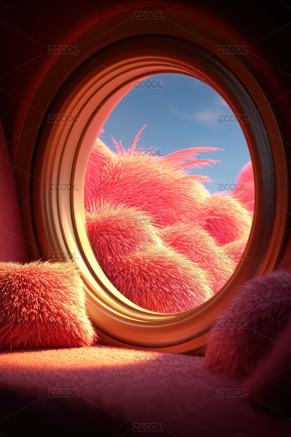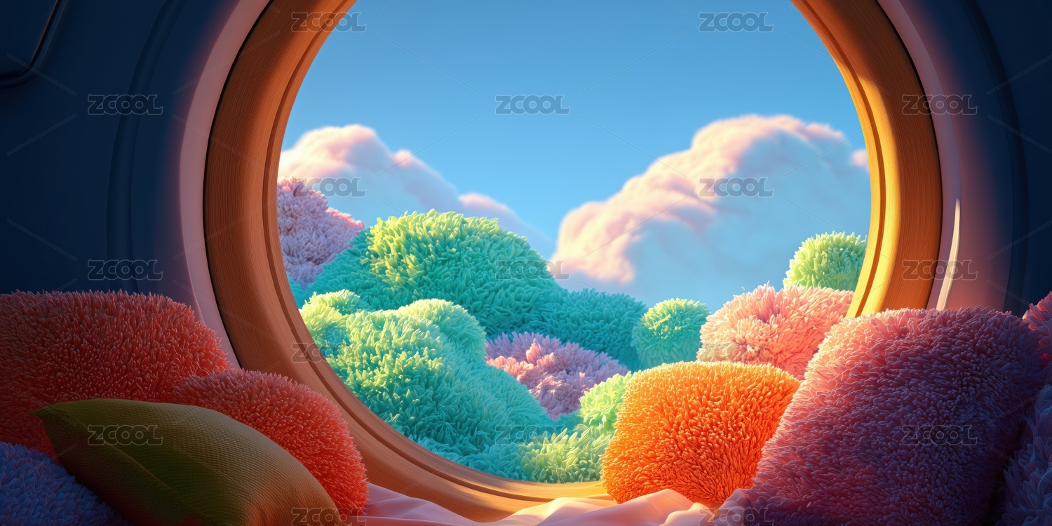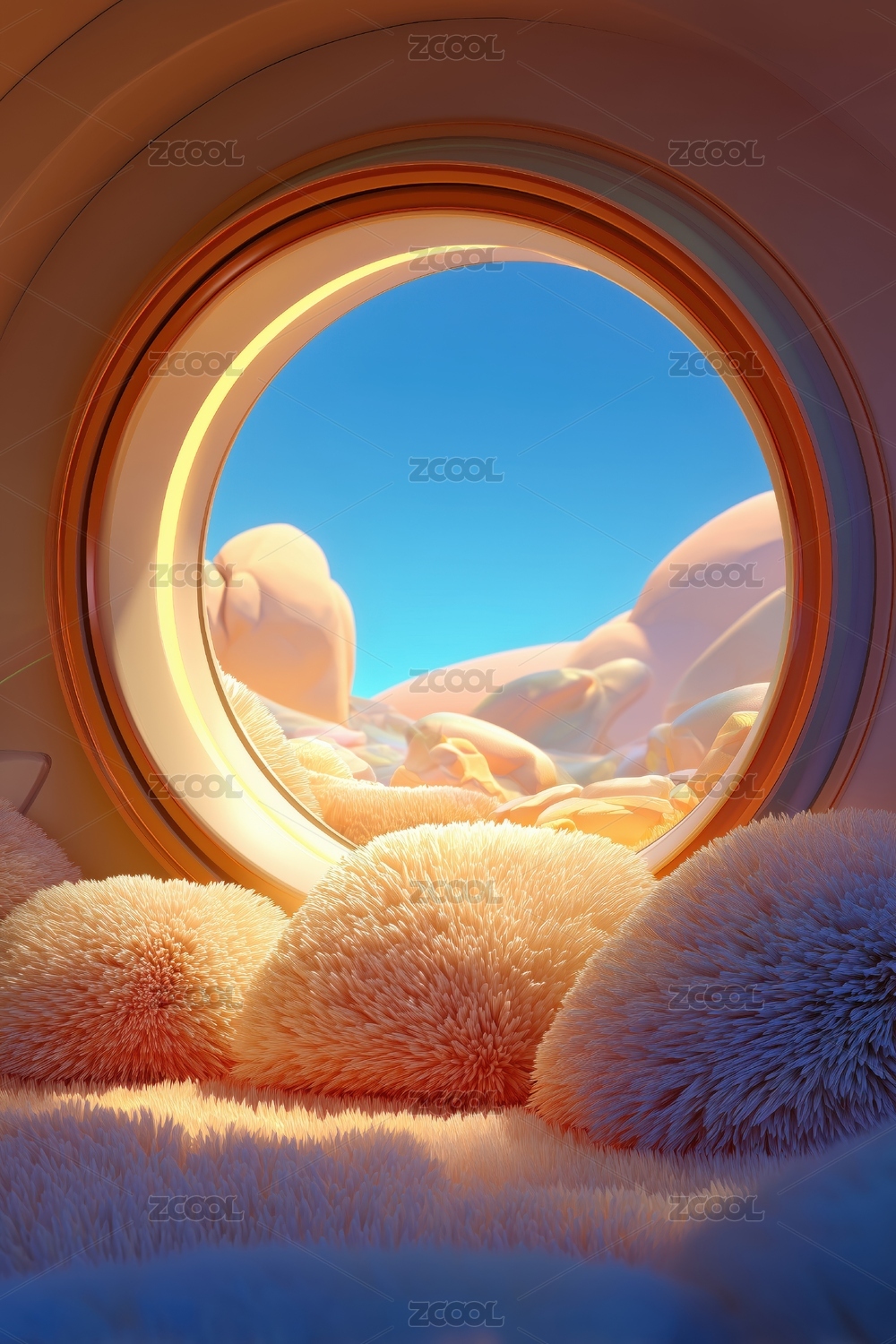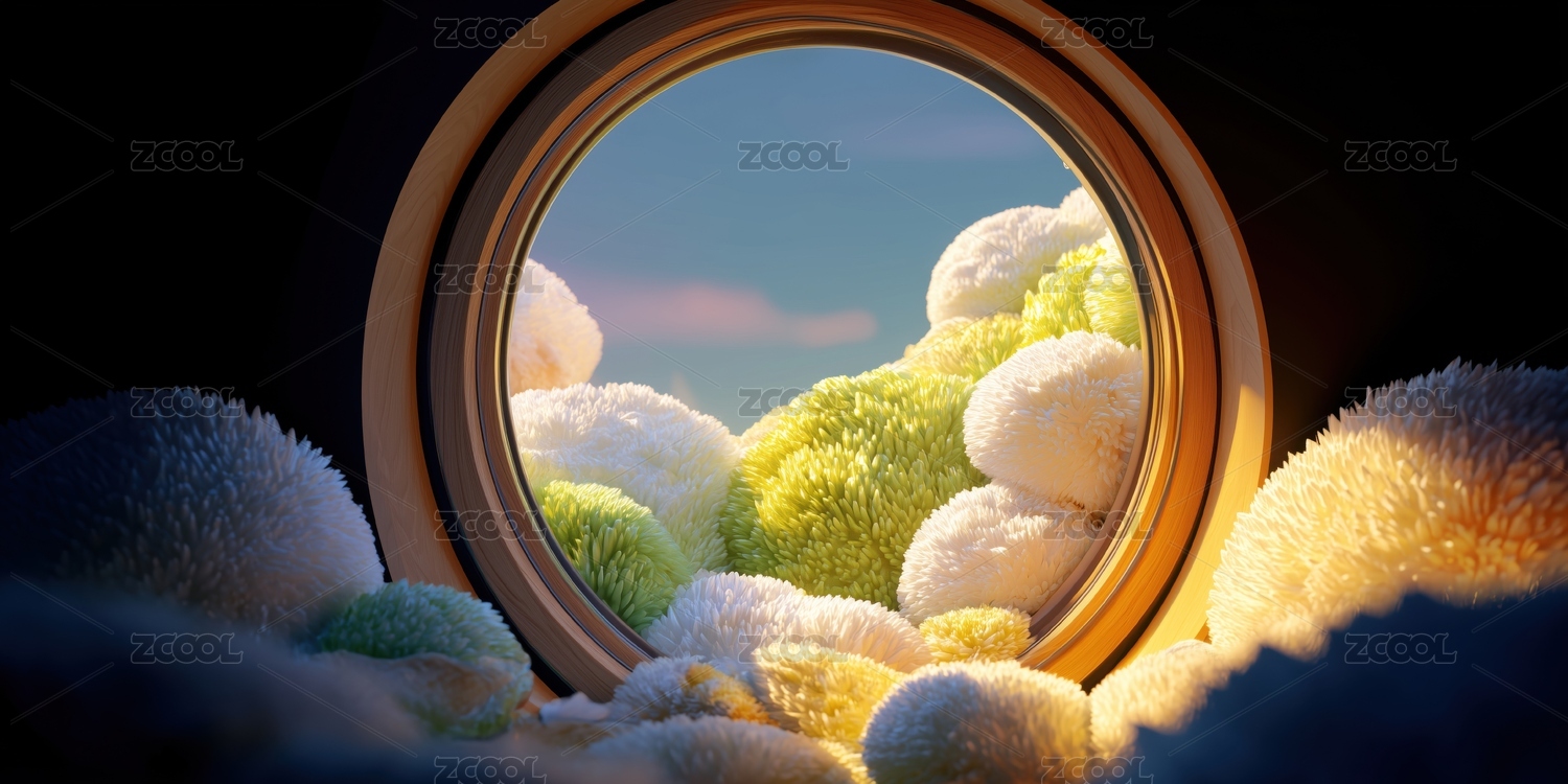松弛感外星球溫暖毛絨圓球的圓型窗外的景色