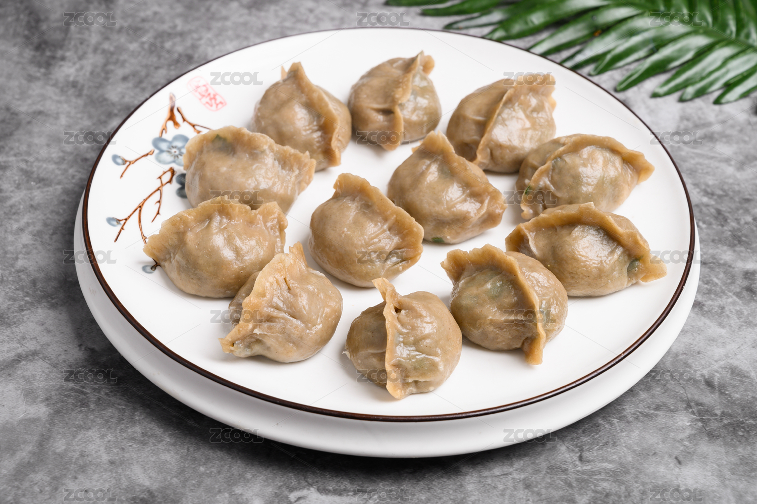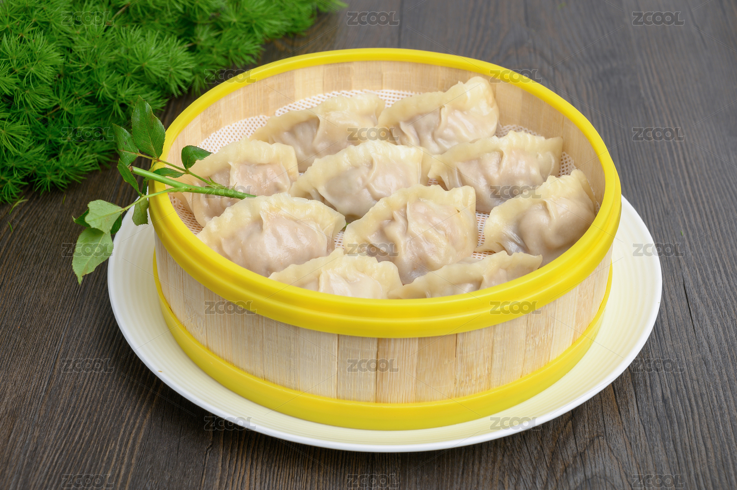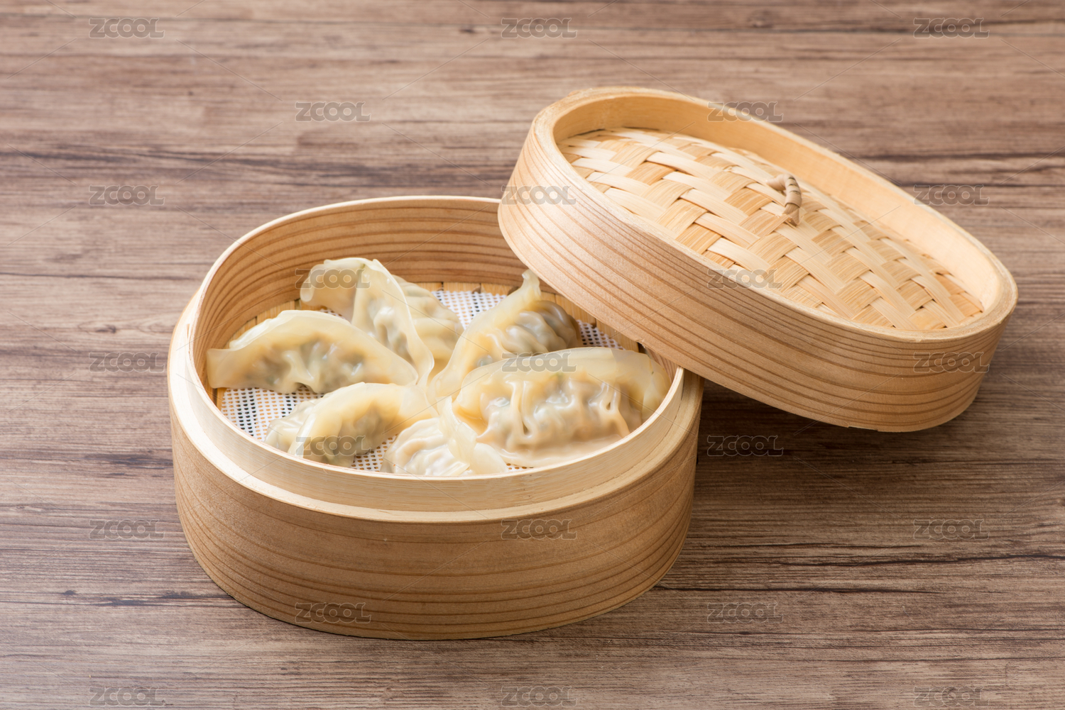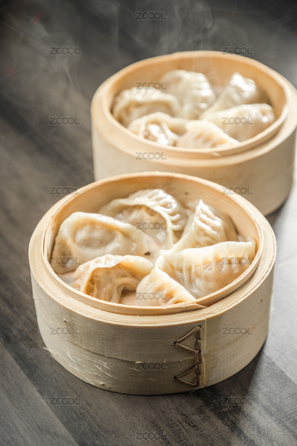 白色背景里滿滿一籠新鮮蒸餃俯視