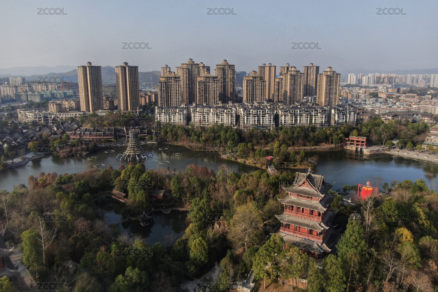重慶市璧山區(qū)俯拍南門唐城和秀湖公園