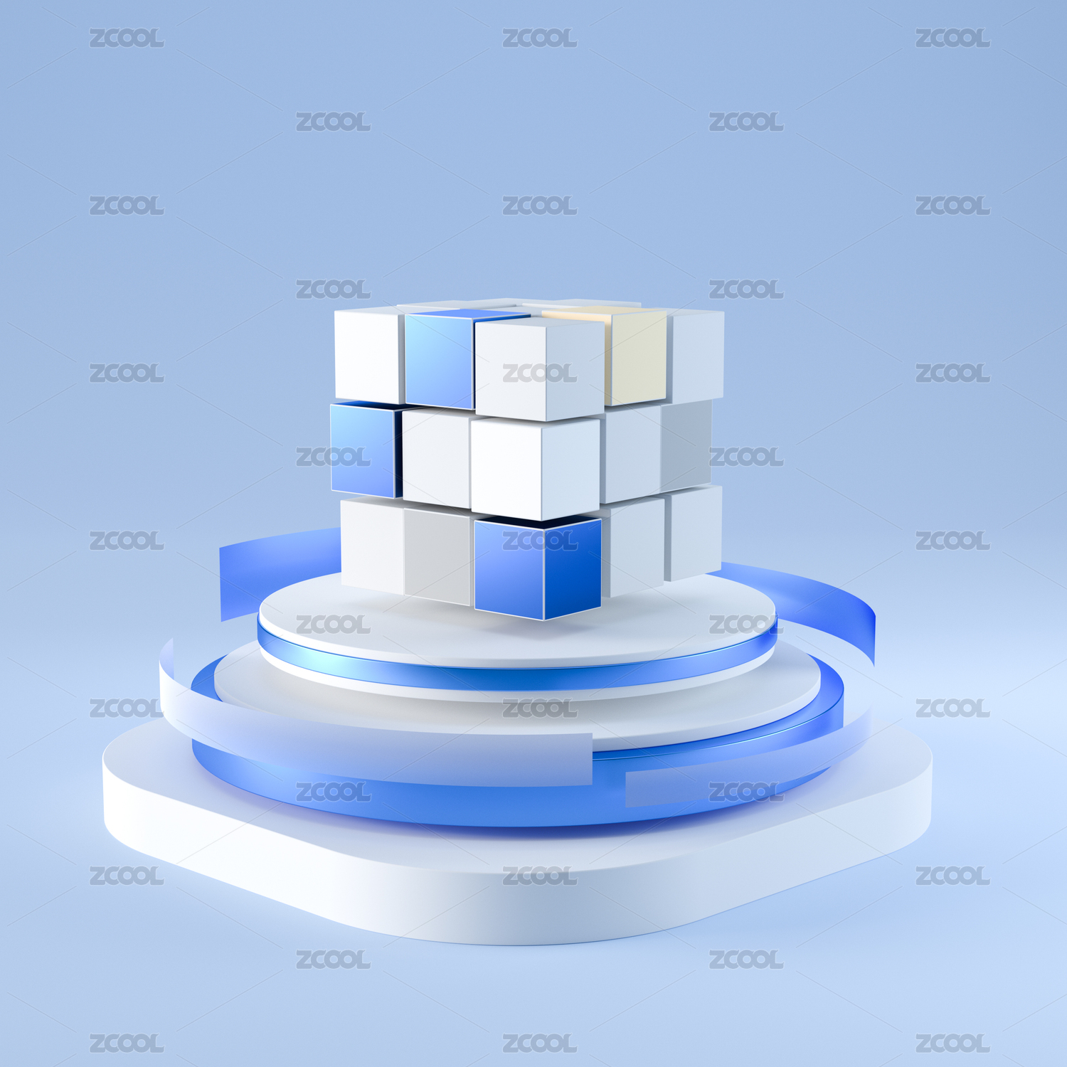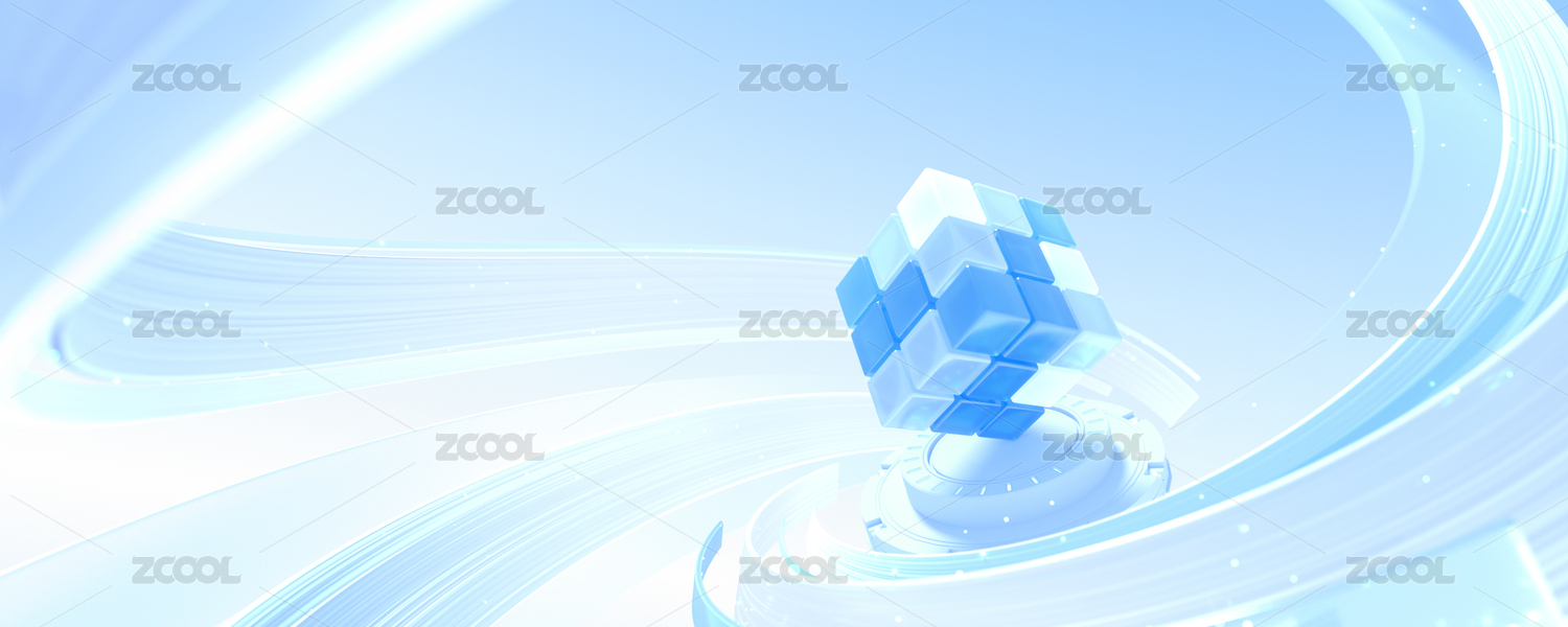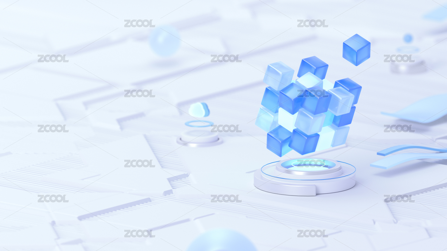 科技藍白魔方概念智能淺色科技感立體場景