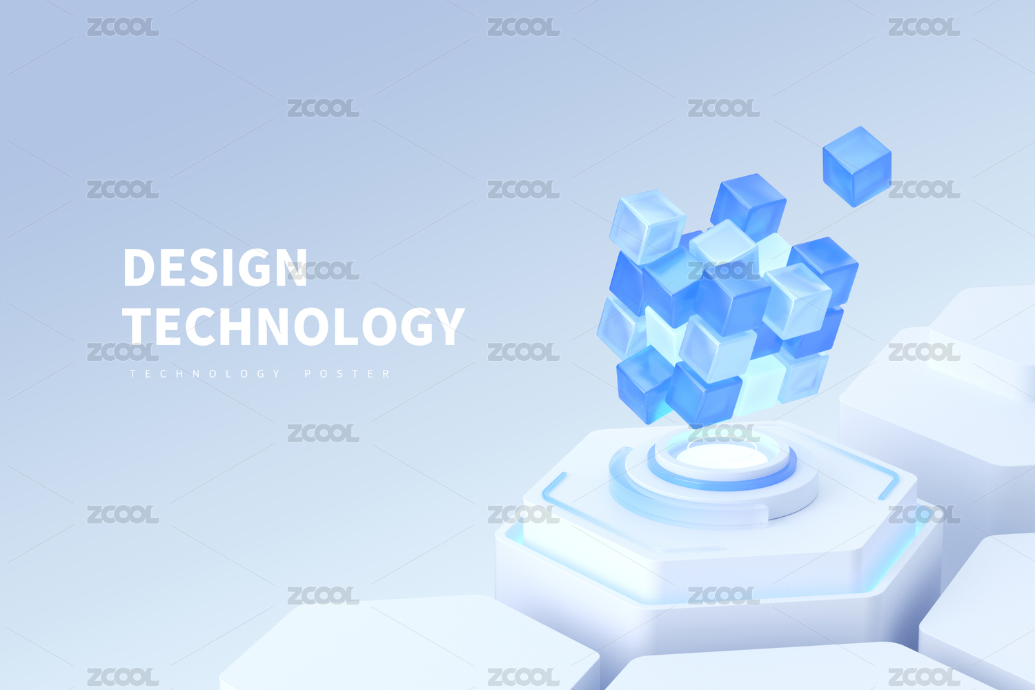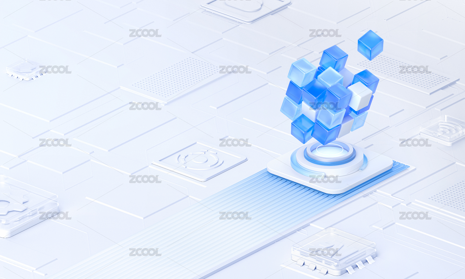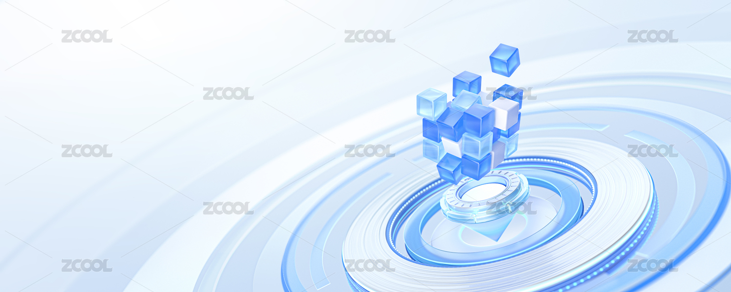 科技藍白魔方概念智能淺色科技感立體場景