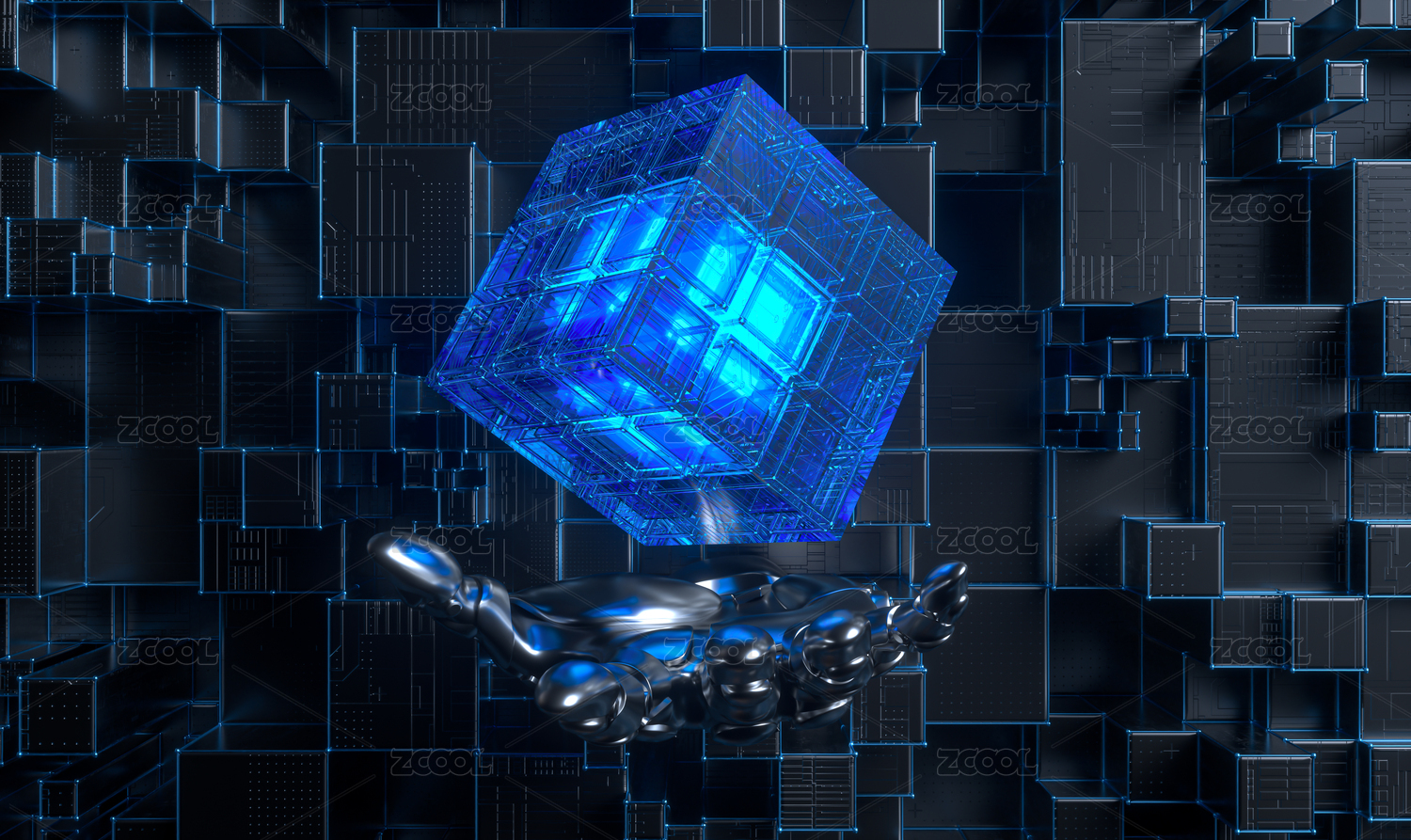 3D科技芯片魔方概念背景