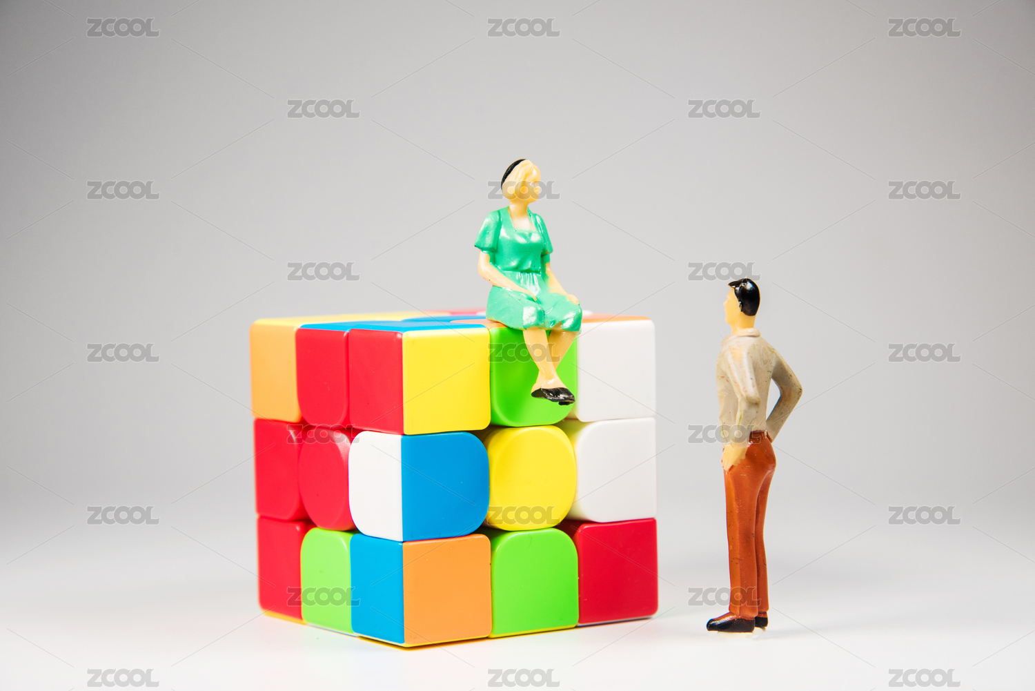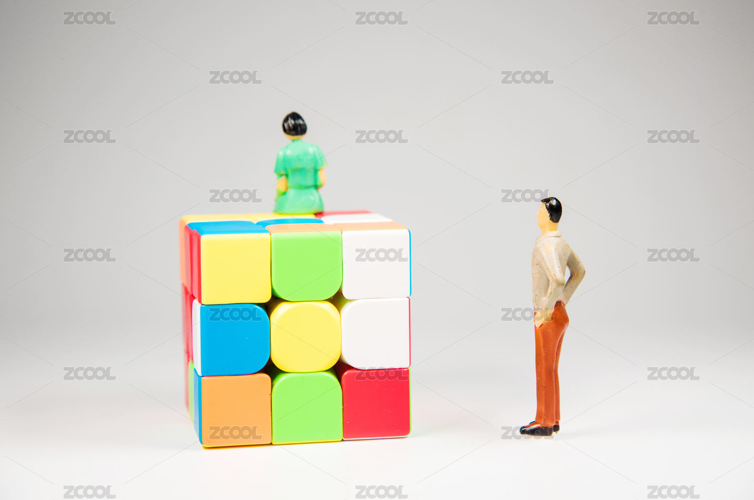 彩色的魔方和兩個小人