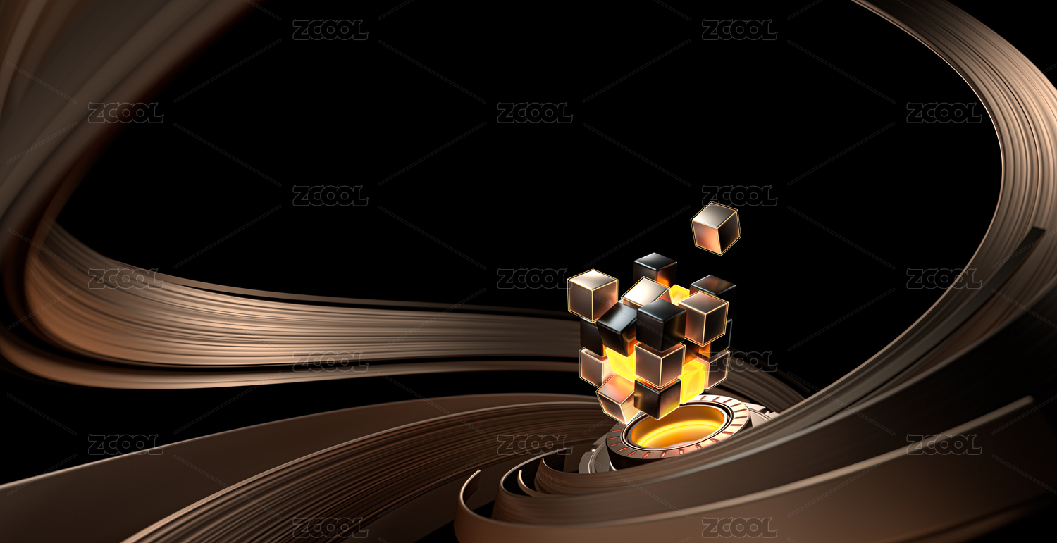 3D科技感的魔方旋轉金色水晶創(chuàng)意素材
