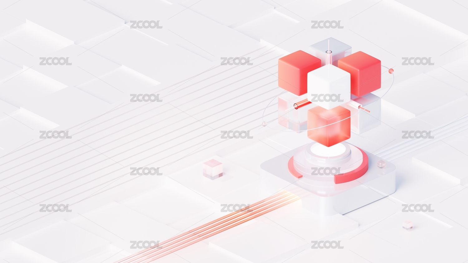 魔方組合產(chǎn)品場景3D立體紅色科技感海報
