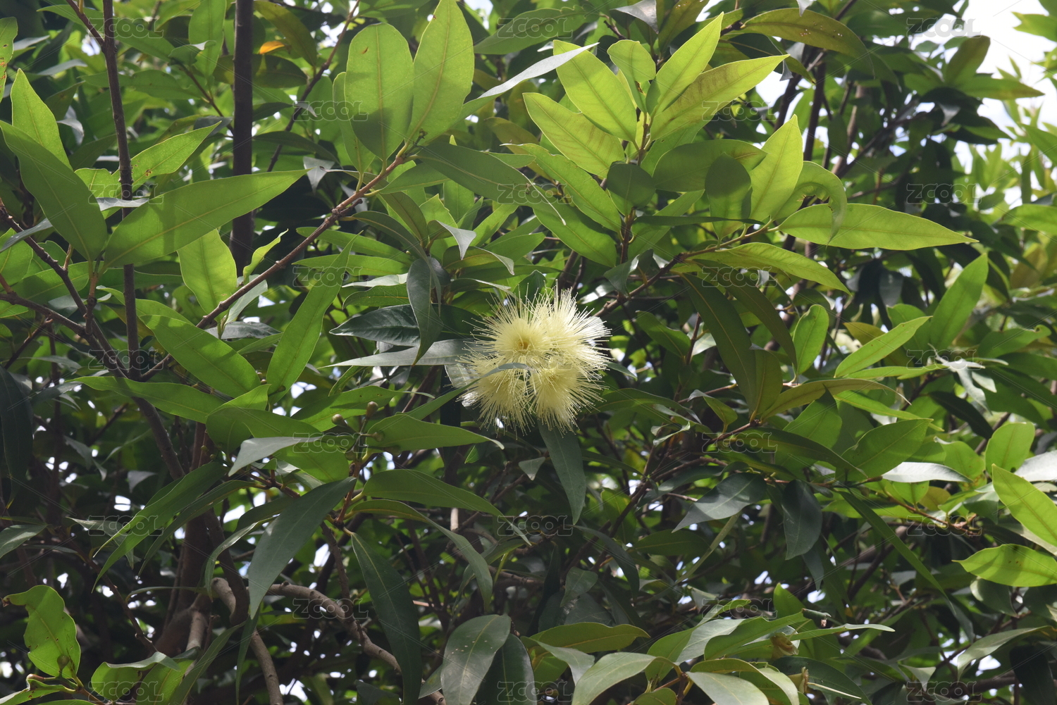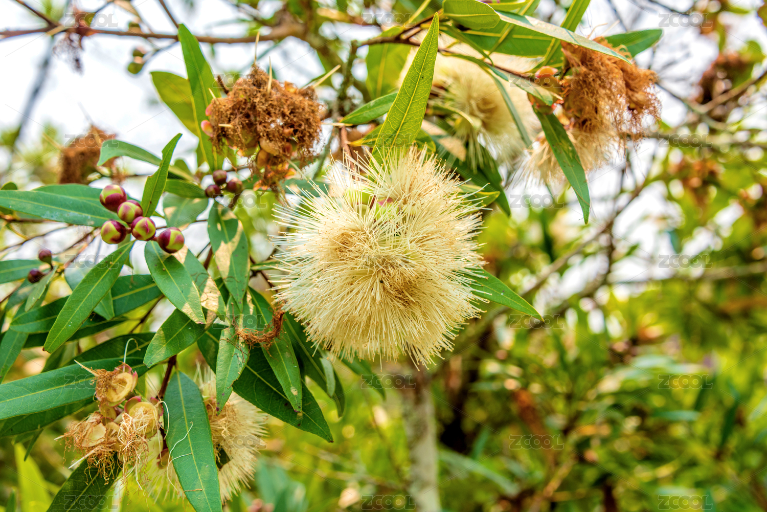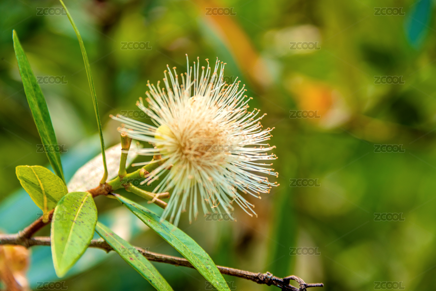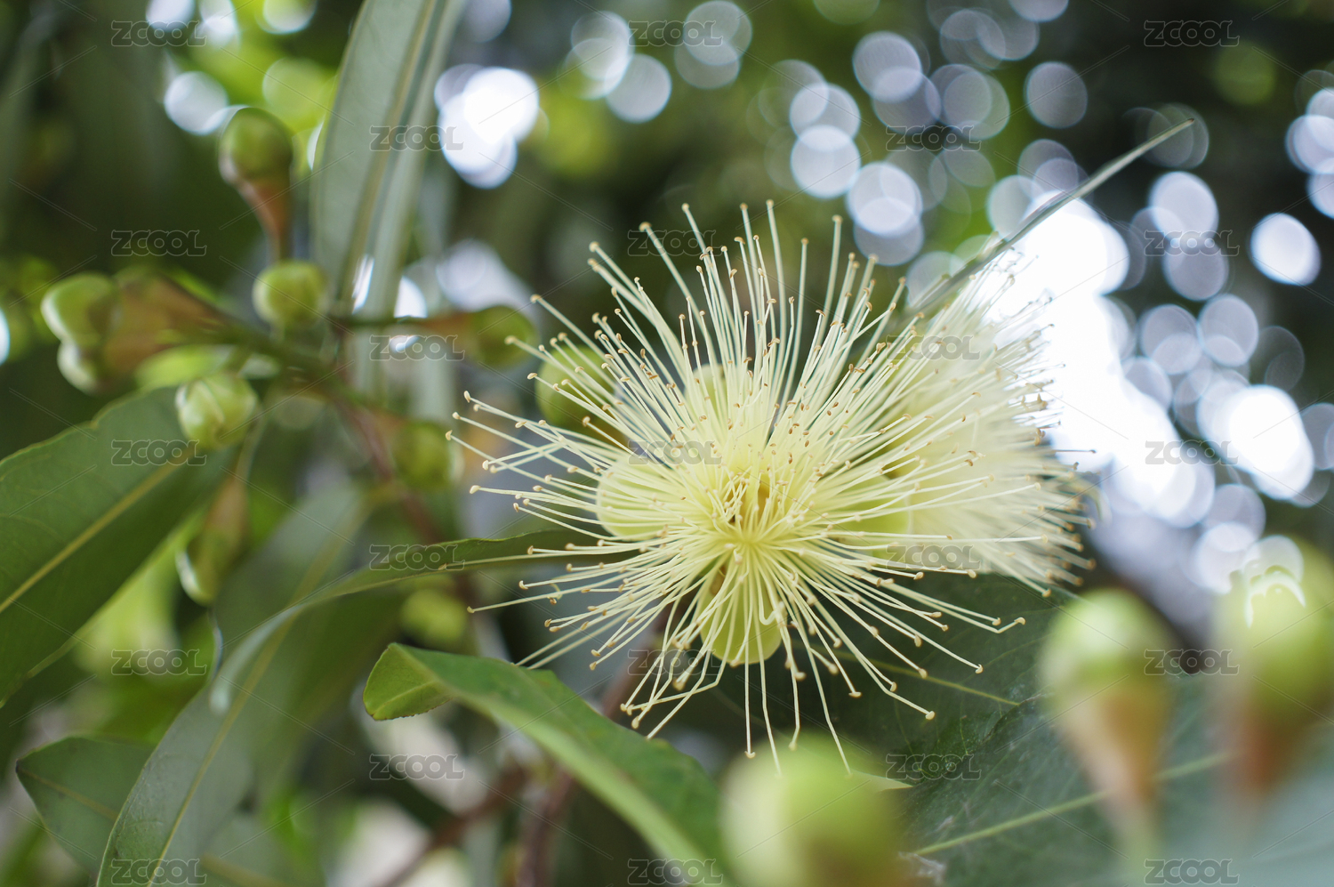 一株盛開(kāi)的黃色蒲桃花朵,千絲萬(wàn)縷