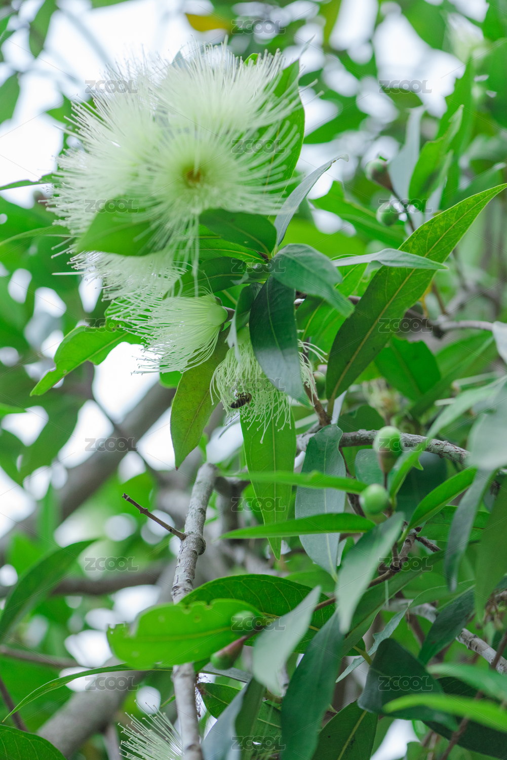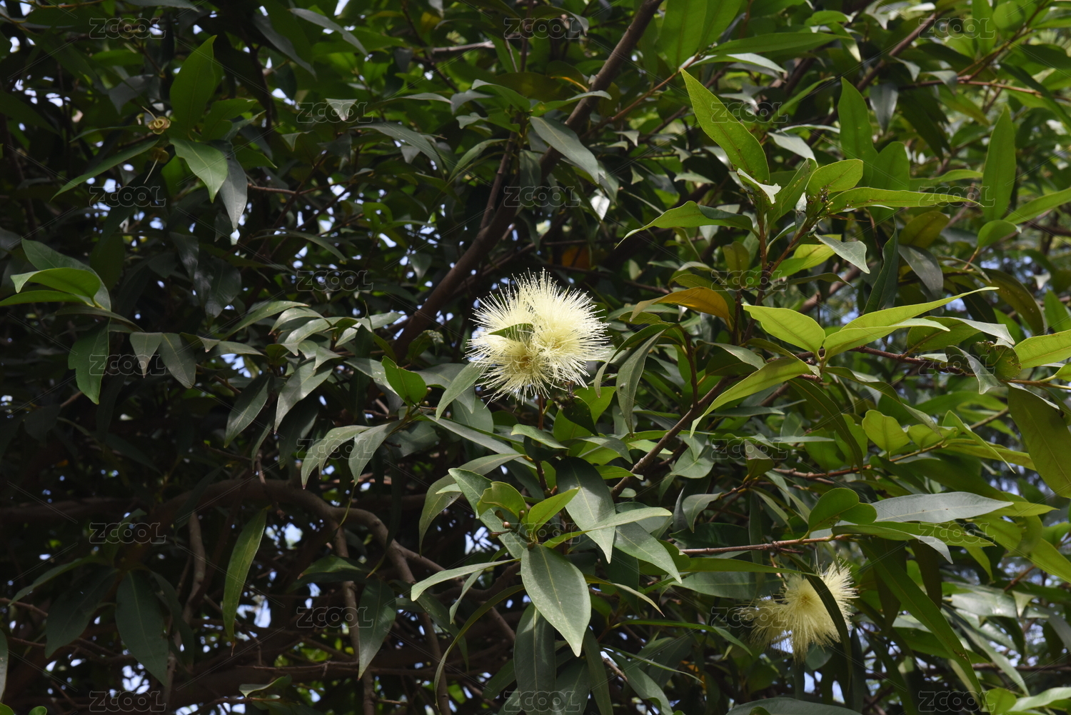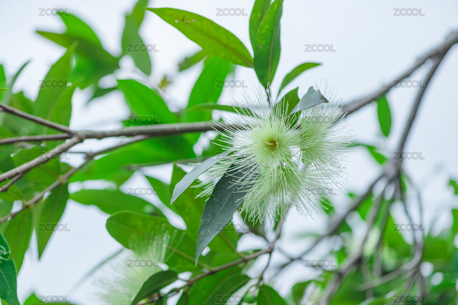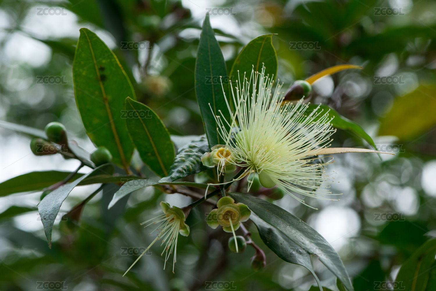 一株盛開(kāi)的黃色蒲桃花朵,千絲萬(wàn)縷
