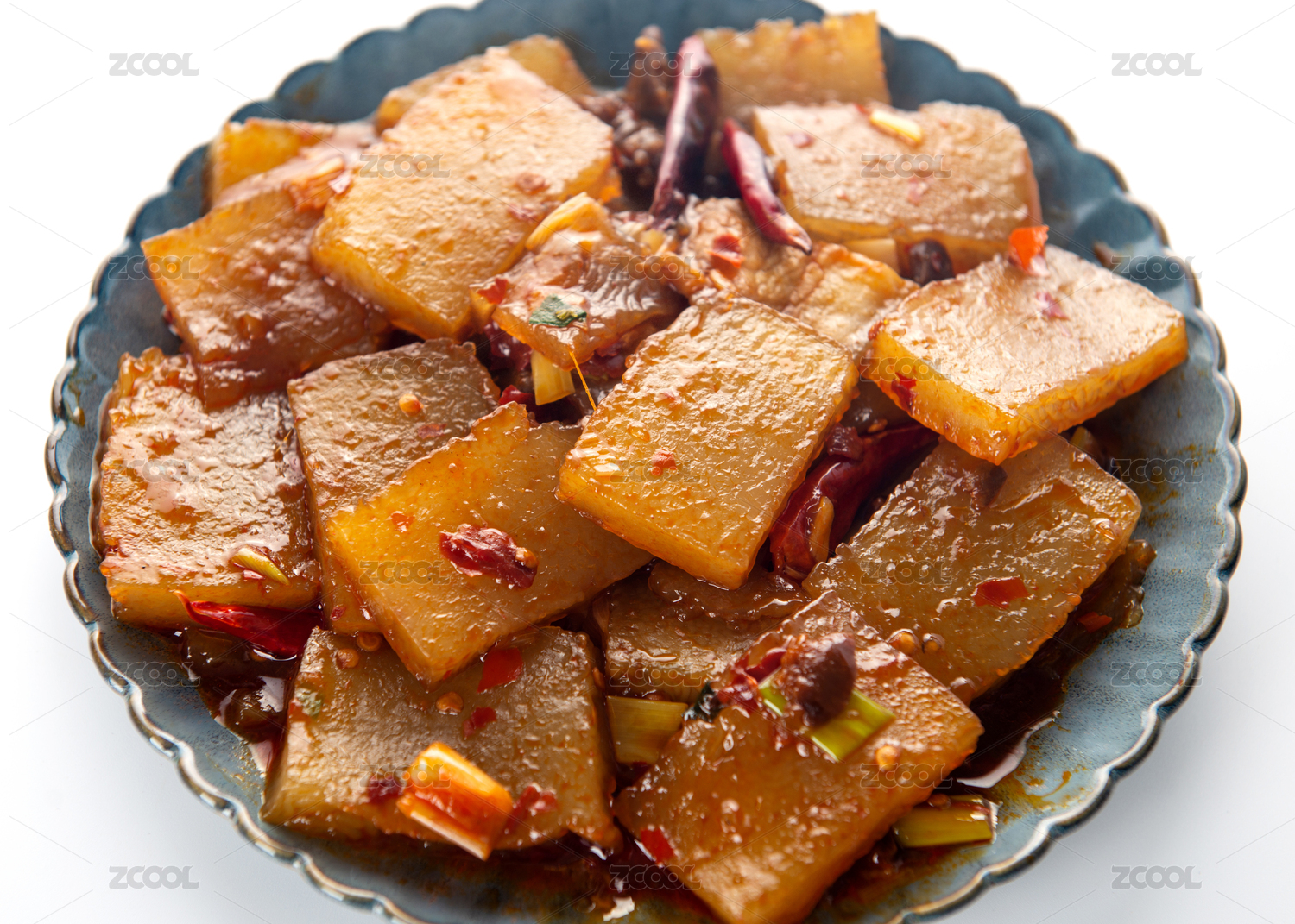 白色背景上擺放的爆炒燜子