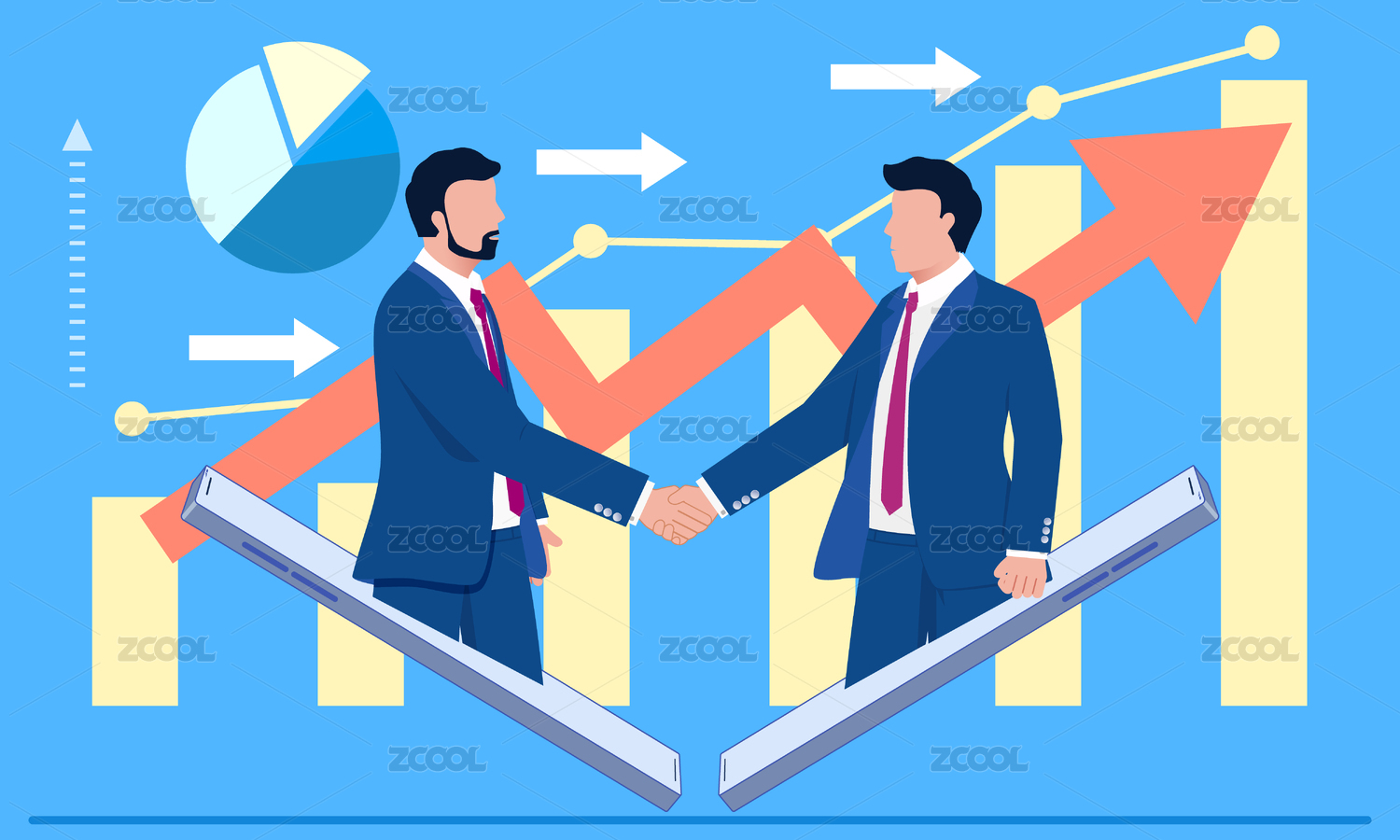 商人們握手與增長(zhǎng)圖表特效圖設(shè)計(jì)。