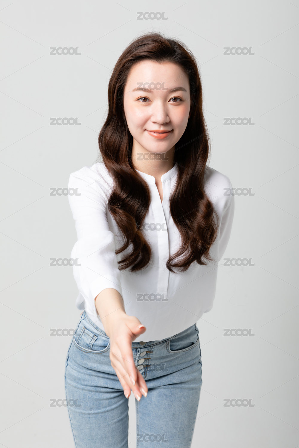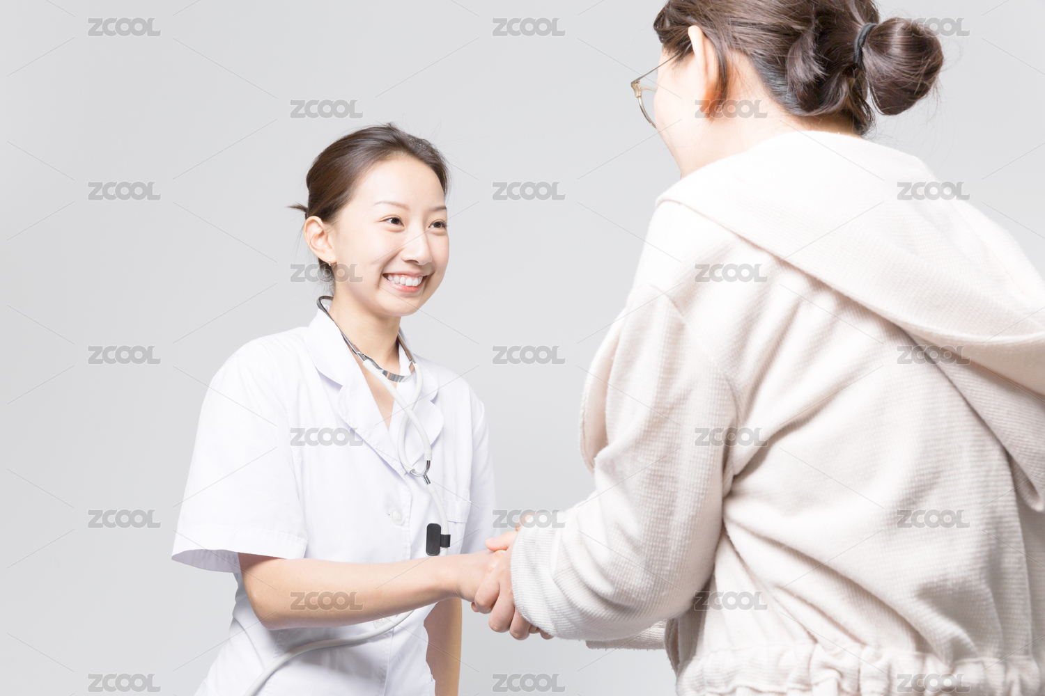 淺灰色背景前一名患者在感激女醫(yī)生兩人握手