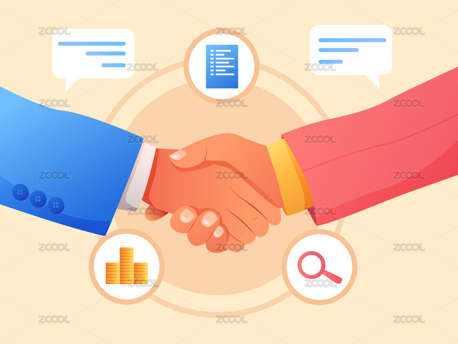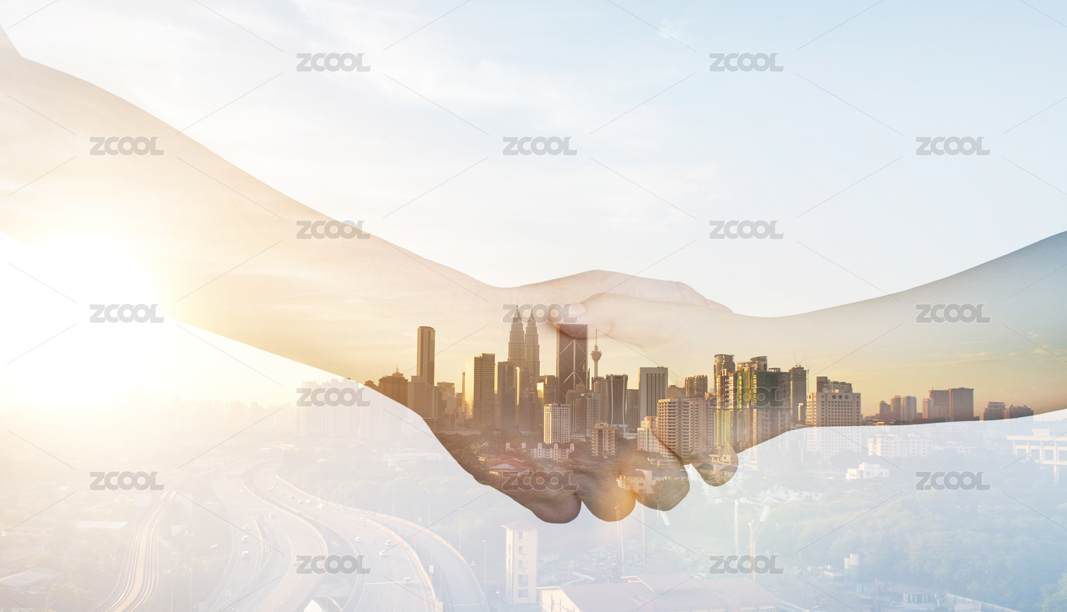 兩個(gè)商人握手達(dá)成合作促使業(yè)績(jī)?cè)鲩L(zhǎng)