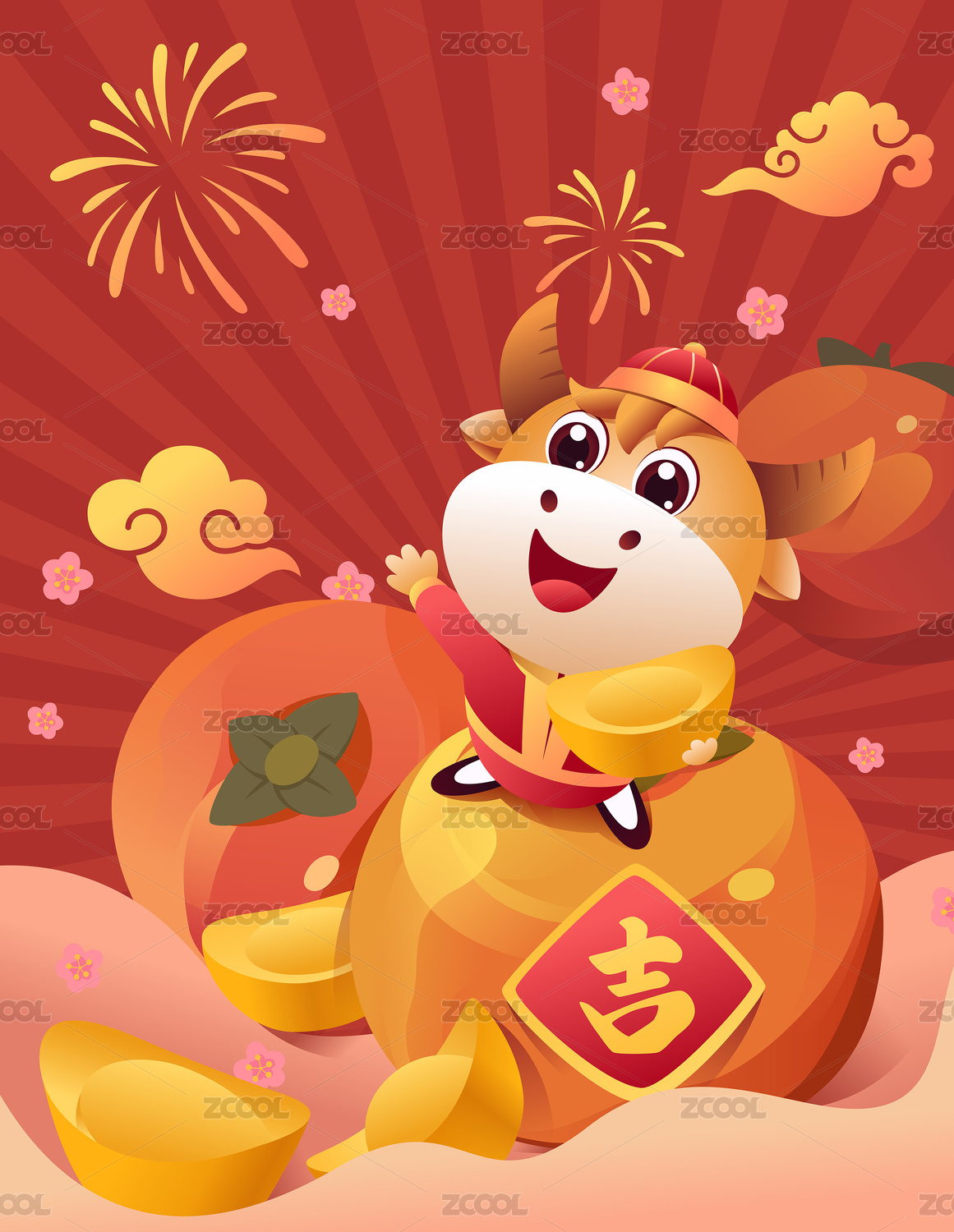 2021牛年新年主題插畫(huà)金??ㄍ?/div>