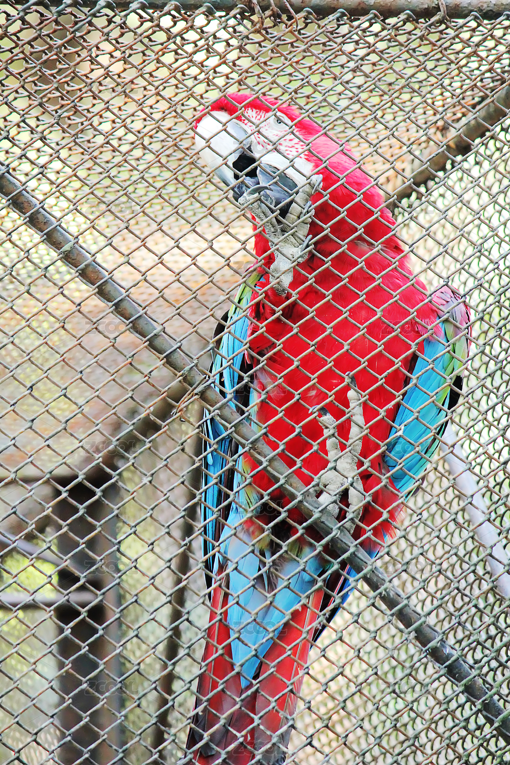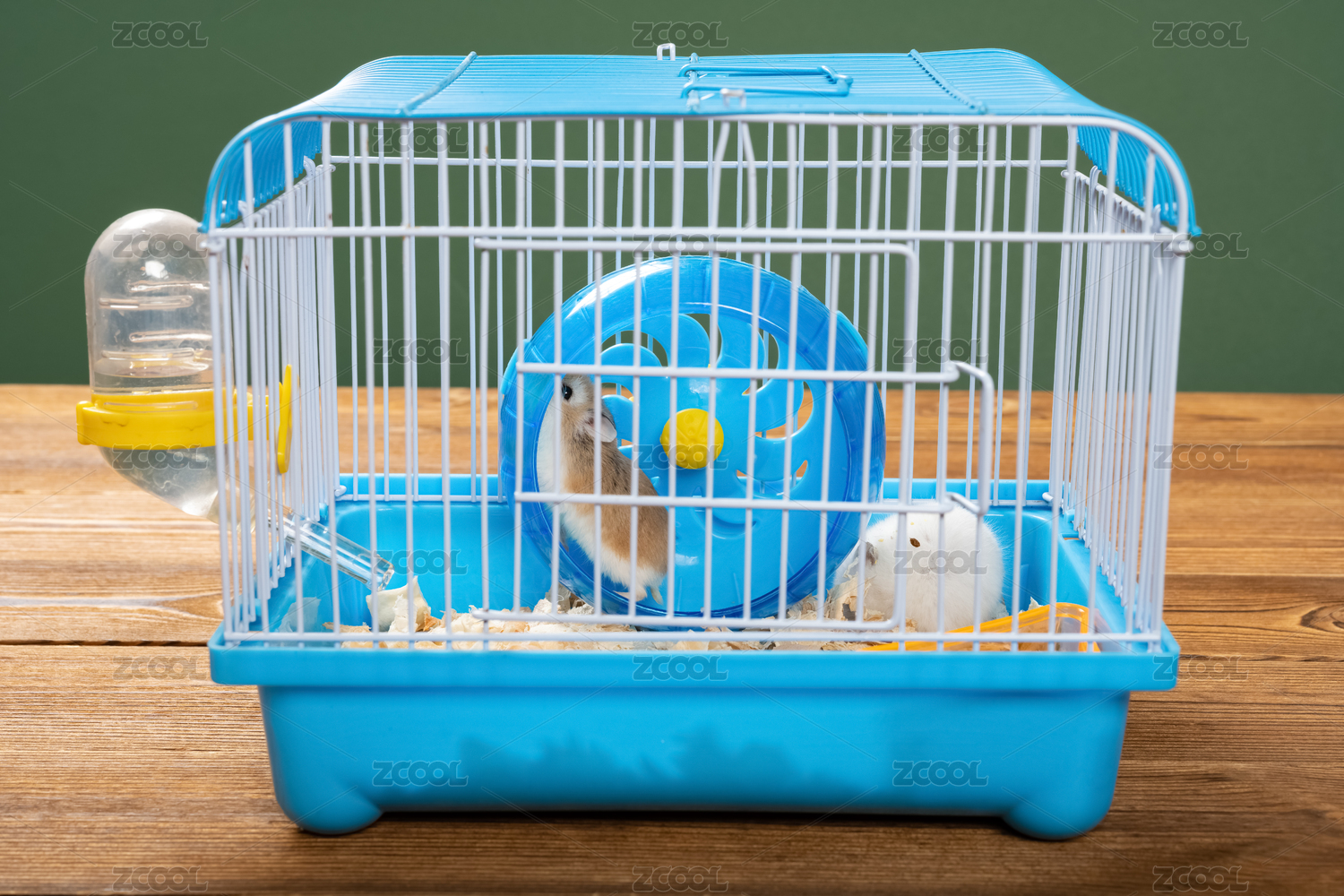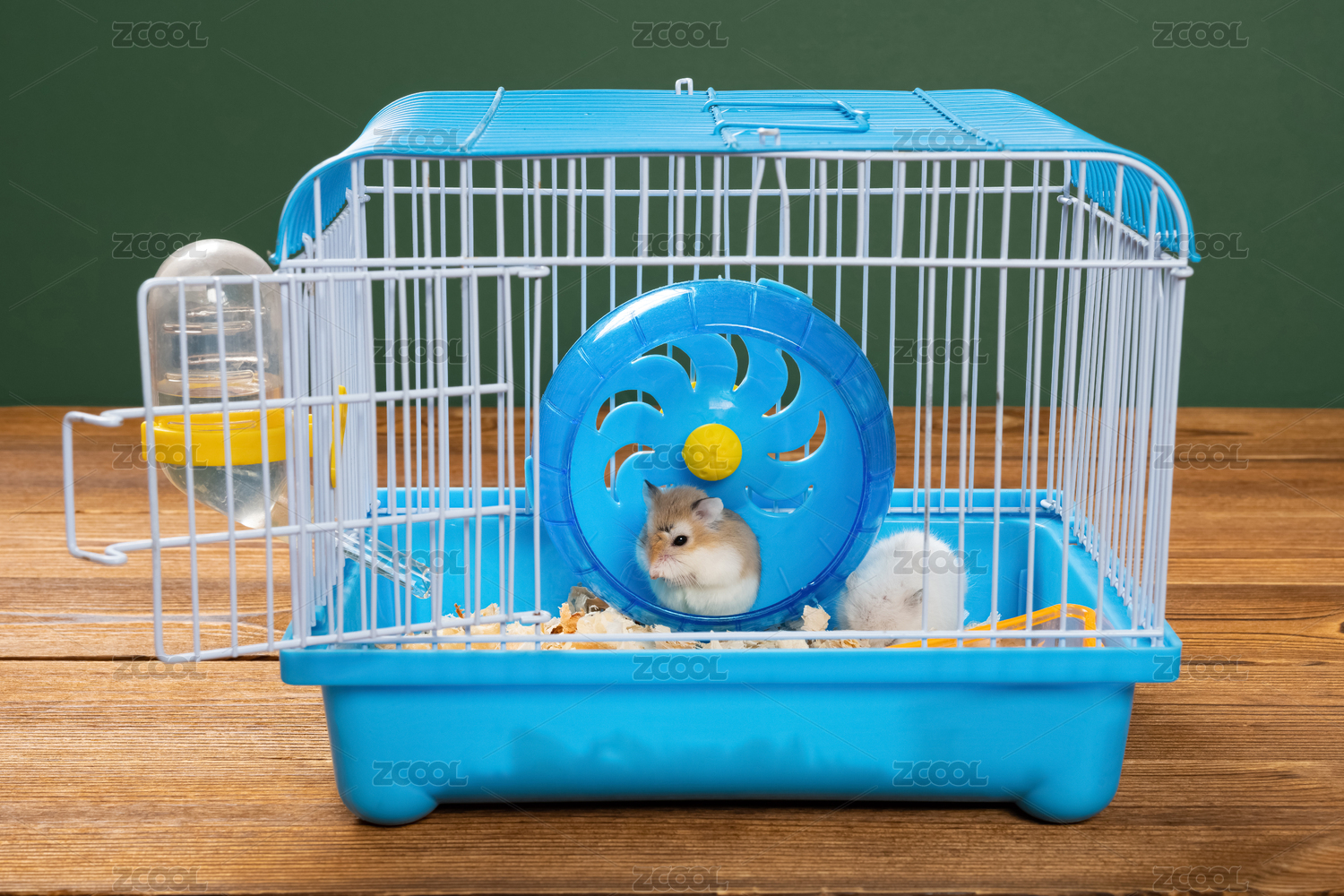 廢棄在墻角的一個(gè)藍(lán)色的鐵籠子