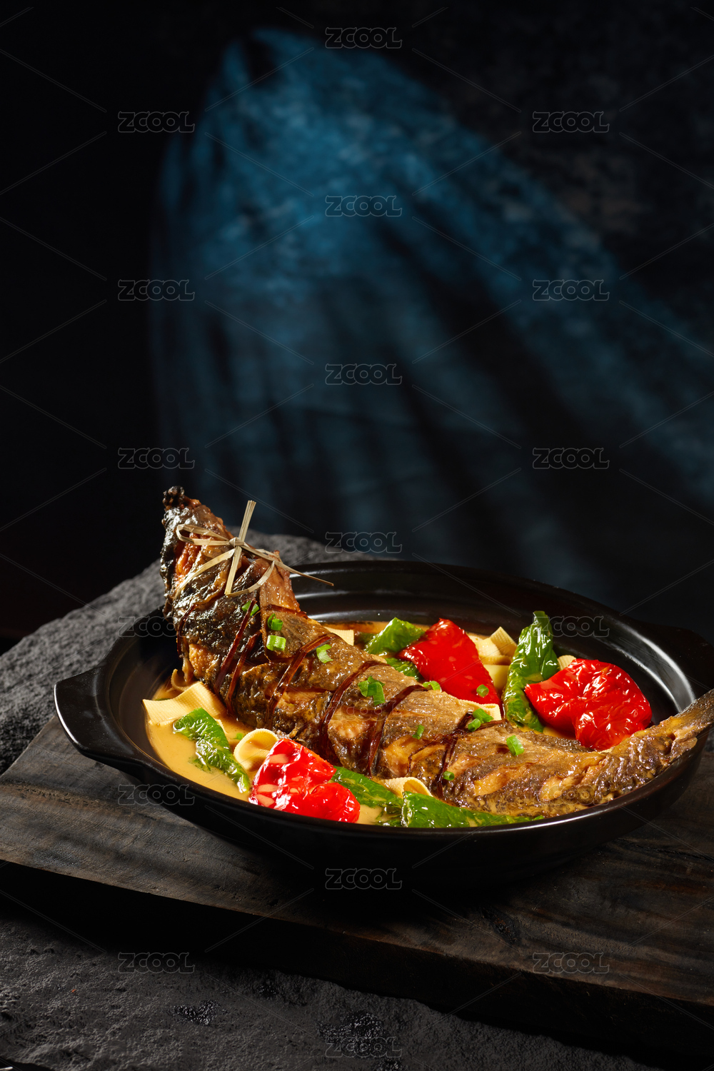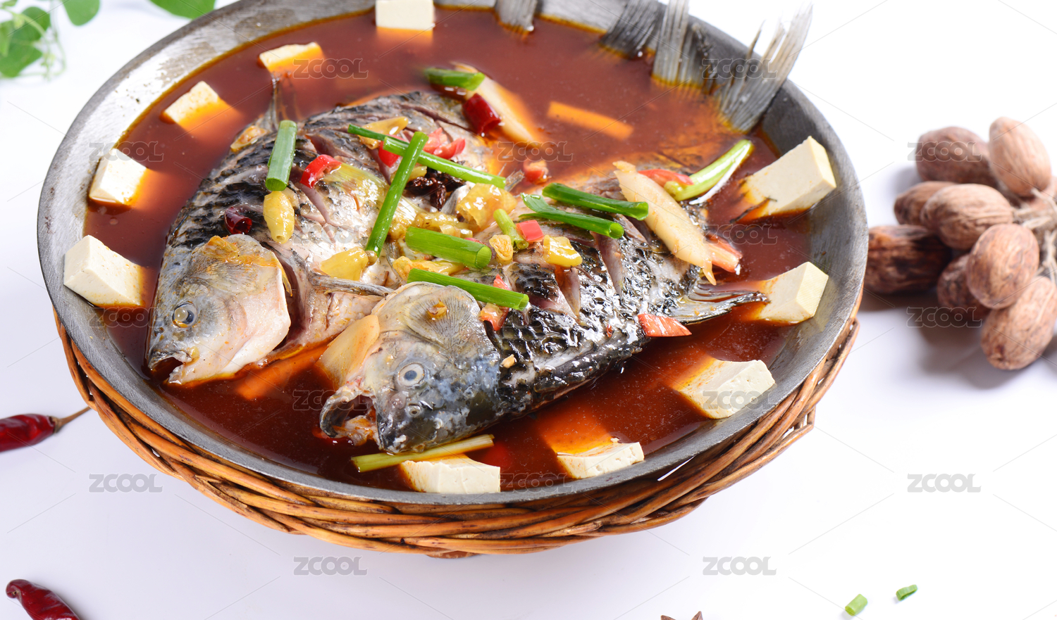 鐵鍋里的紅燒鯉魚