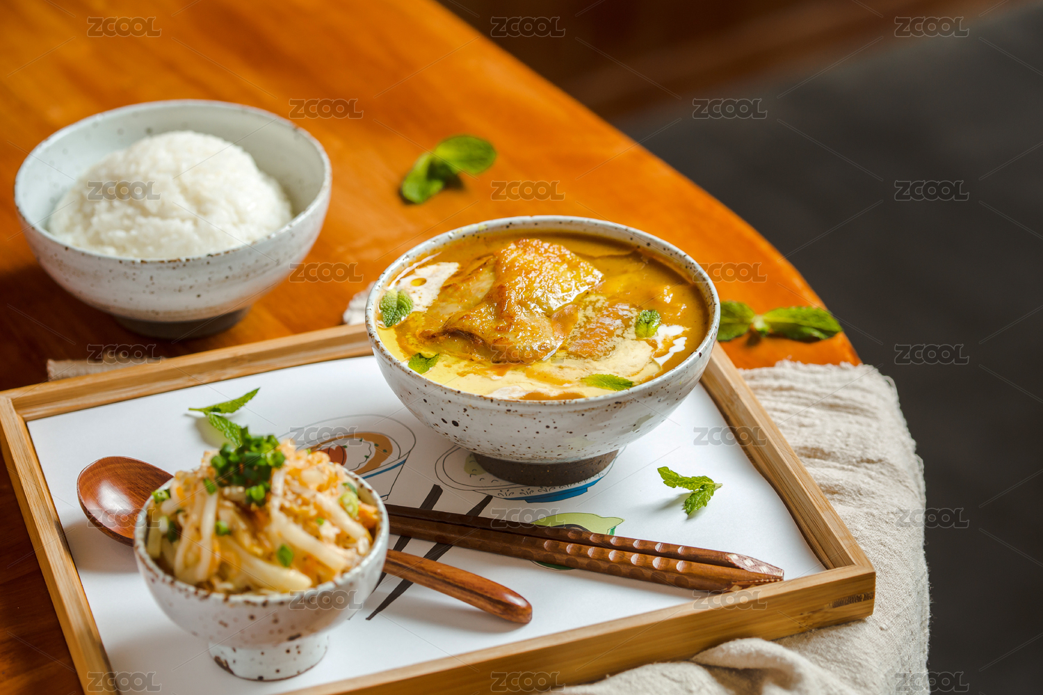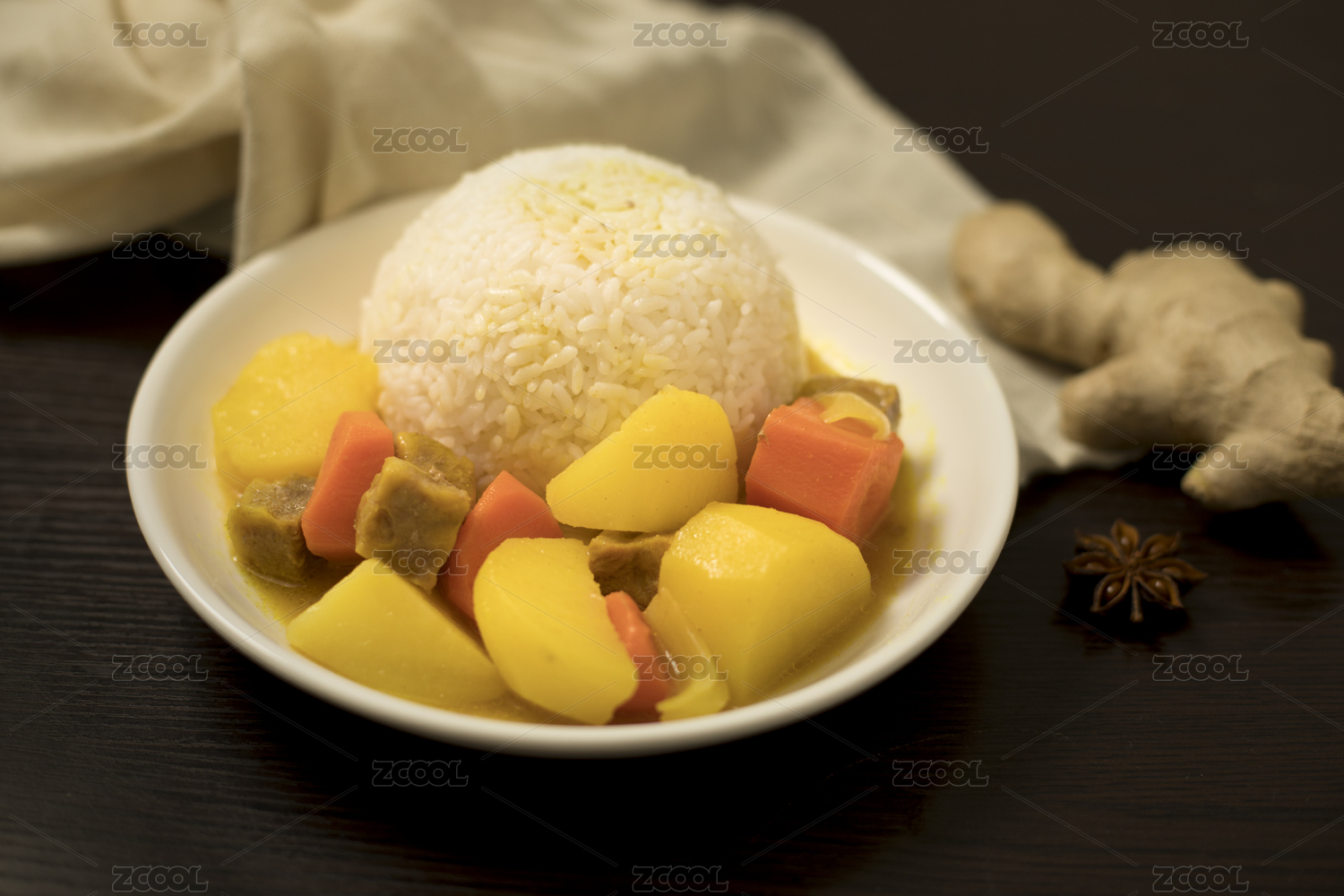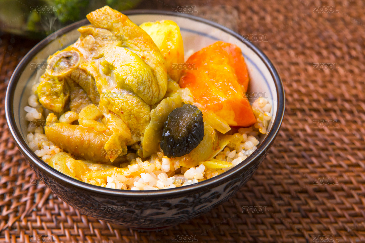 特色快餐咖喱肋排飯及配料