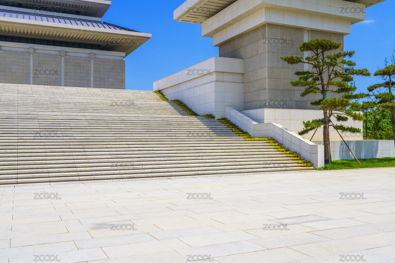 石頭臺階前的石板地面