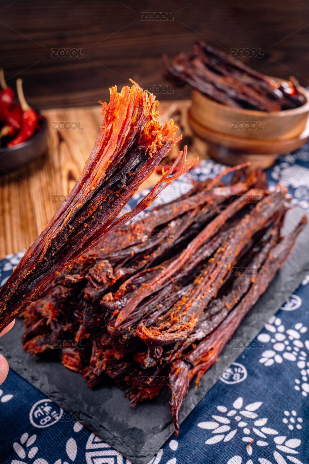 石板上的豬肉干巴