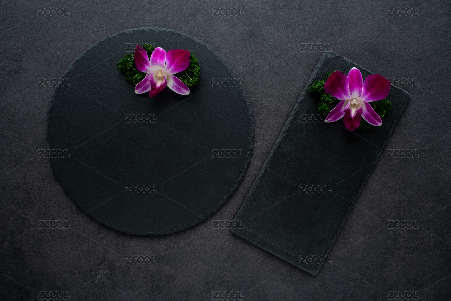 蘭花擺盤裝飾的黑色石板托盤