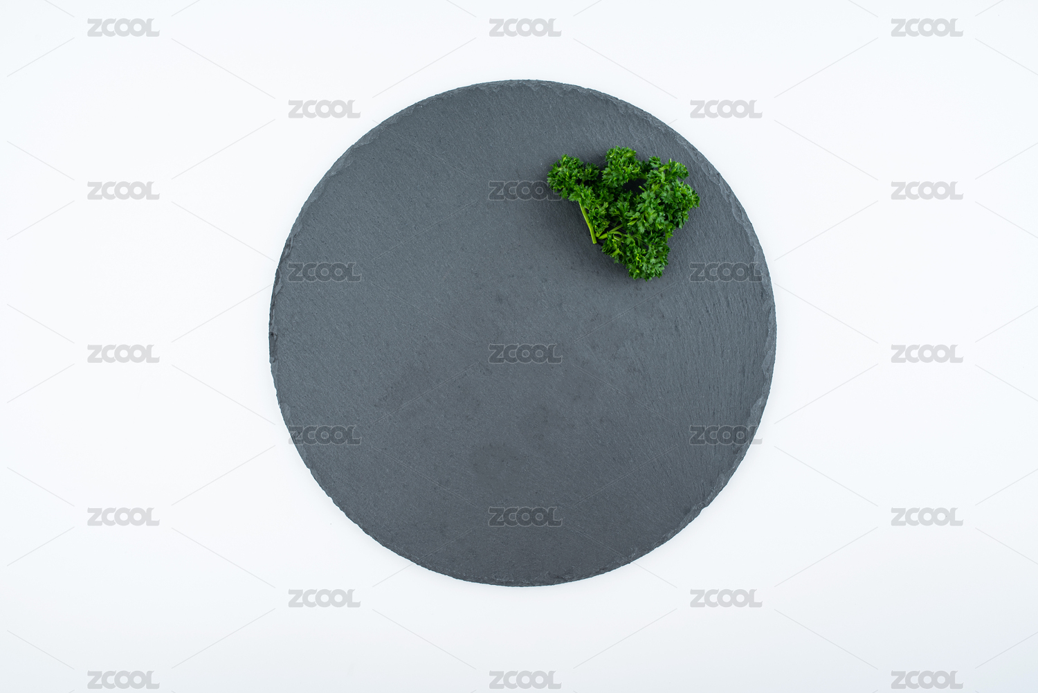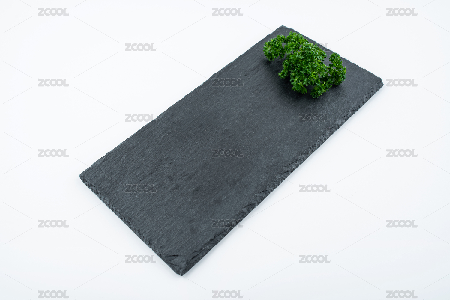 歐芹擺盤裝飾的黑色石板托盤
