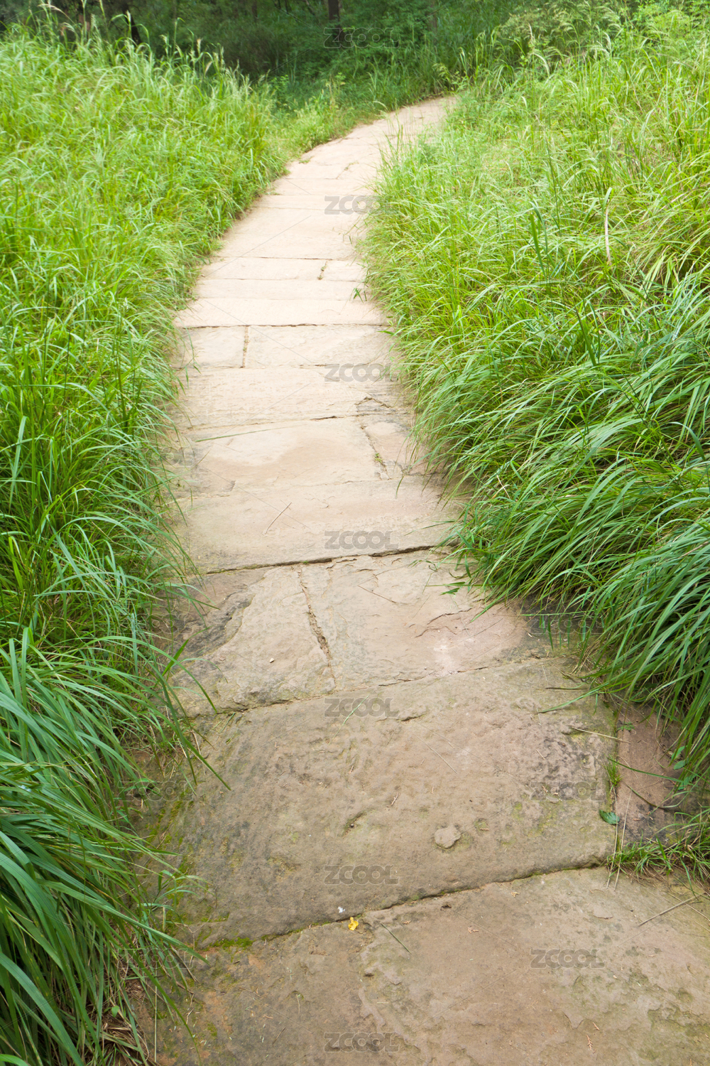 石板小徑蜿蜒于綠草叢中