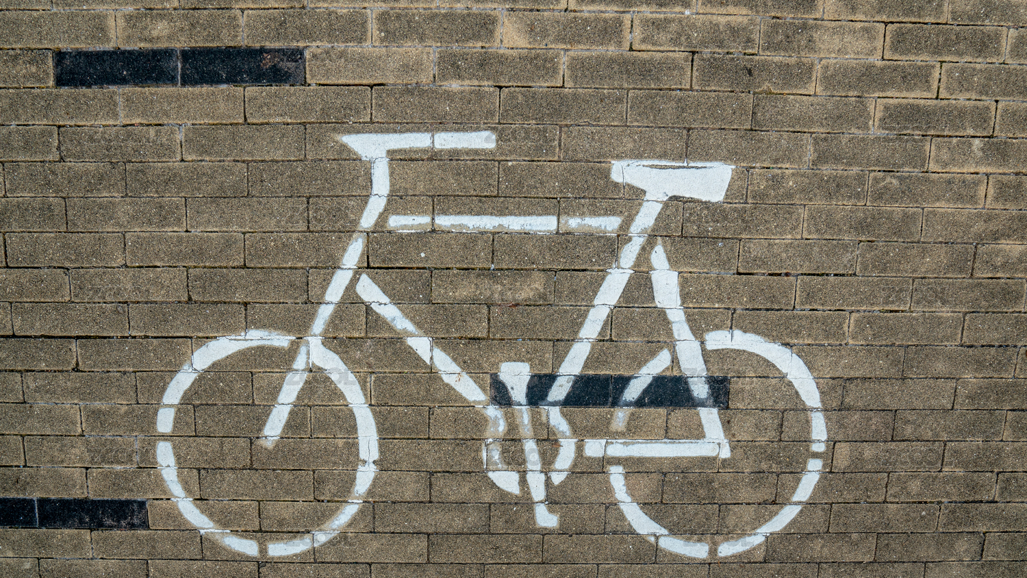 戶外無(wú)人石磚路面上的自行車標(biāo)志