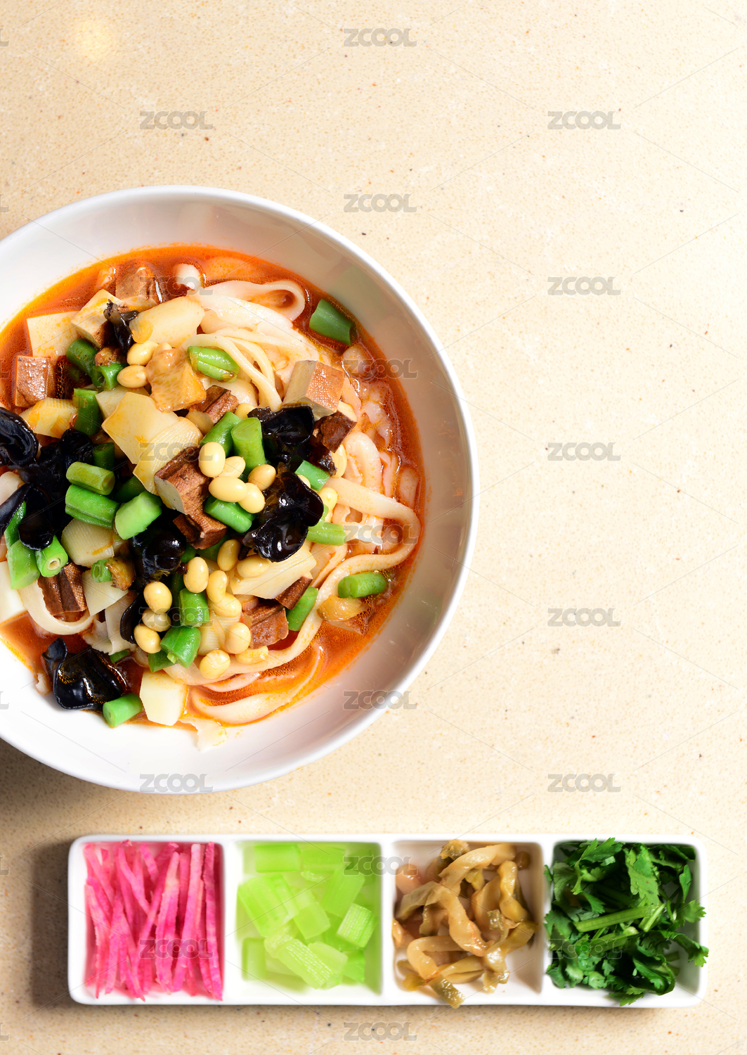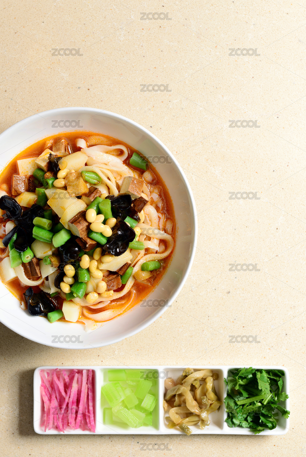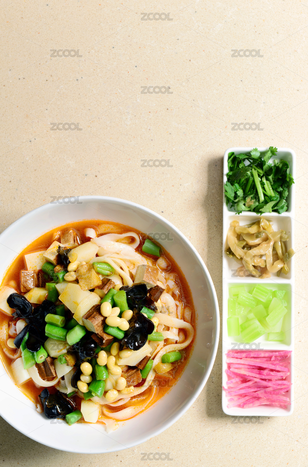 放在竹簾上的一碗傳統(tǒng)家常涼拌面 — 涼拌山西刀削面