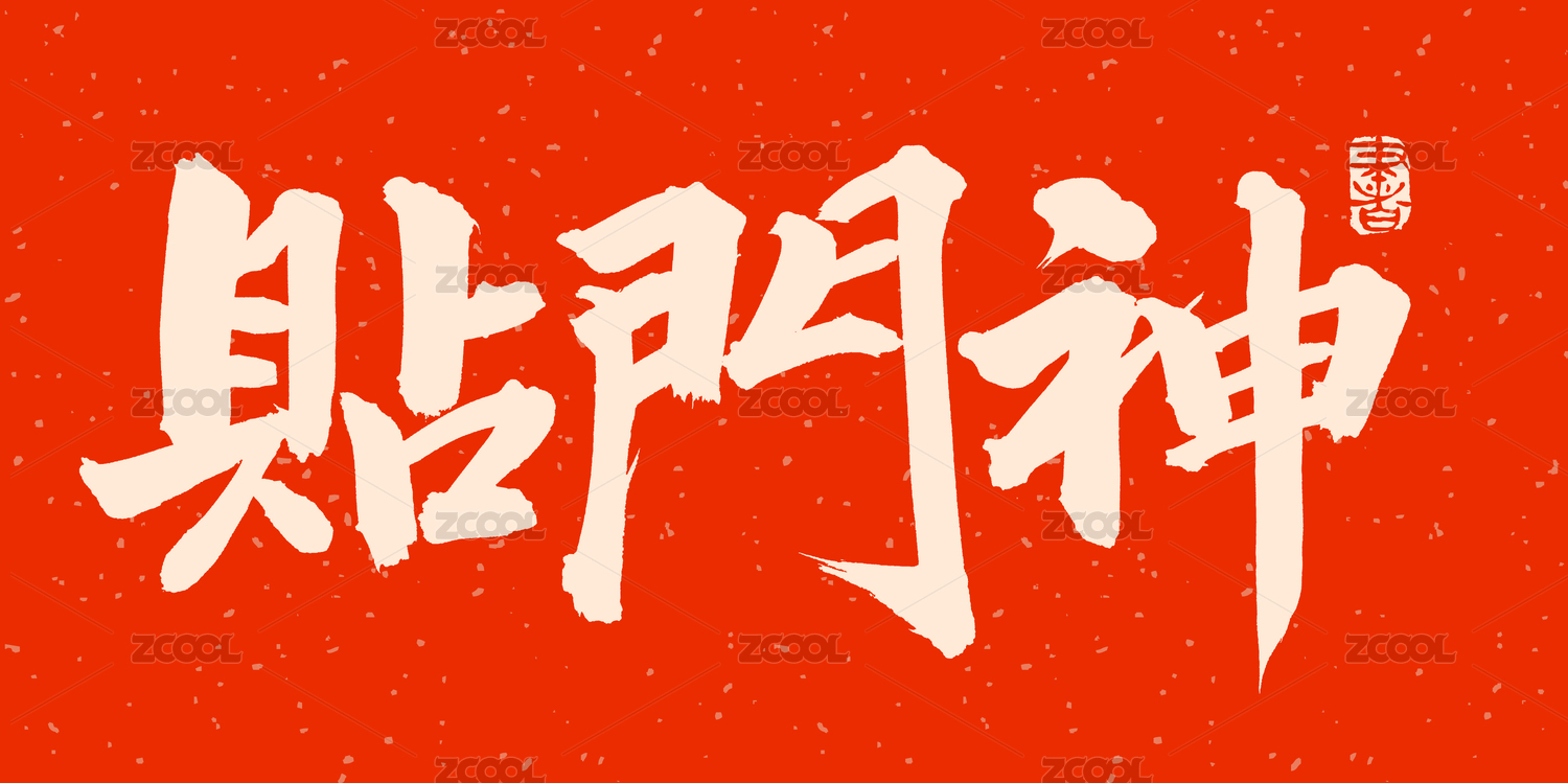 貼門(mén)神手寫(xiě)中國(guó)漢字書(shū)法藝術(shù)字體