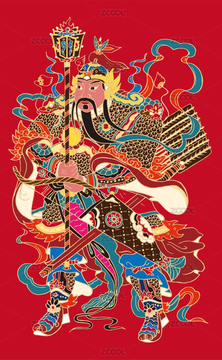 2022虎年臘新春貼門(mén)神繪畫(huà)插圖