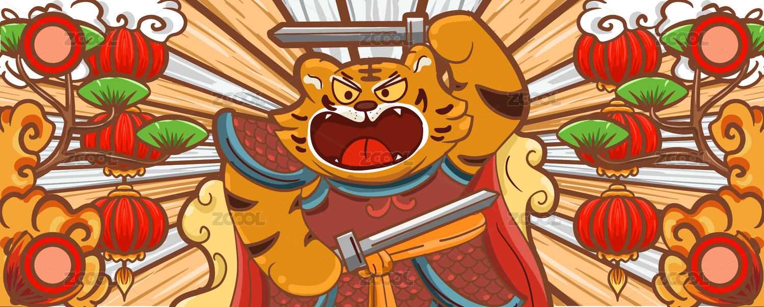 手繪卡通虎年門(mén)神插畫(huà)素材