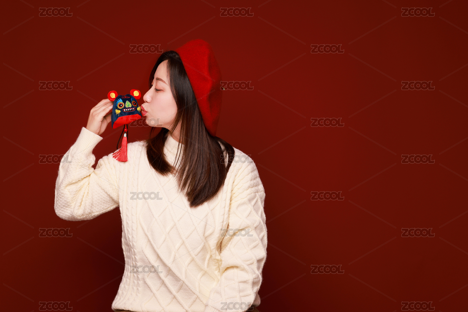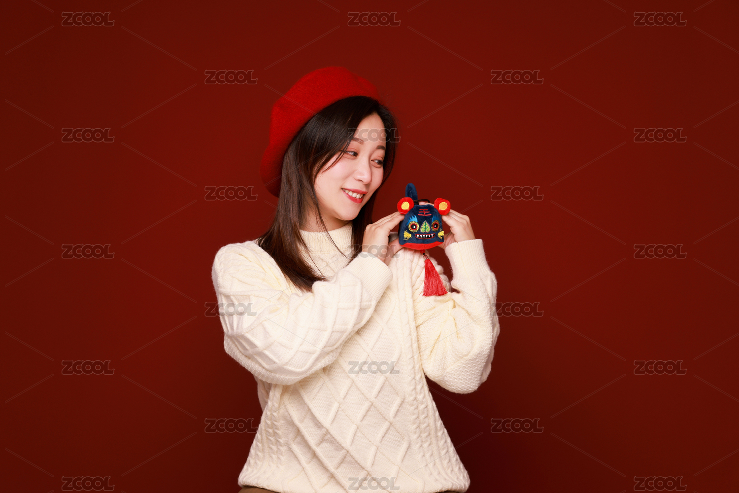 戴虎頭帽的可愛東方女性