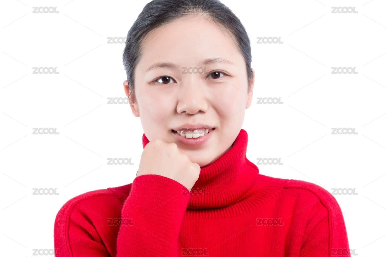 穿紅色毛衣的亞洲女孩