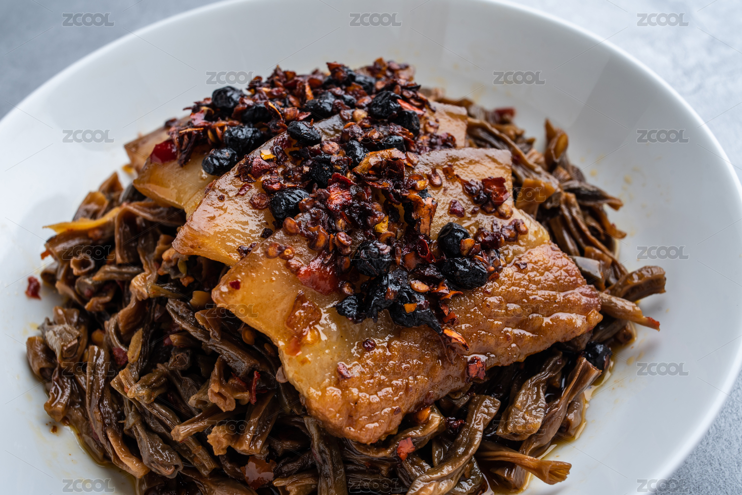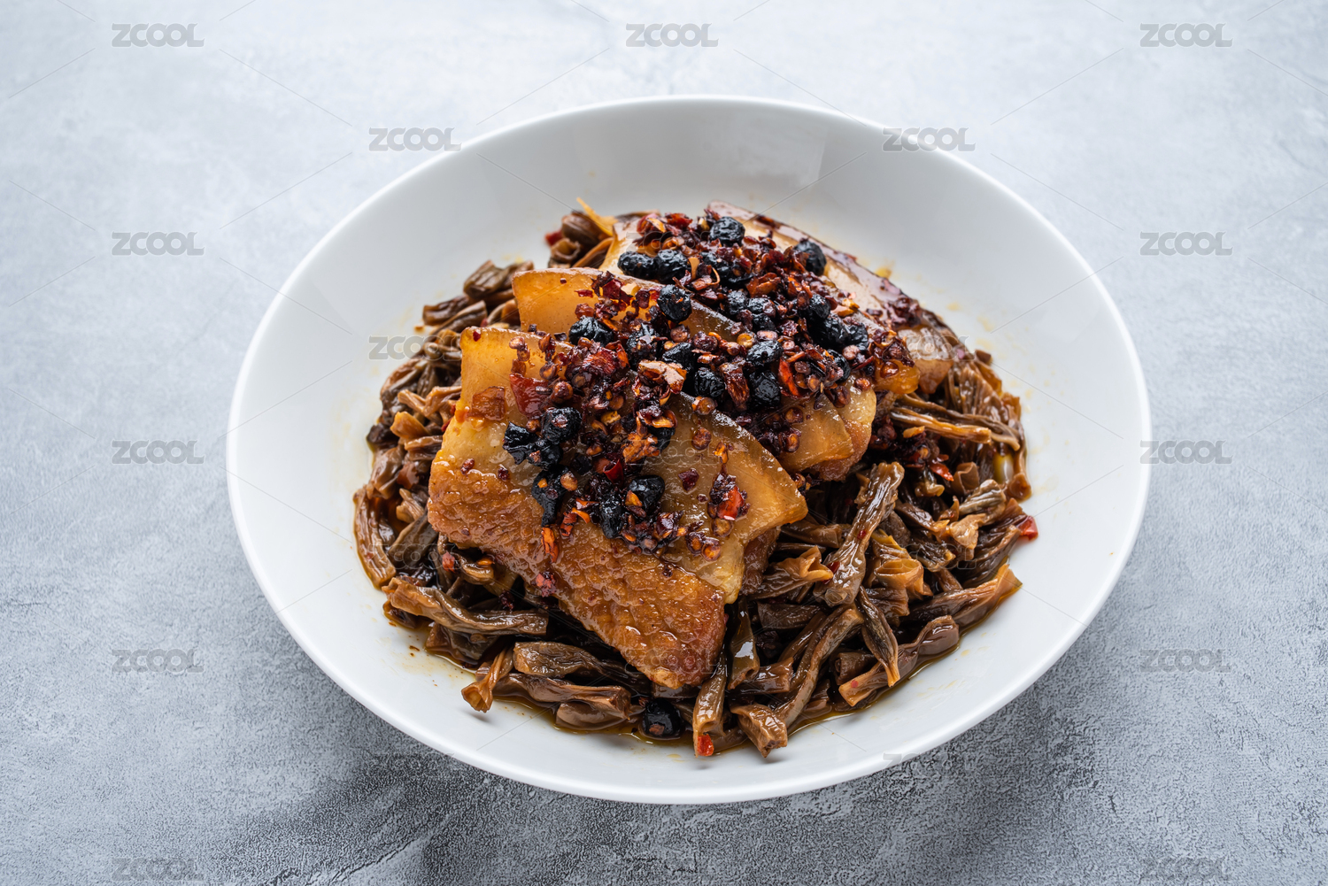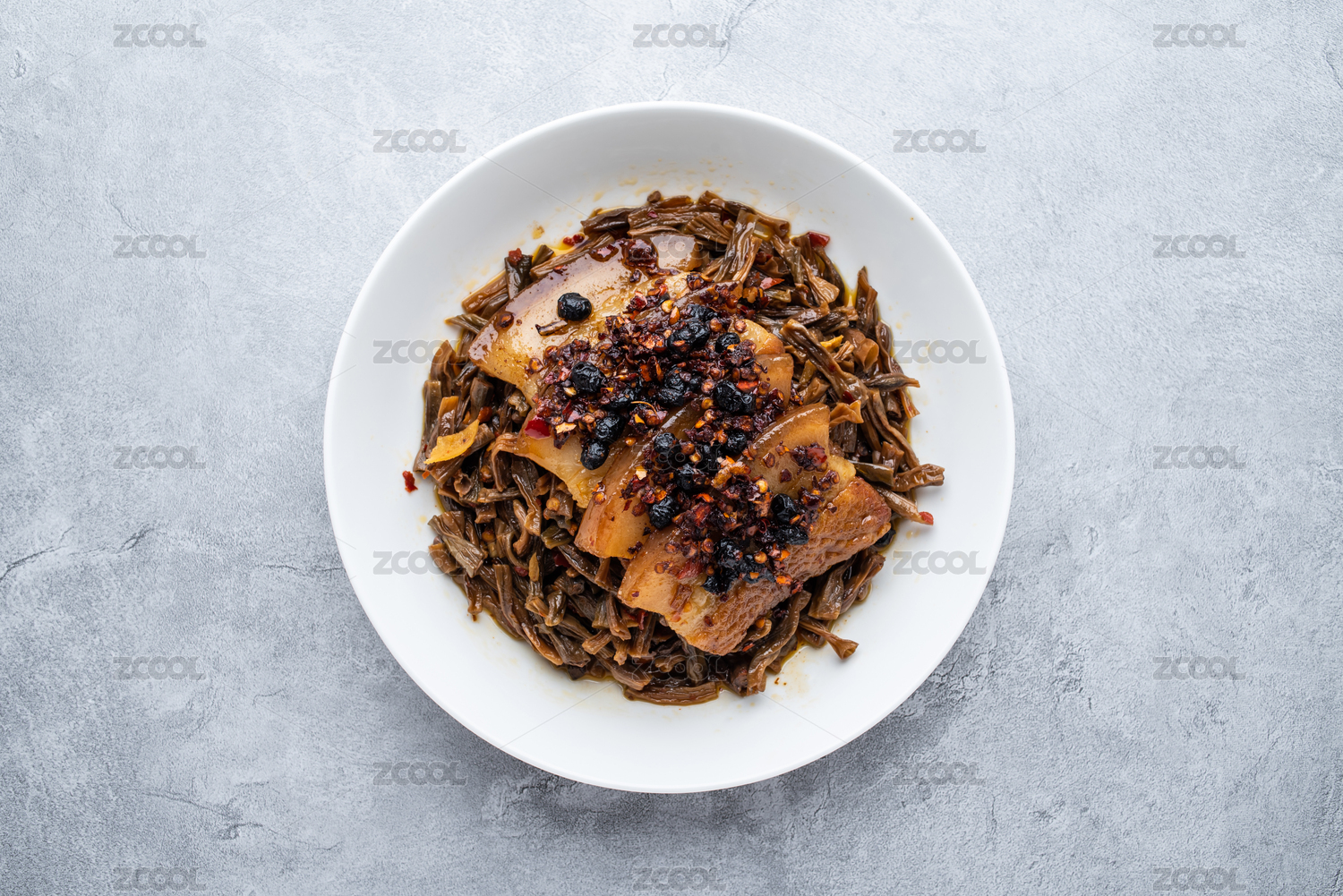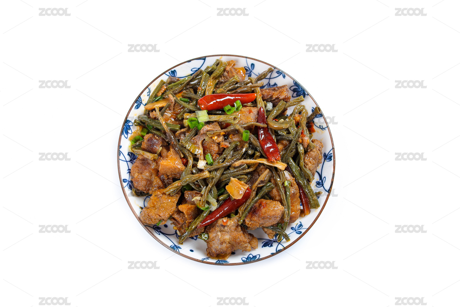 傳統(tǒng)中式背景上的一碗干豆角燒肉