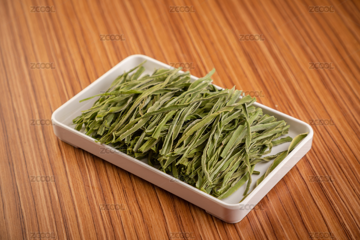 淺色木紋板上放著一盤干豆角絲