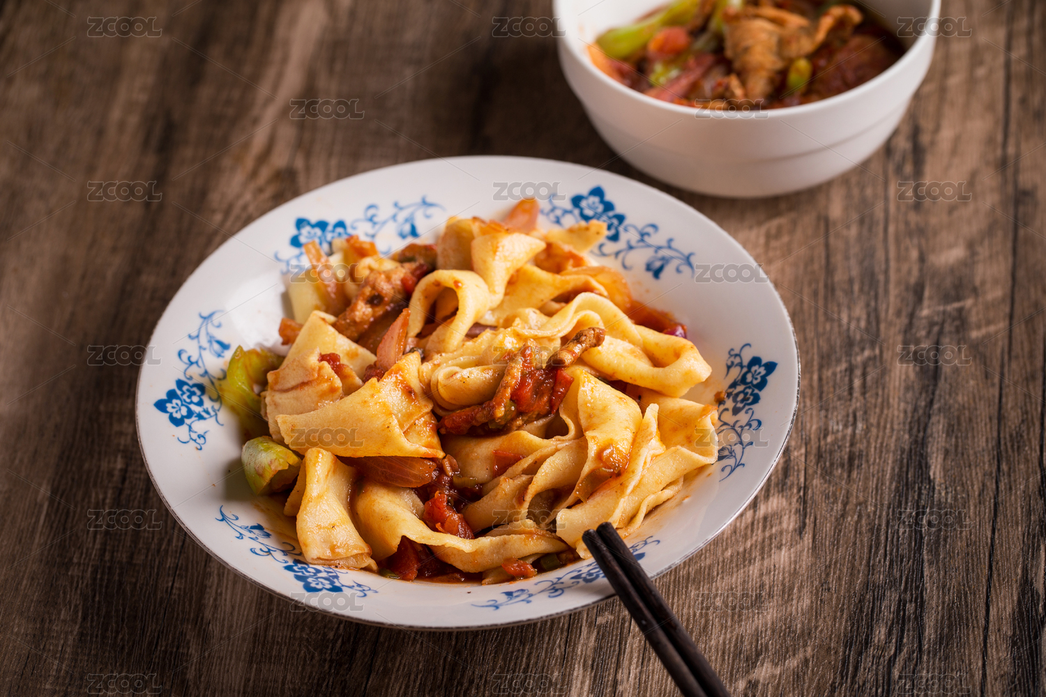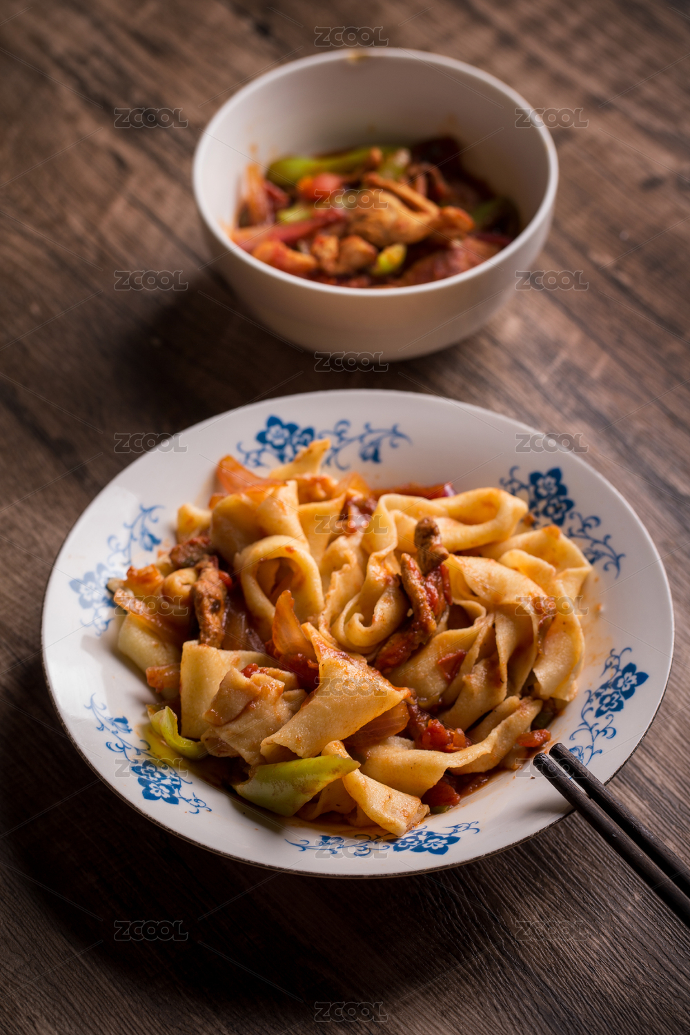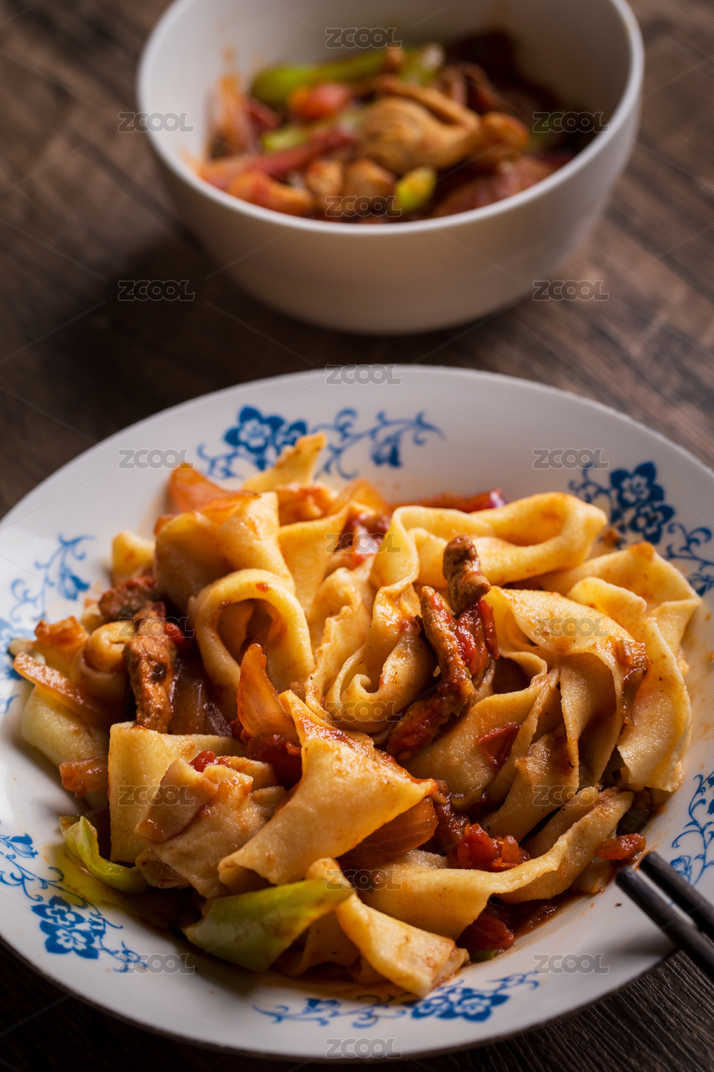 家常拌面條與番茄炒牛肉小碗菜