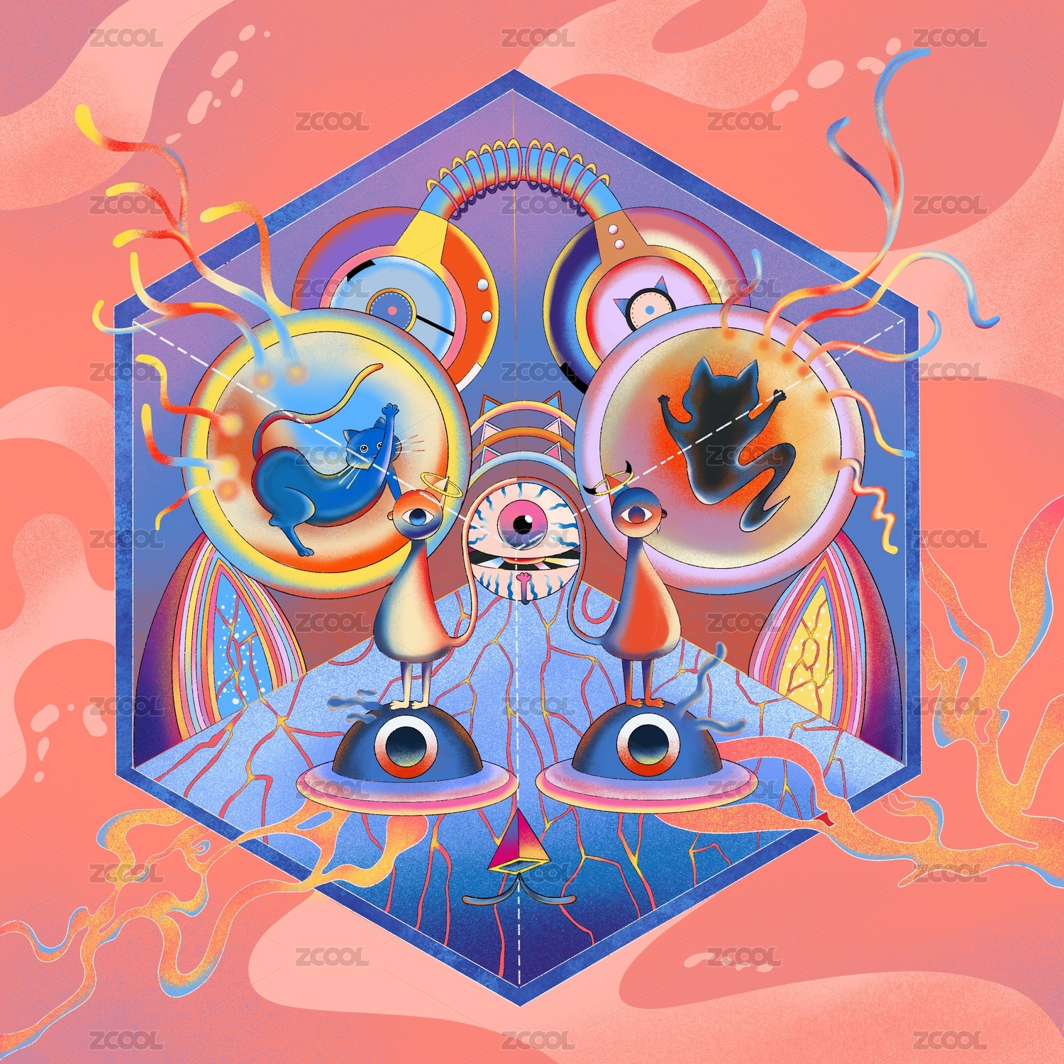 夢幻粉藍紫色幻想矛盾空間城市場景