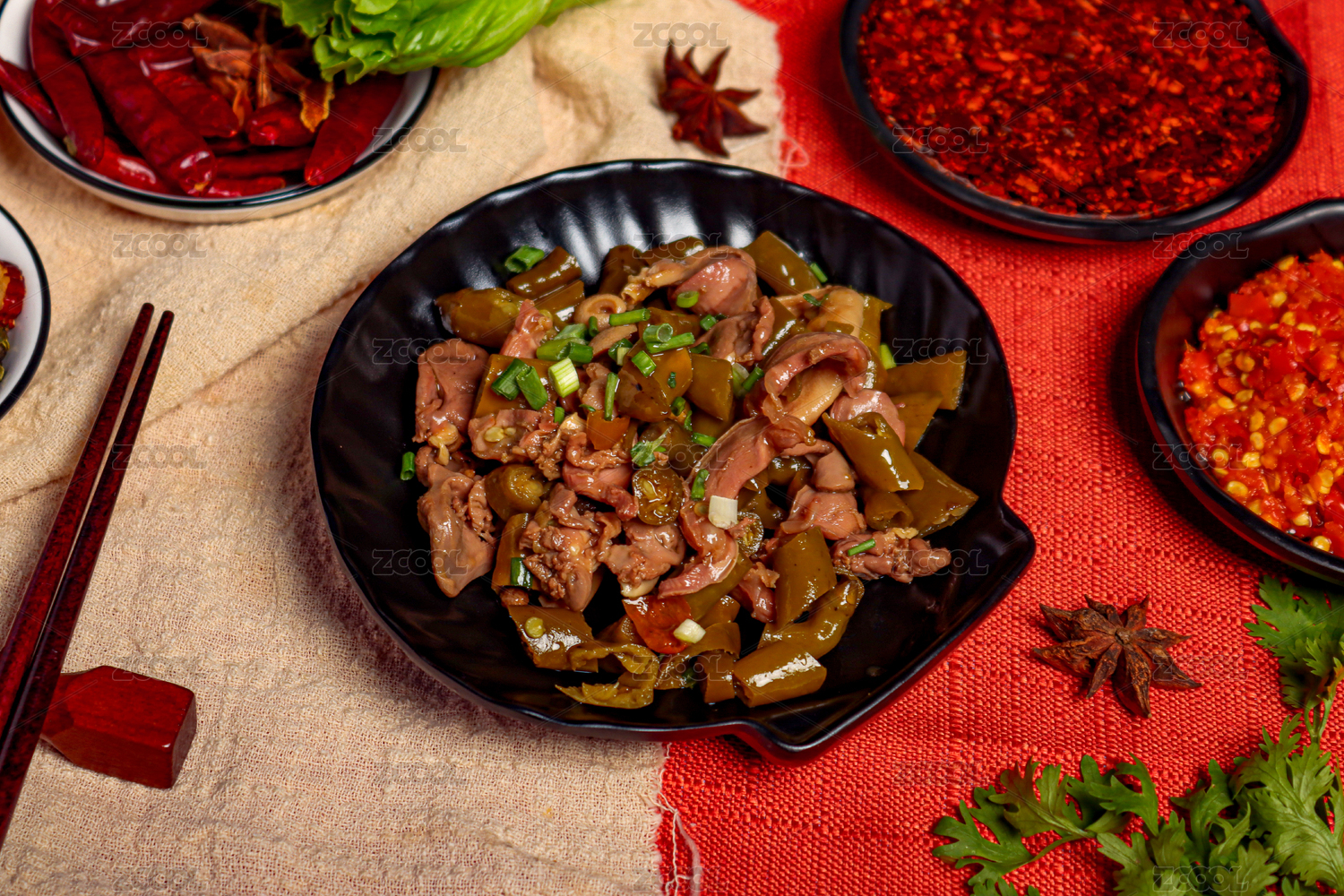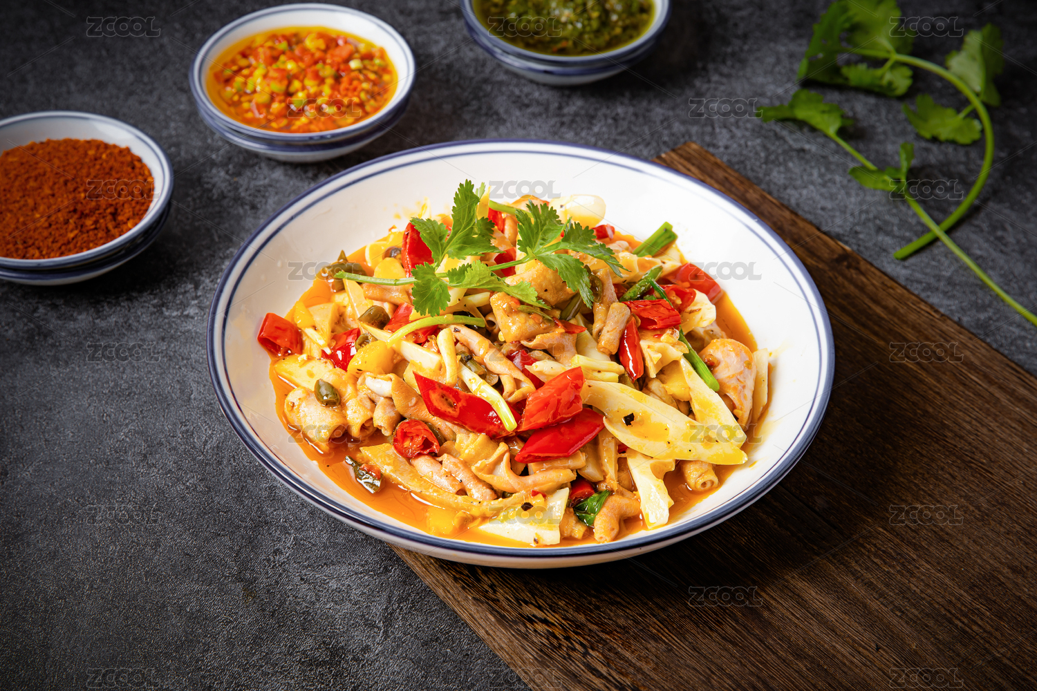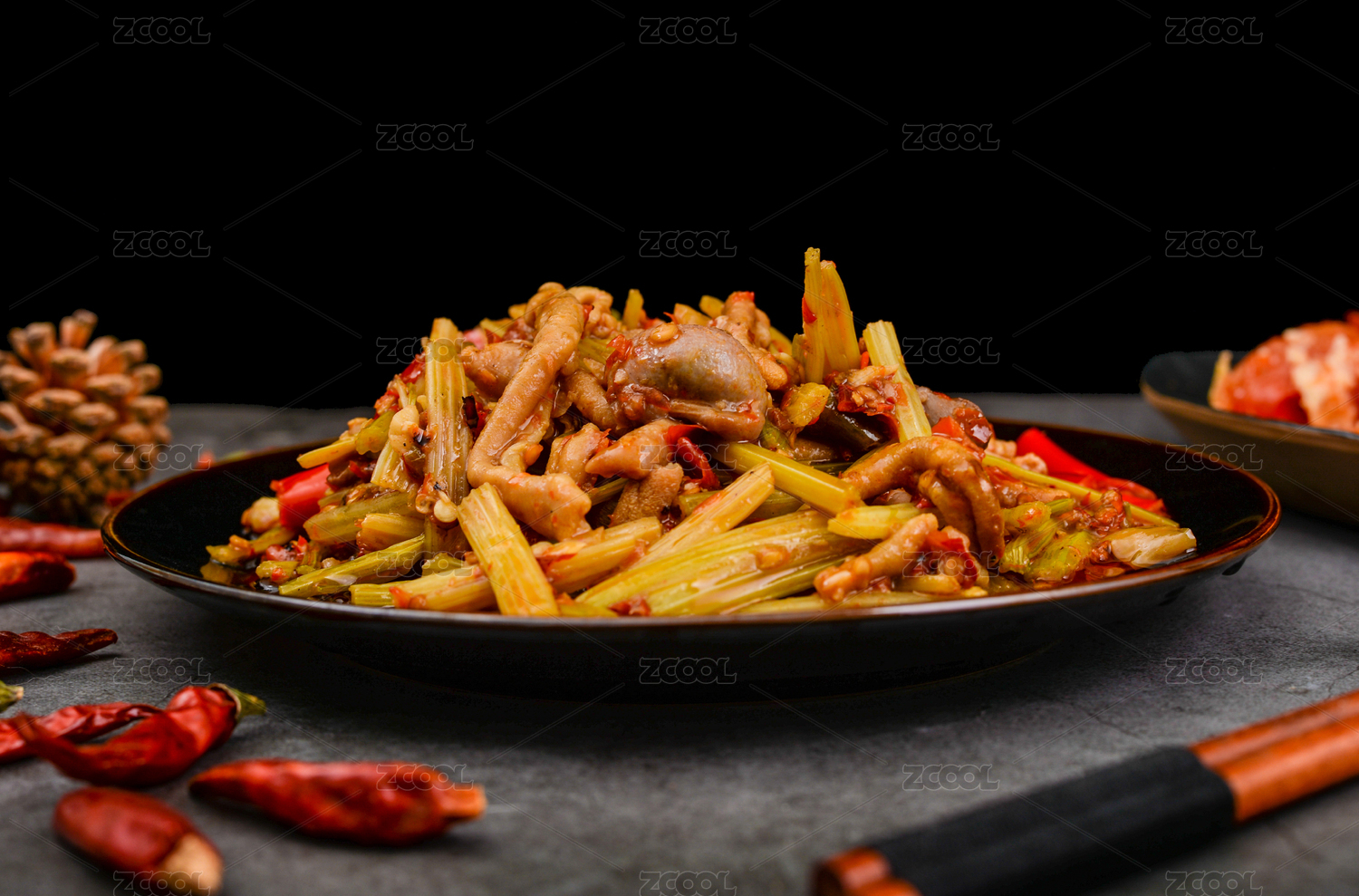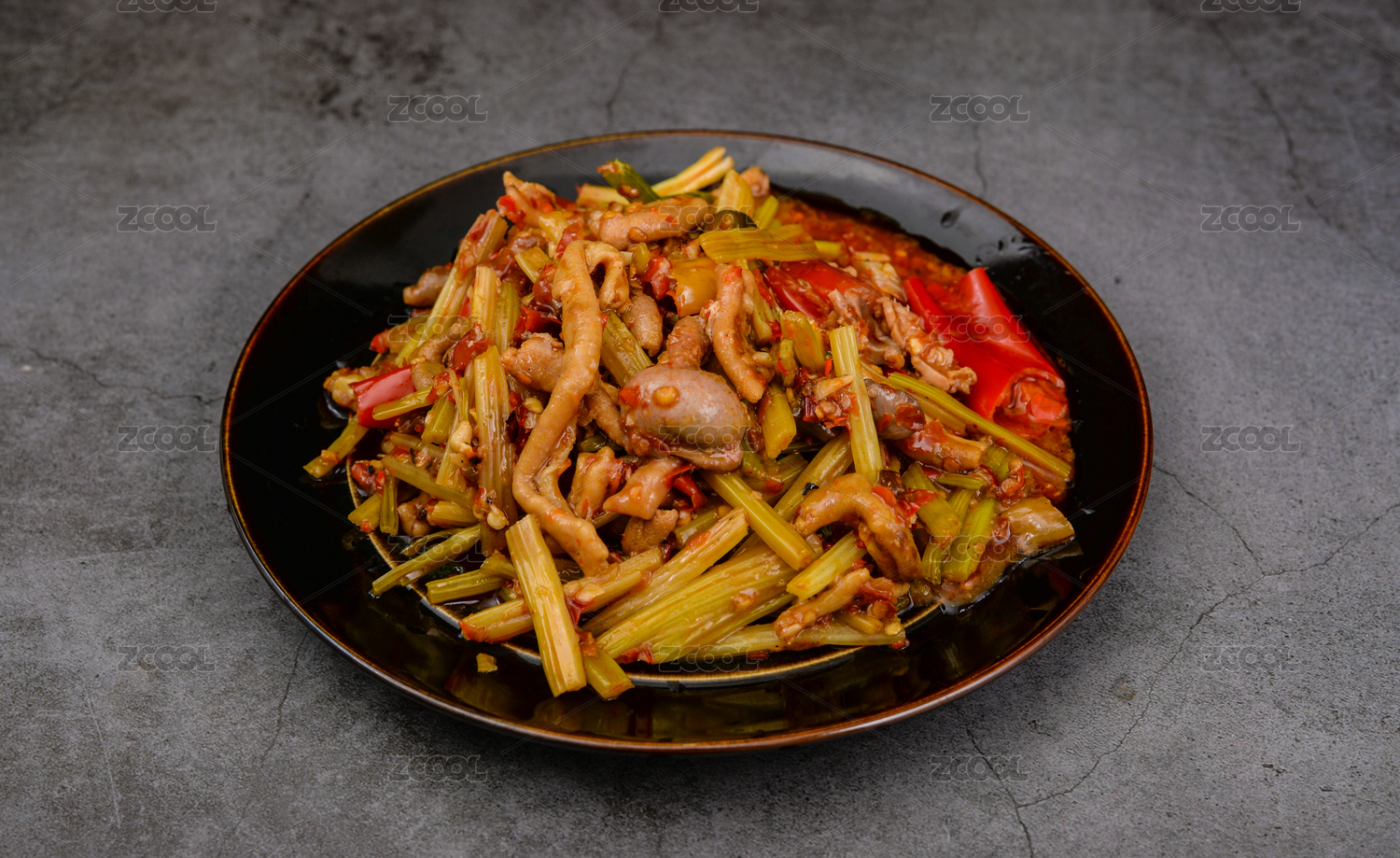 白盤里的泡椒雞雜