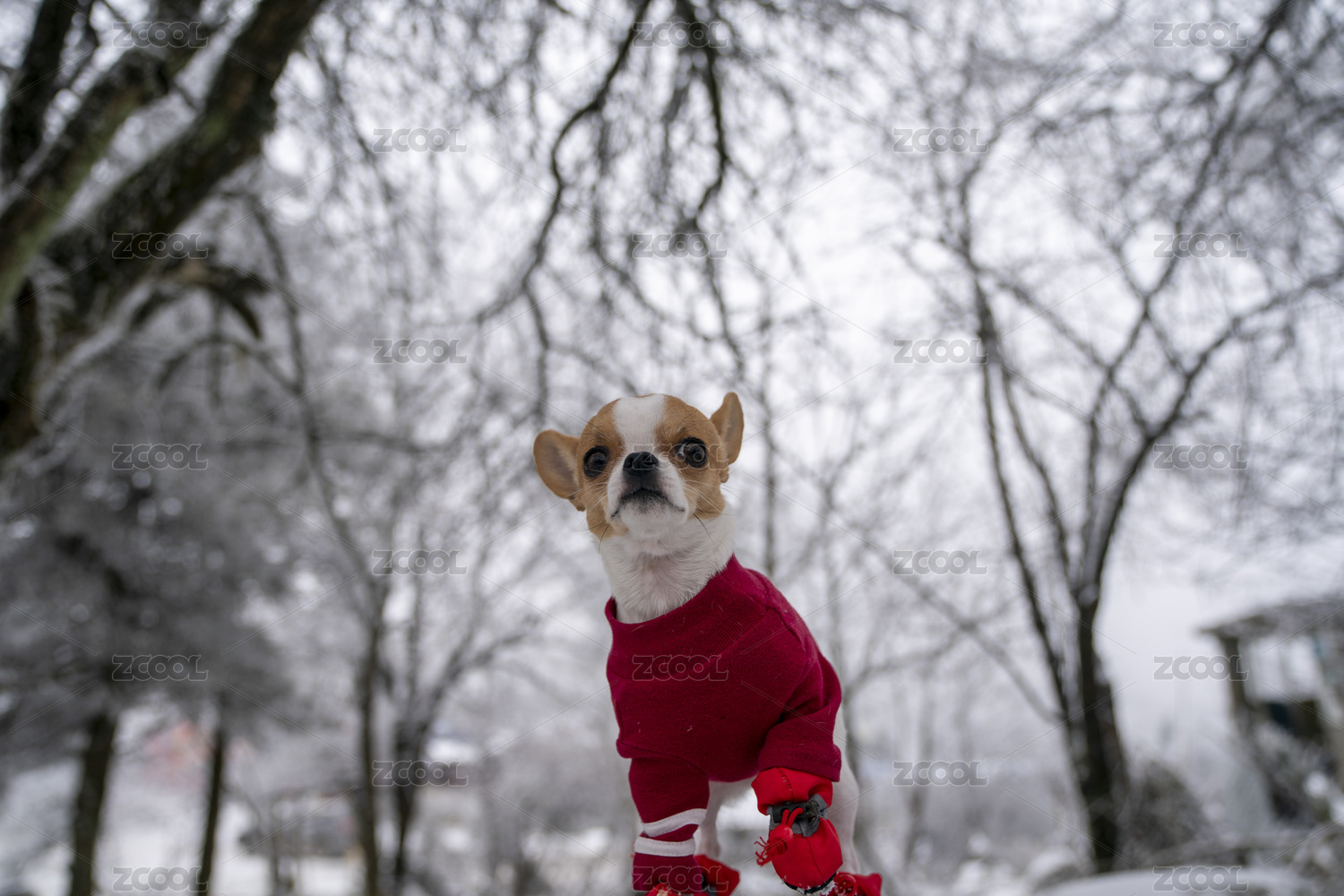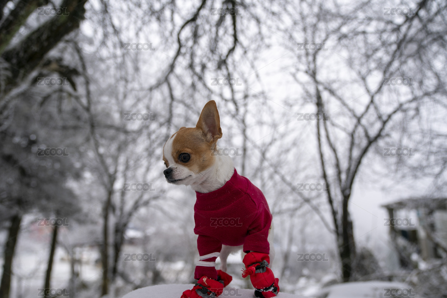 寵物狗吉娃娃在雪地里玩耍
