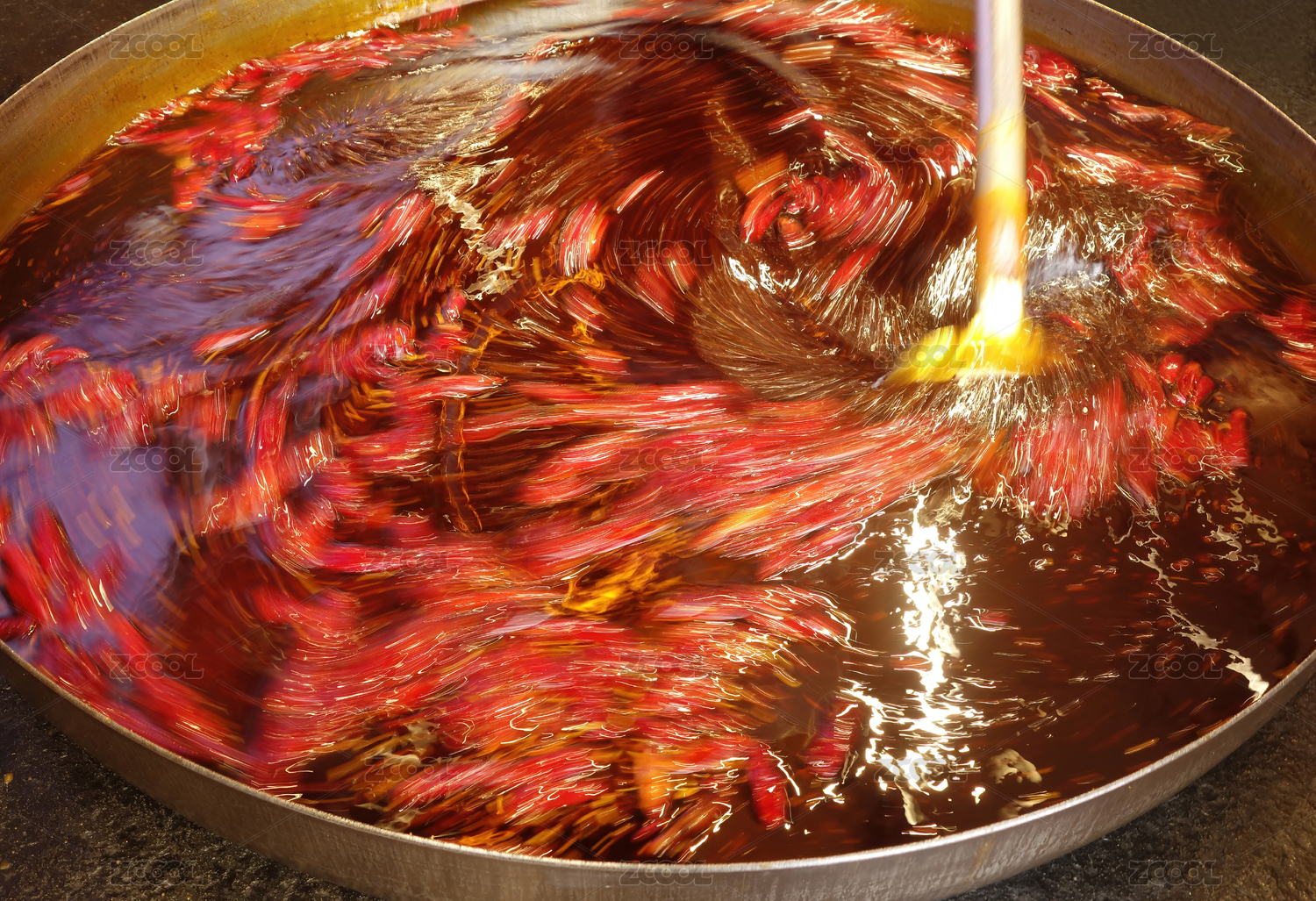 四川成都正在制作當(dāng)中的清湯火鍋調(diào)料