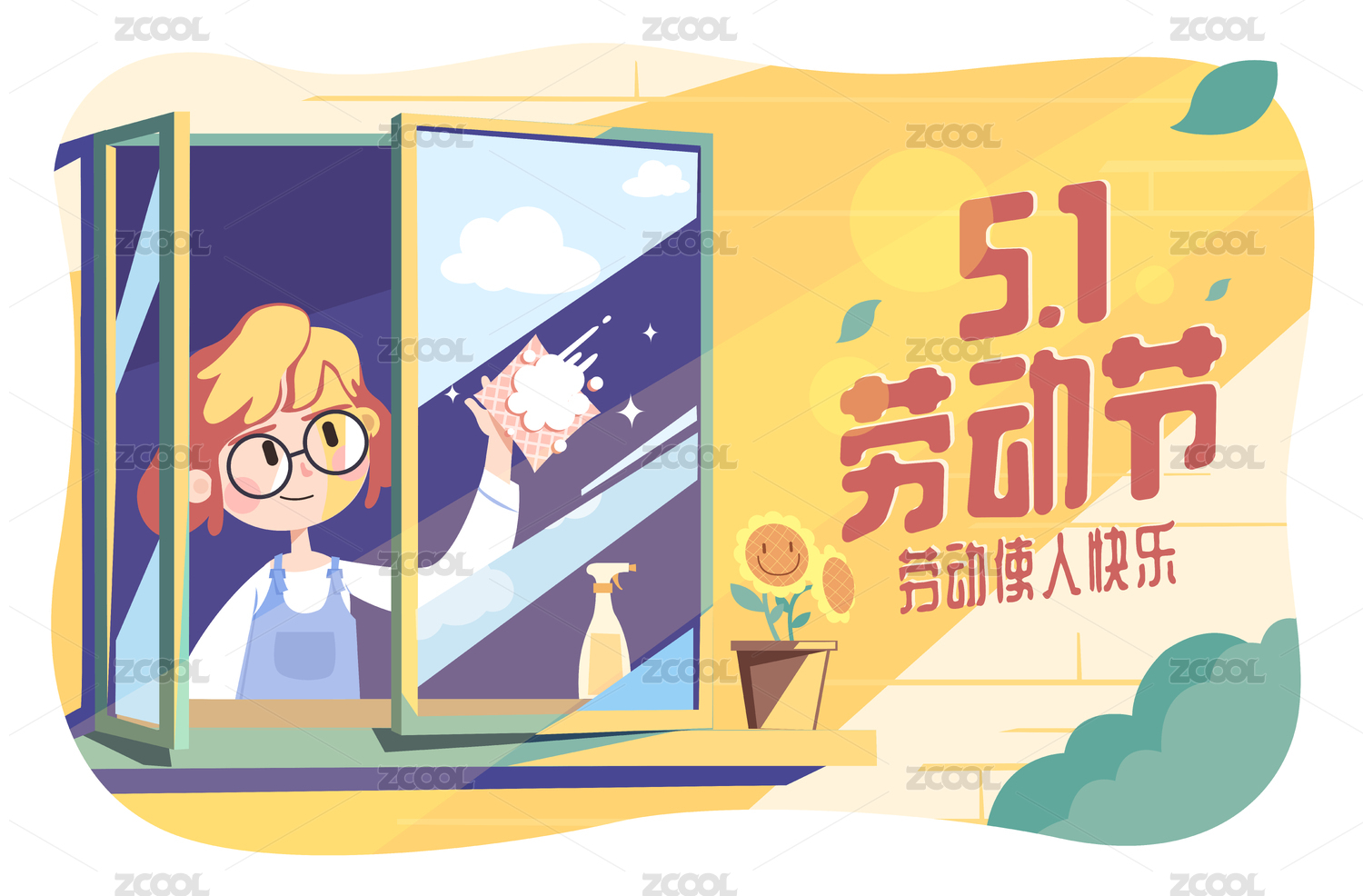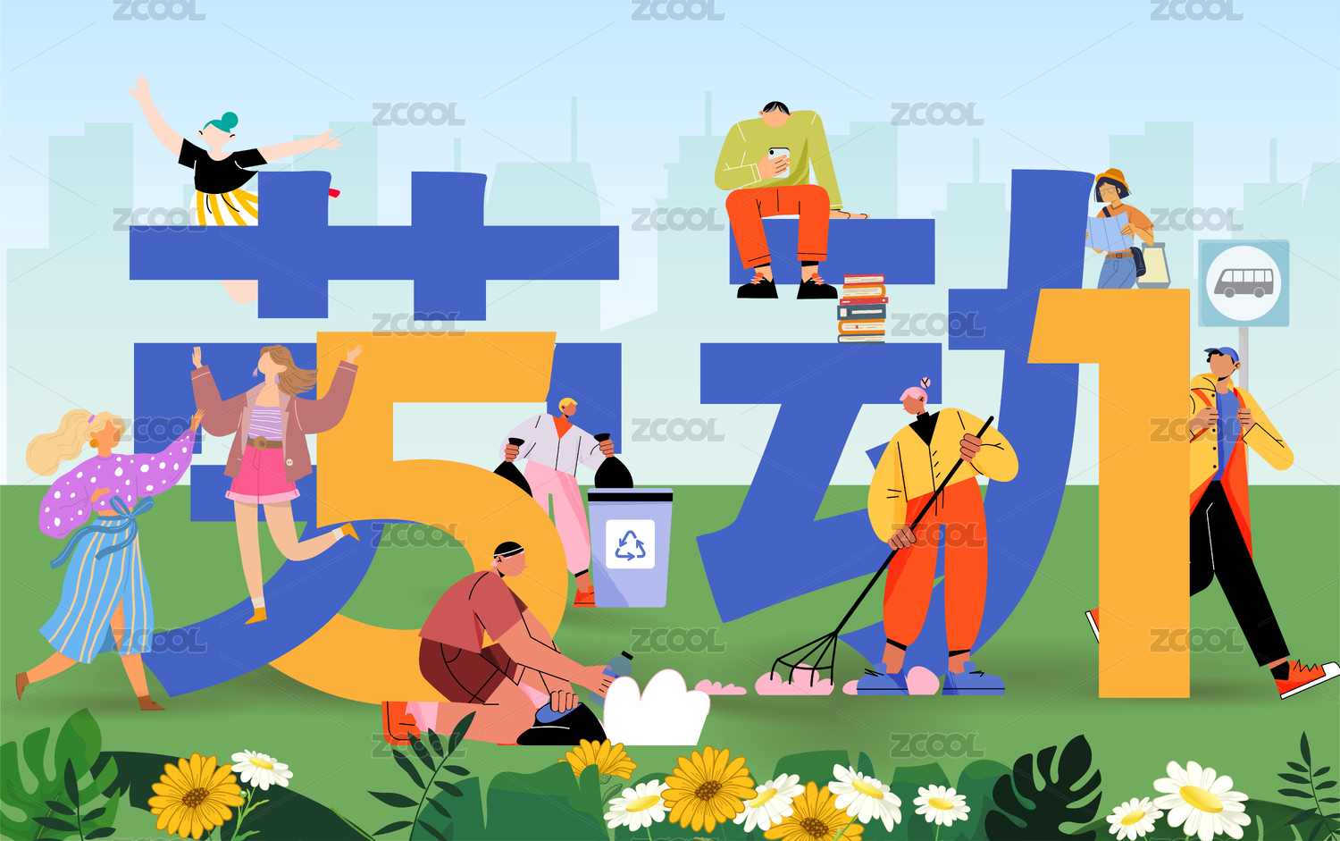 51勞動(dòng)節(jié)青年勞動(dòng)生活方式矢量插畫海報(bào)