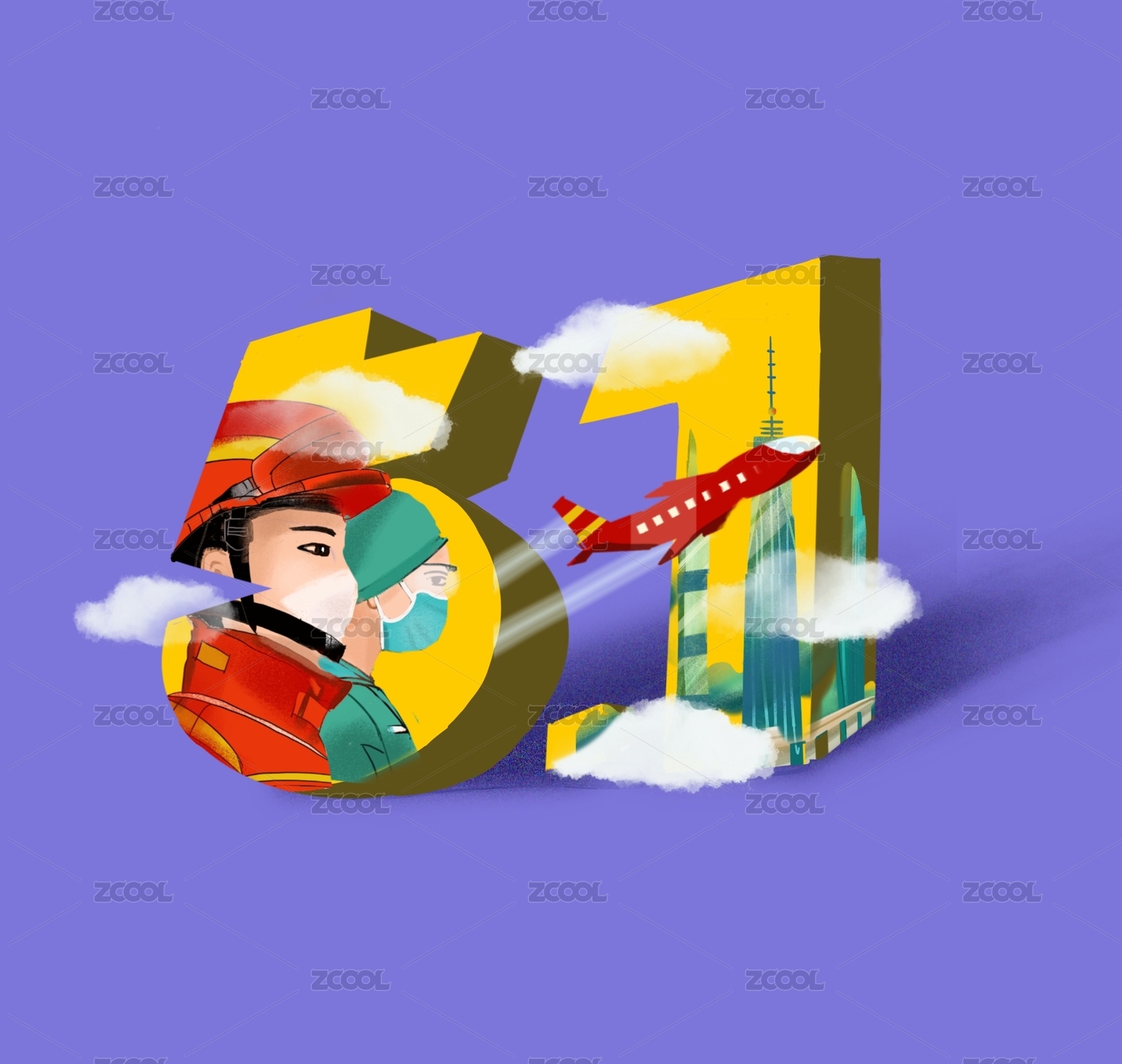 51勞動(dòng)節(jié)2.5d創(chuàng)意海報(bào)矢量插畫