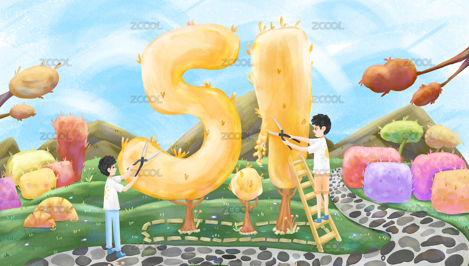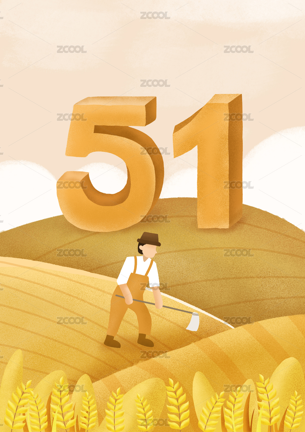 五一勞動(dòng)節(jié)中國(guó)風(fēng)國(guó)潮俯視數(shù)字51插畫海報(bào)