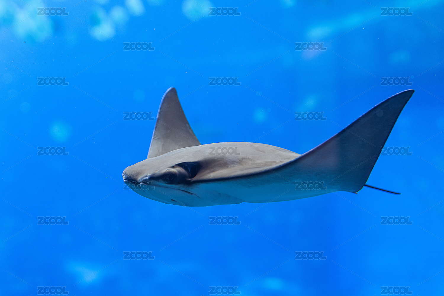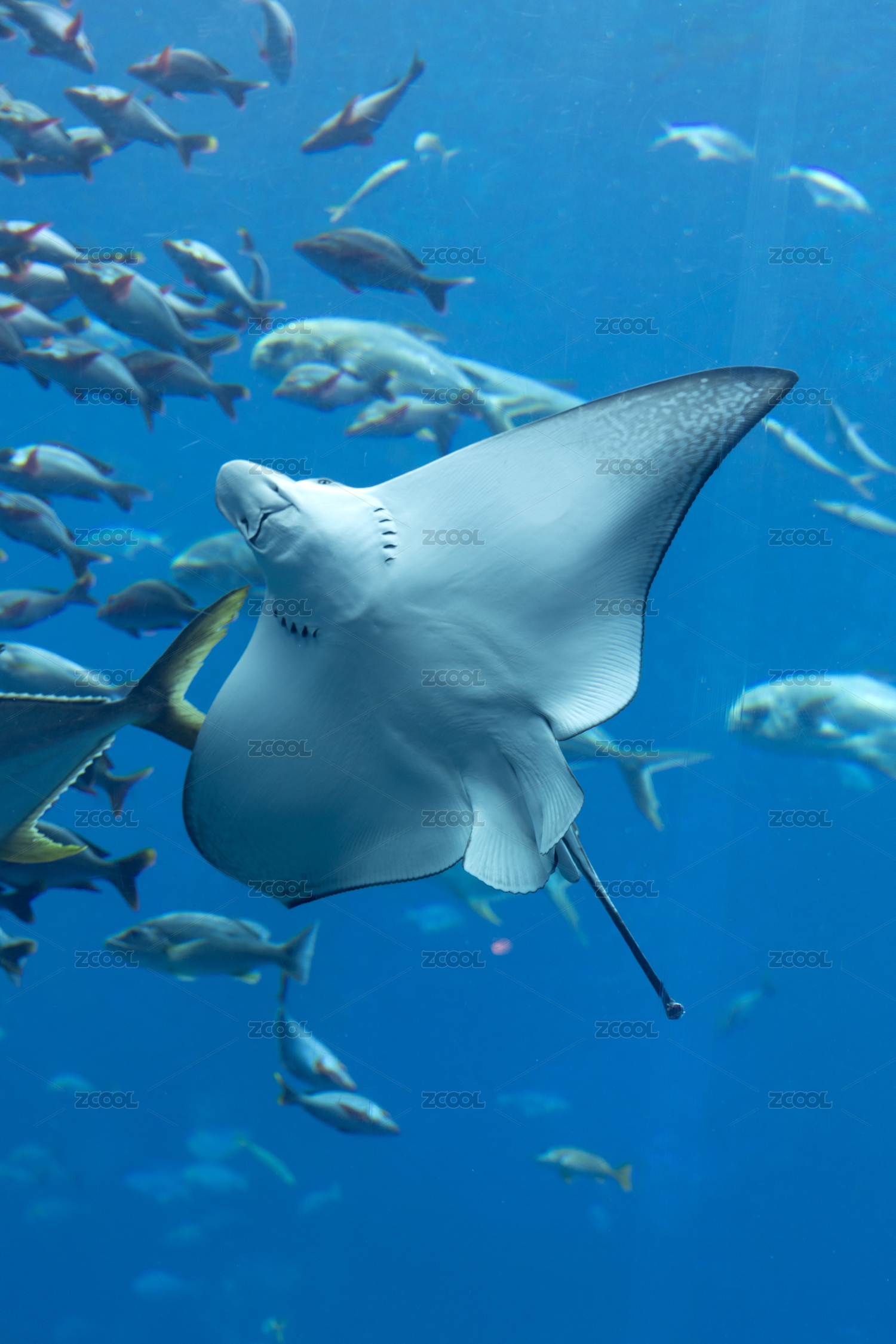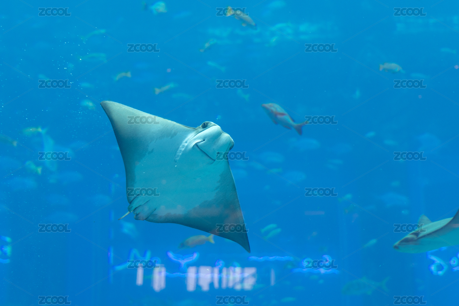 成都極地海洋公園水族箱中正在游泳的蝠鲼