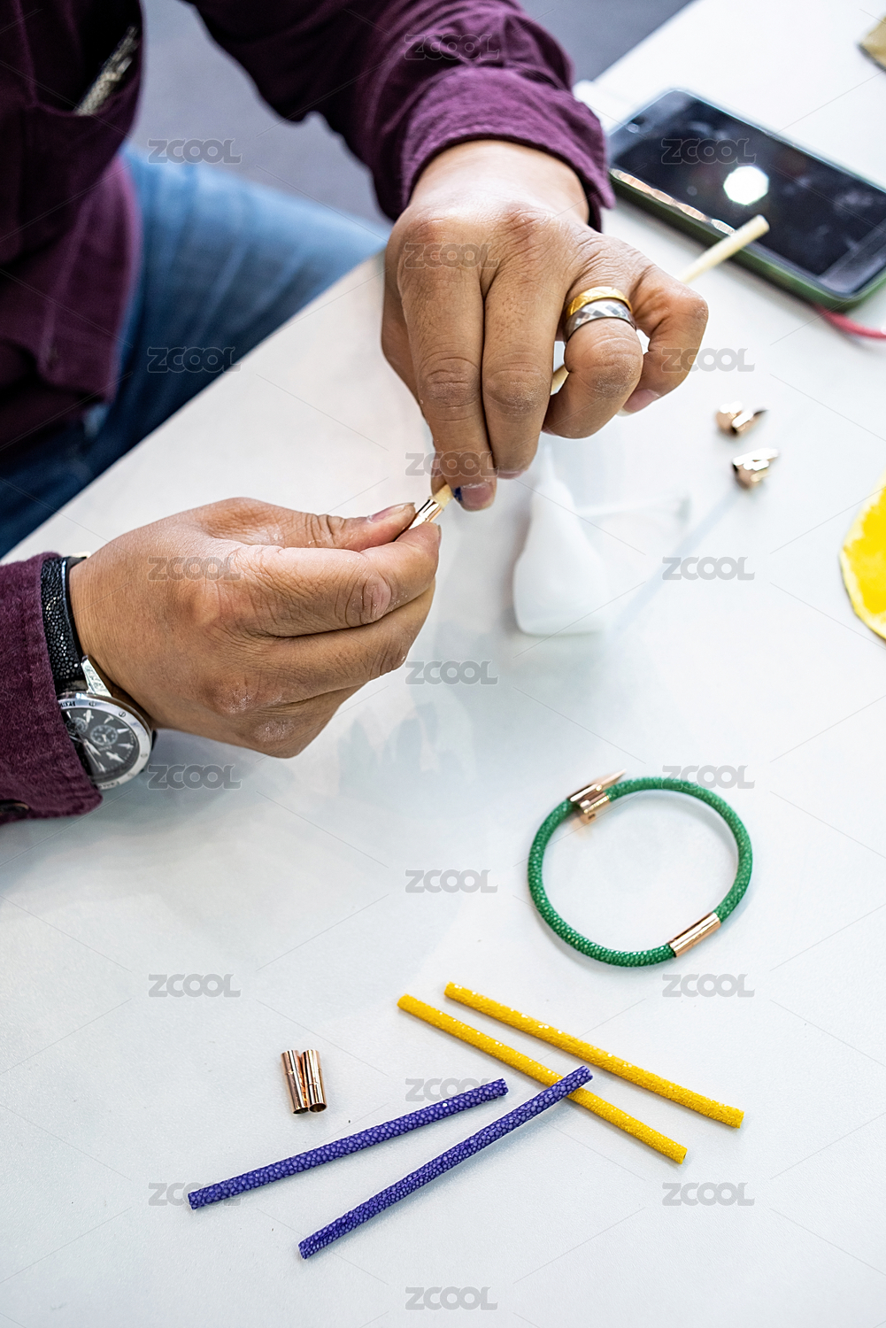 泰國魔鬼魚皮手工手鐲制作過程